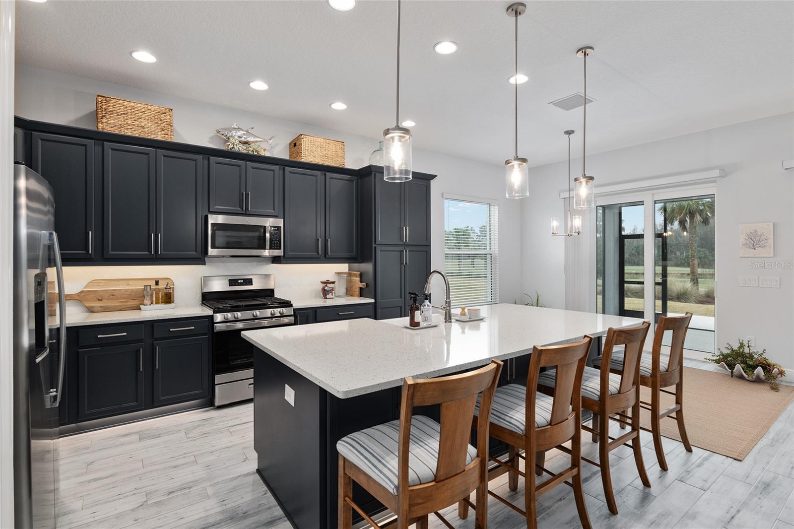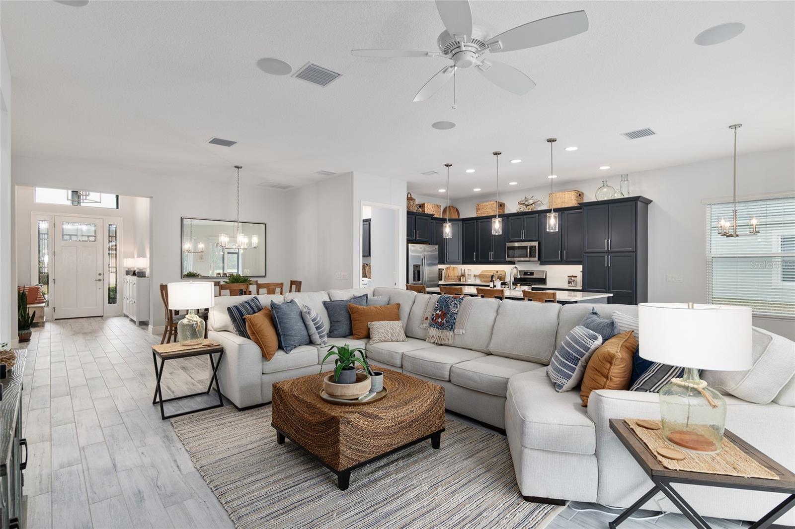 *** Proprietário motivado *** Designer imaculado, extraordinária View Golf, Lantana 10, 3/2 Traga sua coleta de tamanho grande para este carrinho de golfe duplo Garage expandiu-se com mini-split, hospeda uma visão imponente do campo de golfe Red Fox no 2º Tee. Com tetos de 10 pés, paredes de janela totalmente retráteis e são 48 'Lanai, esta casa está cheia de luz. Tilhas de tábuas de cerâmica por toda parte, aparelhos de linha superior e armários de bordo com telhas backsplash de espinha de peixe incluem iluminação de destaque nos níveis de balcão e chute dos pés. Vista para o quarto principal de lago e campo de preservação e golfe, grande caminhada no armário e banheiro apresenta vaidades separadas e um grande chuveiro romano. Paredes de destaque pintadas por toda parte, sistema de som de bose personalizado Ligo ao teto com o Receptor Marantz, 4 TVs de tela plana instaladas profissionalmente, piso de garagem epóxi personalizado, grande paisagismo profissional e mantido com árvores maduras é de tamanho adequado para adicionar uma piscina/spa. Puxe escadas no sótão na garagem, o gerador incluído na chave na mão. Mais de US $ 60.000 em móveis proibidos são negociáveis. Fenney Grill, Recreation Center & Resort Pool estão por perto. Trilhas para caminhada, parques para cães, caminhadas pela natureza, quadras esportivas estão todas nas proximidades.