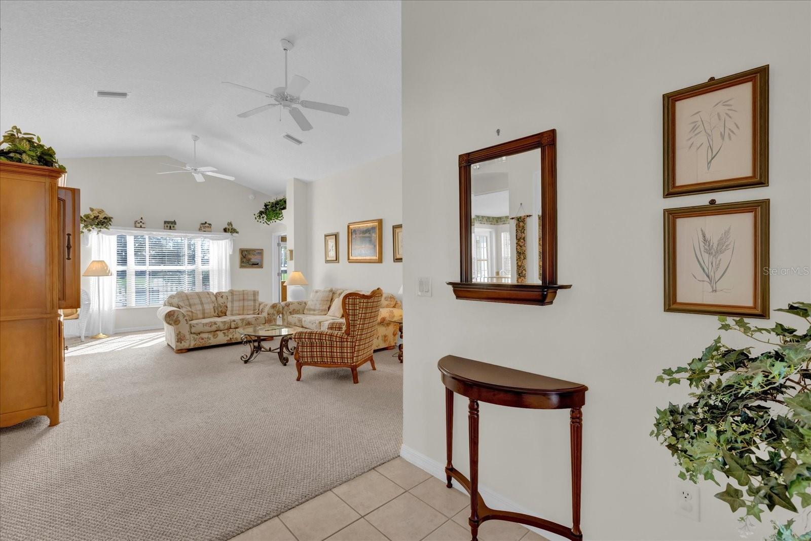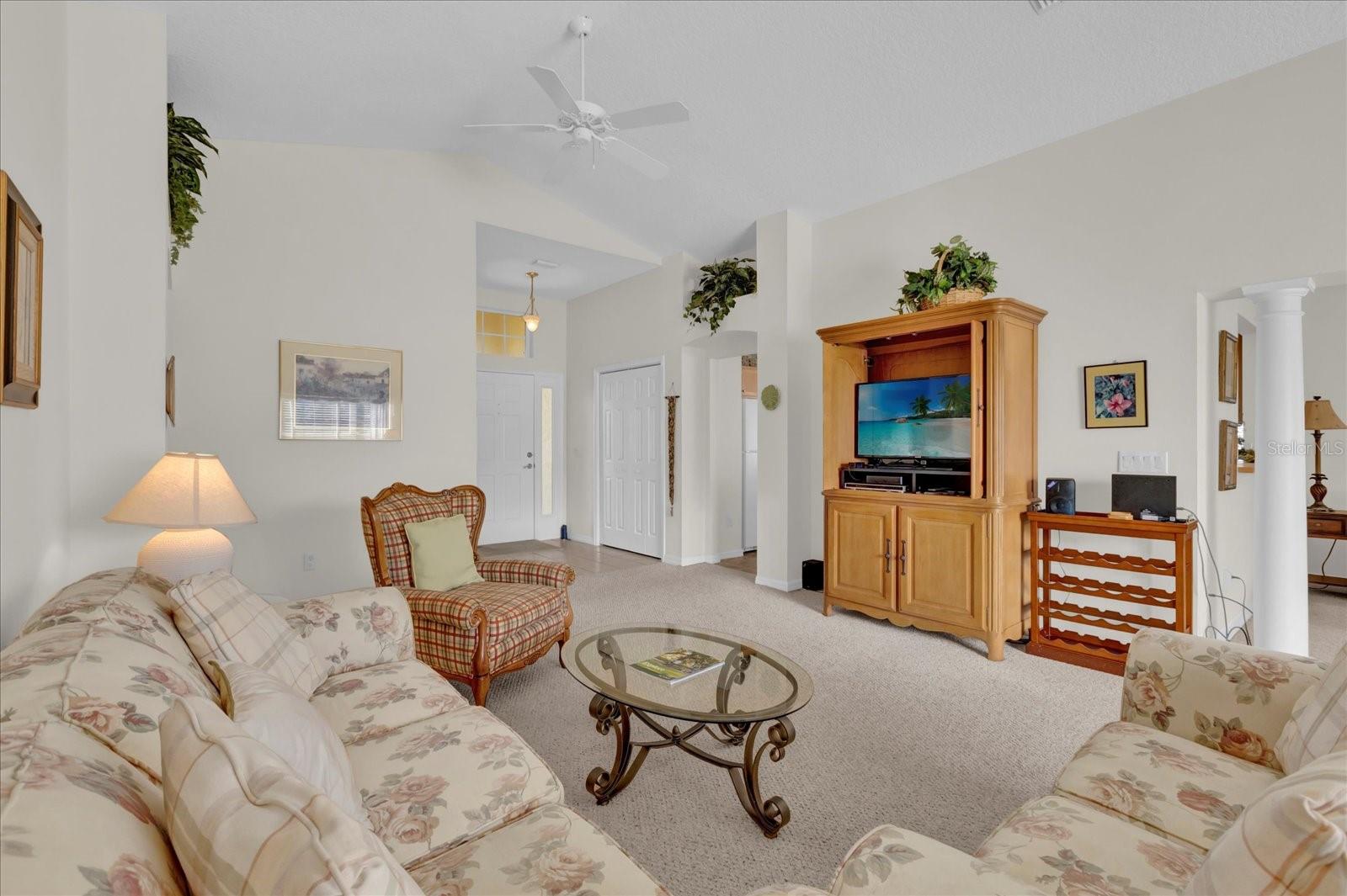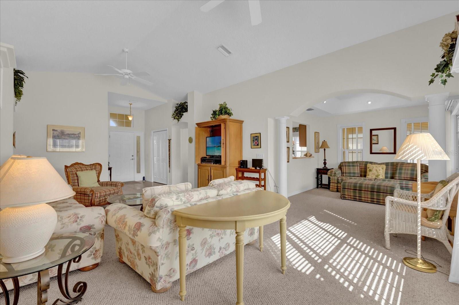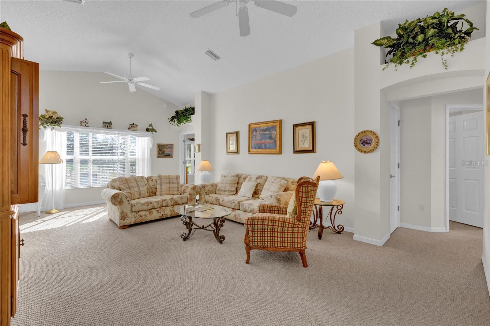 TÍTULO PAGO! CHAVE NA MÃO COM CARRINHO DE GOLFE A GÁS YAMAHA! Situado em um ambiente tranquilo em The Villages, este bloco de 3 quartos, 2 banheiros e casa de estuque oferece uma vista extraordinária do campo de golfe com vista para o deslumbrante Campo de Golfe Executivo El Diablo. Imagine desfrutar de seu café da manhã ou coquetel à noite na varanda fechada de azulejos ou no pátio externo, apreciando a beleza serena dos jogadores de golfe que passam e os verdes exuberantes. Convenientemente localizado a apenas uma curta viagem de carrinho de golfe da Praça da Cidade de Spanish Springs, você terá acesso a entretenimento, compras e restaurantes vibrantes, tudo a poucos minutos da sua porta. Esta casa é pronta para uso, incluindo um carrinho de golfe a gás Yamaha, então tudo que você precisa trazer é sua escova de dentes para começar a desfrutar do estilo de vida definitivo em Villages. A localização serena nos fundos do bairro garante tráfego mínimo, oferecendo paz e privacidade. O exterior apresenta um encantador paisagismo Curb-It e uma tela de garagem elétrica, enquanto o novo telhado (2023) e o sistema HVAC (2012) com um gabinete de filtragem de ar Comfort EZ Flex proporcionam tranquilidade e eficiência energética. No interior, a casa apresenta tetos volumosos com detalhes em bandejas na sala de jantar e no quarto principal, criando um ambiente aberto e arejado. A espaçosa cozinha com ilha central é perfeita para entusiastas da culinária ou refeições casuais. Ladrilhos cerâmicos nas áreas úmidas e carpetes berberes duráveis em todo o resto da casa garantem conforto e baixa manutenção. A garagem para 2 carros oferece amplo espaço para arrumação e comodidade. Não perca esta incrível oportunidade de possuir um pedaço do paraíso em The Villages com vistas deslumbrantes do campo de golfe, atualizações modernas e proximidade de todas as comodidades que Spanish Springs tem a oferecer!