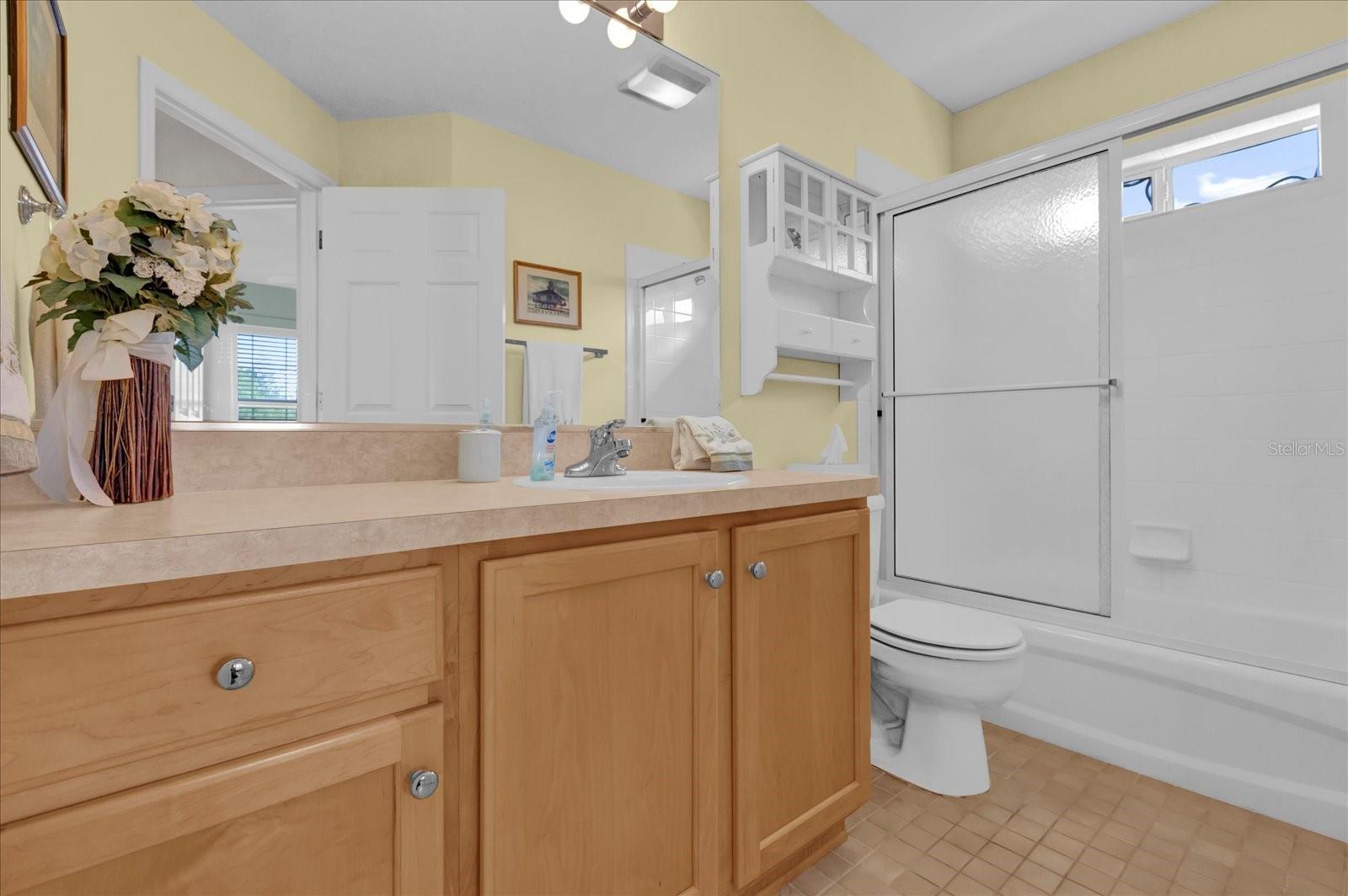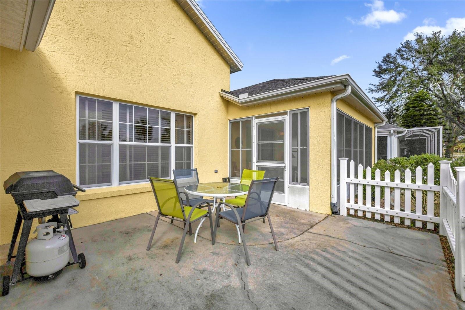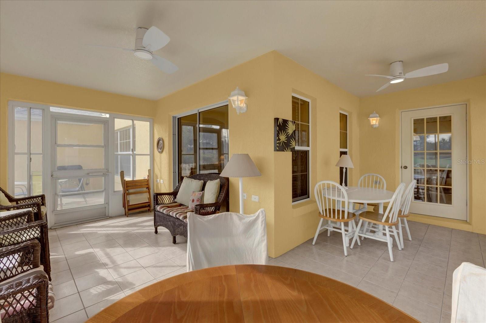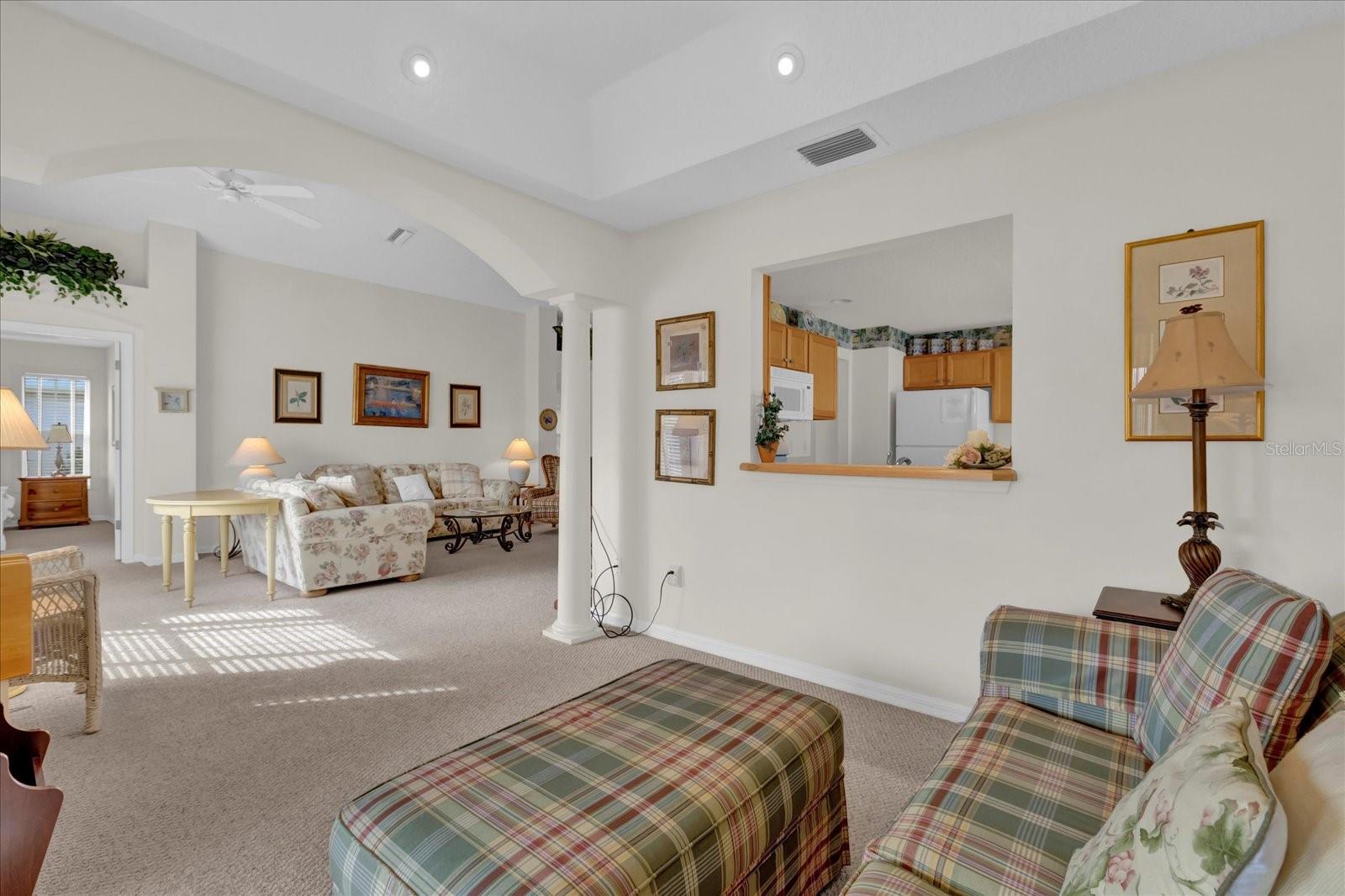 TÍTULO PAGO! CHAVE NA MÃO COM CARRINHO DE GOLFE A GÁS YAMAHA! Situado em um ambiente tranquilo em The Villages, este bloco de 3 quartos, 2 banheiros e casa de estuque oferece uma vista extraordinária do campo de golfe com vista para o deslumbrante Campo de Golfe Executivo El Diablo. Imagine desfrutar de seu café da manhã ou coquetel à noite na varanda fechada de azulejos ou no pátio externo, apreciando a beleza serena dos jogadores de golfe que passam e os verdes exuberantes. Convenientemente localizado a apenas uma curta viagem de carrinho de golfe da Praça da Cidade de Spanish Springs, você terá acesso a entretenimento, compras e restaurantes vibrantes, tudo a poucos minutos da sua porta. Esta casa é pronta para uso, incluindo um carrinho de golfe a gás Yamaha, então tudo que você precisa trazer é sua escova de dentes para começar a desfrutar do estilo de vida definitivo em Villages. A localização serena nos fundos do bairro garante tráfego mínimo, oferecendo paz e privacidade. O exterior apresenta um encantador paisagismo Curb-It e uma tela de garagem elétrica, enquanto o novo telhado (2023) e o sistema HVAC (2012) com um gabinete de filtragem de ar Comfort EZ Flex proporcionam tranquilidade e eficiência energética. No interior, a casa apresenta tetos volumosos com detalhes em bandejas na sala de jantar e no quarto principal, criando um ambiente aberto e arejado. A espaçosa cozinha com ilha central é perfeita para entusiastas da culinária ou refeições casuais. Ladrilhos cerâmicos nas áreas úmidas e carpetes berberes duráveis em todo o resto da casa garantem conforto e baixa manutenção. A garagem para 2 carros oferece amplo espaço para arrumação e comodidade. Não perca esta incrível oportunidade de possuir um pedaço do paraíso em The Villages com vistas deslumbrantes do campo de golfe, atualizações modernas e proximidade de todas as comodidades que Spanish Springs tem a oferecer!