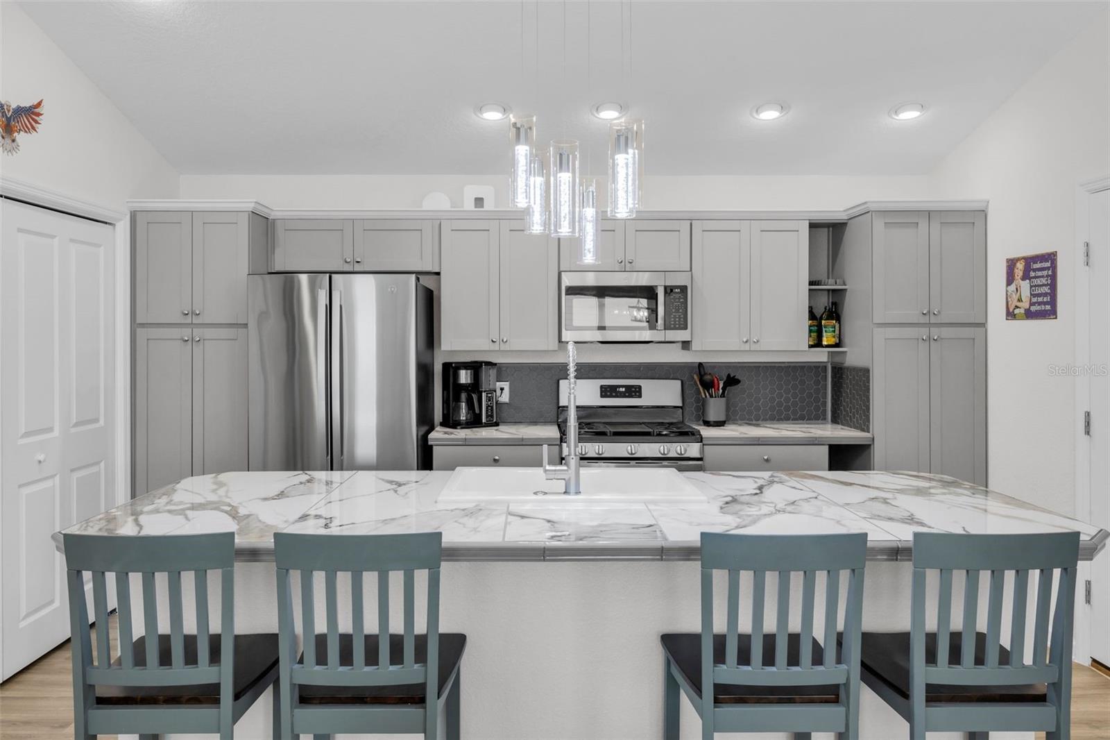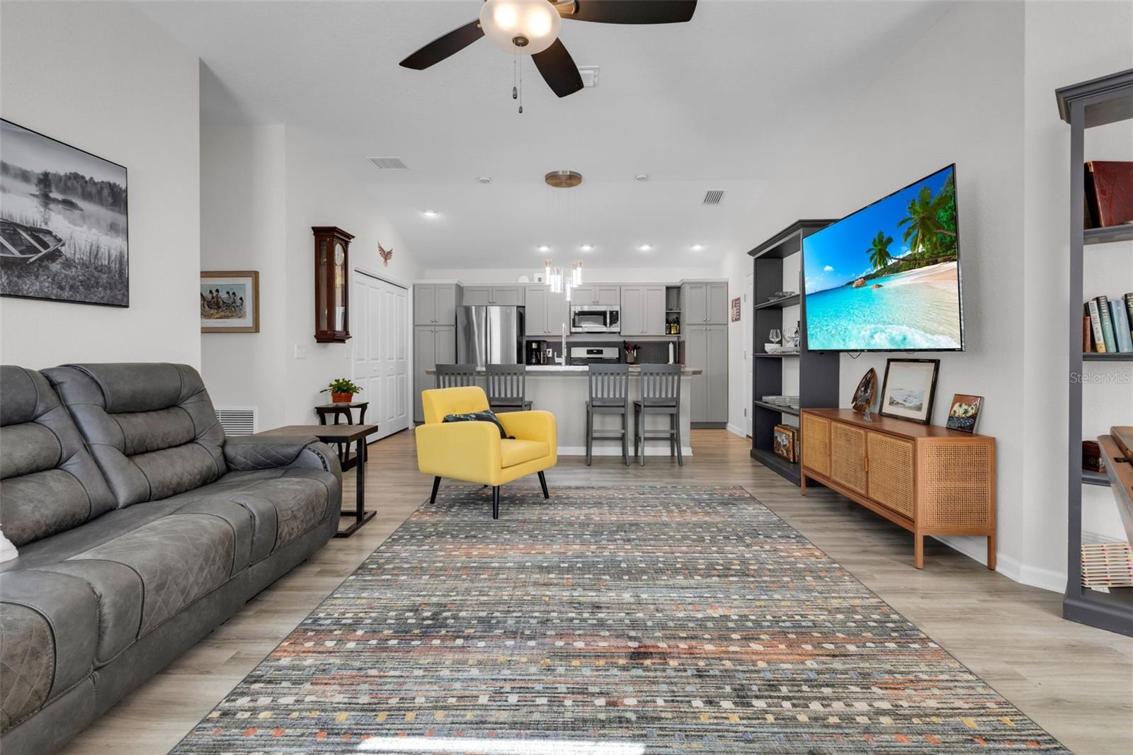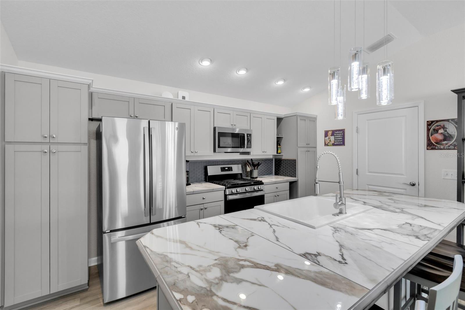 Venha ver este belo modelo Topaz com enorme garagem de 2 carros (estará vazio no fechamento) - Ótimo espaço de trabalho se for inclinado ou com muito espaço para todos os seus veículos! A porta da garagem é iluminada. Situado em Lake Denham com o bairro mais amigável de todos os tempos! Perto de Sawgrass, Eastport e Leesburg. Esta casa tem um piso plano aberto com pisos de vinil de luxo por toda parte e carpete nos quartos. O coração da casa é a cozinha, com nova pia de porcelana de porcelana de dupla (isso não recebe manchas de água como aço inoxidável), novo backsplash, luminária pendente deslumbrante, armário de despensa extra, novos balcões de porcelana e na ilha de café da manhã. Tão conveniente fazer refeições informais no bar de café da manhã! Todos os aparelhos GE de aço inoxidável com forno limpo a vapor, geladeira dupla com fabricante de gelo, lava -louças e microondas. Lavadora e secadora em seu próprio armário com prateleiras - muito conveniente! Todas as TVs tiveram pontos de energia elétricos subiram para trás da TV, para que não sejam os fios ou cabos. O banheiro principal foi totalmente remodelado com chuveiro e portas de vidro e duas pias e também tem uma enorme caminhada no armário! A casa inteira foi pintada recentemente em cores neutras. O restante das aldeias de 10 anos de garantia estrutural, garantia de HVAC (trabalho de 5 anos, peças de 10 anos) e garantia de telhado de teto transmitem a venda. Esta é sua chance de possuir uma pequena fatia do paraíso! Você é uma curta viagem de carro do mercado em Sawgrass Grove, onde pode desfrutar de música noturna e uma variedade de opções de refeições ou levar uma rodada de golfe no campo de golfe do Southern Oaks Championship. Explore mais diversão no estilo de vida na recreação vizinha, incluindo um parque para cães e muito mais. Há uma grande variedade de golfe disponível, incluindo o Jubileu Putting Course e o Mickylee Pitch & Putt. Você apreciará os muitos caminhos que se enrolam nessa vila enquanto aprecia as vistas espetaculares da natureza ao longo do caminho, à medida que você gosta de todo esse local apresenta!
