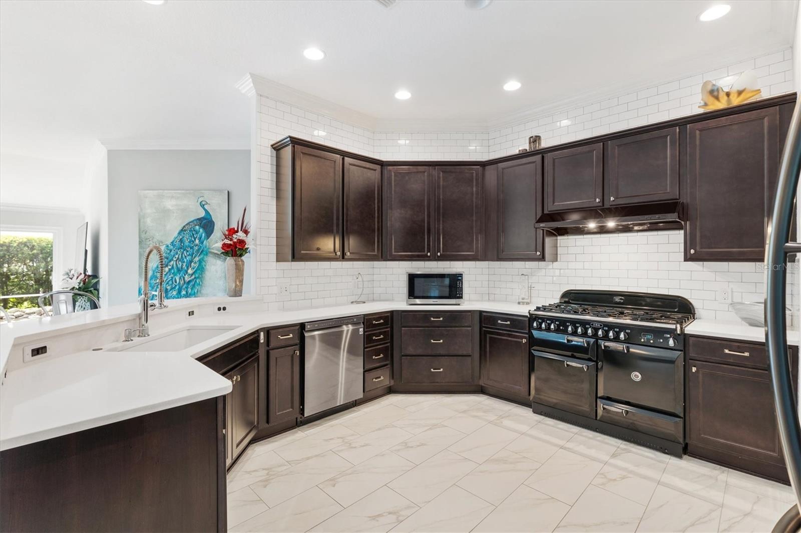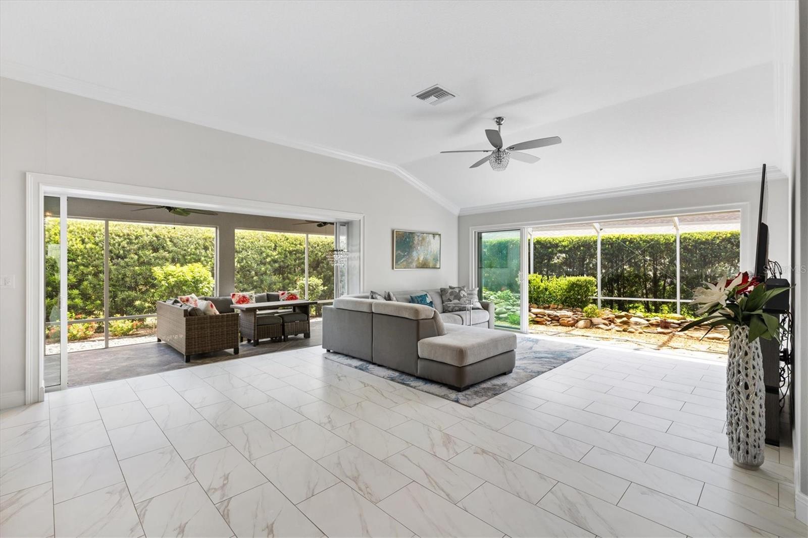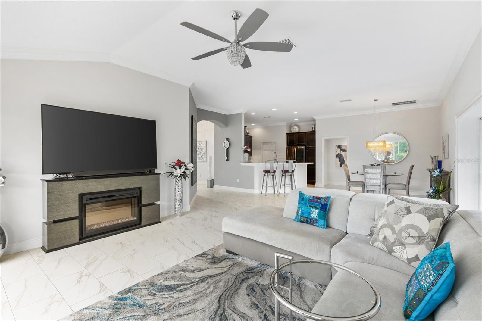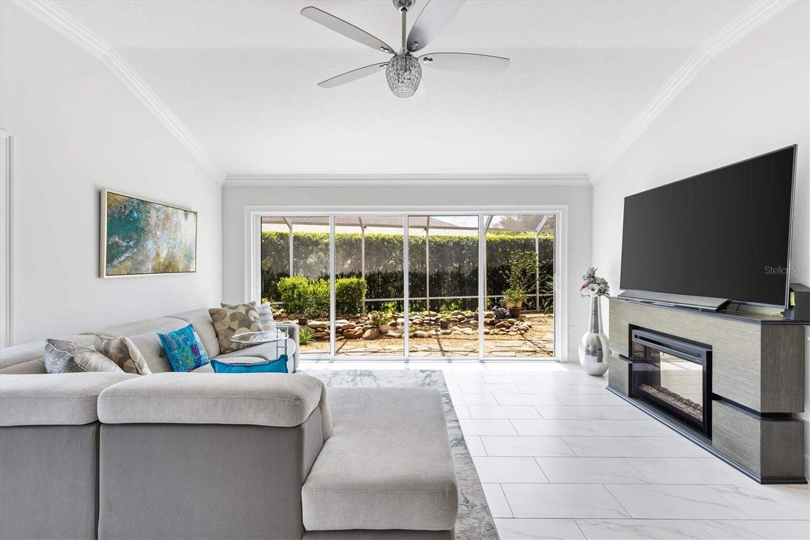 ELEGÂNCIA CHAVE EM OSCEOLA HILLS EM SOARING EAGLE. Bem-vindo a uma casa onde a elegância encontra a tranquilidade. Esta casa de 3 quartos/2 banheiros lindamente projetada com espaço de bônus adicional é perfeita para um escritório ou retiro tranquilo com vista para a serena cachoeira do jardim de pedras. NOVO TELHADO 2024 com garantia transferível. Entre para descobrir uma planta aberta com piso de porcelanato deslumbrante em todas as áreas principais e sancas em toda a casa. O coração da casa é a cozinha dos sonhos de um chef, com um requintado fogão AGA com fogão a gás de 6 bocas e dois fornos elétricos e grelha, backsplash de azulejos de metrô e amplos armários. As bancadas de quartzo fazem esta cozinha brilhar! A suíte principal é um verdadeiro retiro, ostentando teto falso com acabamentos decorativos, carpete berbere, móveis de design e banheiro privativo com pias duplas e luxuoso chuveiro romano. O closet personalizado oferece espaço de armazenamento excepcional e espaço inacreditável! A sala bônus/escritório fica ao lado da suíte Primária, com portas de correr para os jardins de pedras da cachoeira e a gaiola dos pássaros. A ala de hóspedes oferece dois quartos adicionais e um banheiro que se abre diretamente para a varanda, ótimo para entretenimento. Perfeito para vida interna/externa com grande varanda e gaiola sobre o jardim de pedras da cachoeira. A sala de estar tem portas deslizantes empilhadas, permitindo acesso de entretenimento sem esforço. Os destaques adicionais incluem TODOS os móveis, luminárias e ventiladores atualizados, garagem para dois carros e garagem para carrinhos de golfe. A garagem possui tela na porta grande para fluxo de ar e privacidade. Desça as escadas até o sótão para armazenamento. A garagem também dispõe de armários extras para arrumação. A entrada da casa possui sistema de filtragem de água Nova. Localizada na desejável Soaring Eagle, esta casa oferece mais do que apenas um lugar para morar, mas um estilo de vida e bairro fantásticos. A combinação de acabamentos de alta qualidade, mobiliário de bom gosto e lindos espaços exteriores tornam esta casa o máximo em luxo e conforto. Esta poderia ser a nova casa dos seus sonhos!! Agende uma exibição privada hoje. As taxas mensais de comodidade são 199,00.