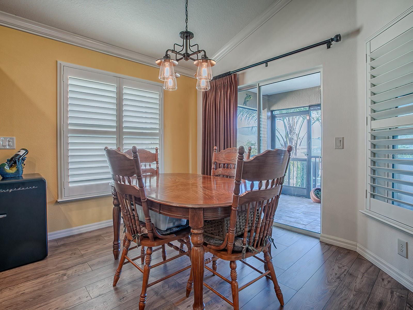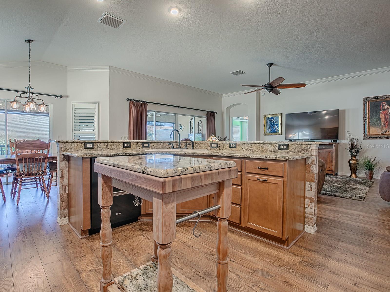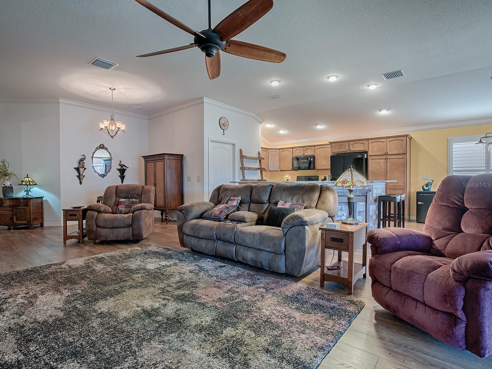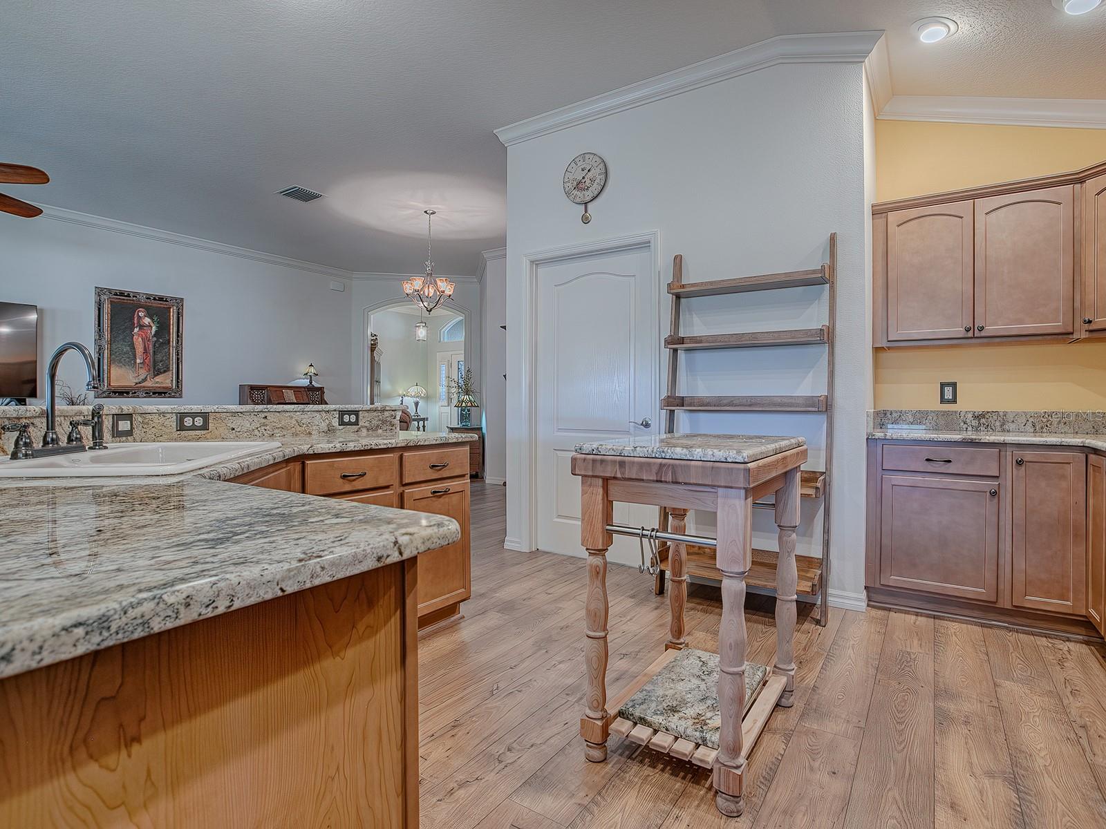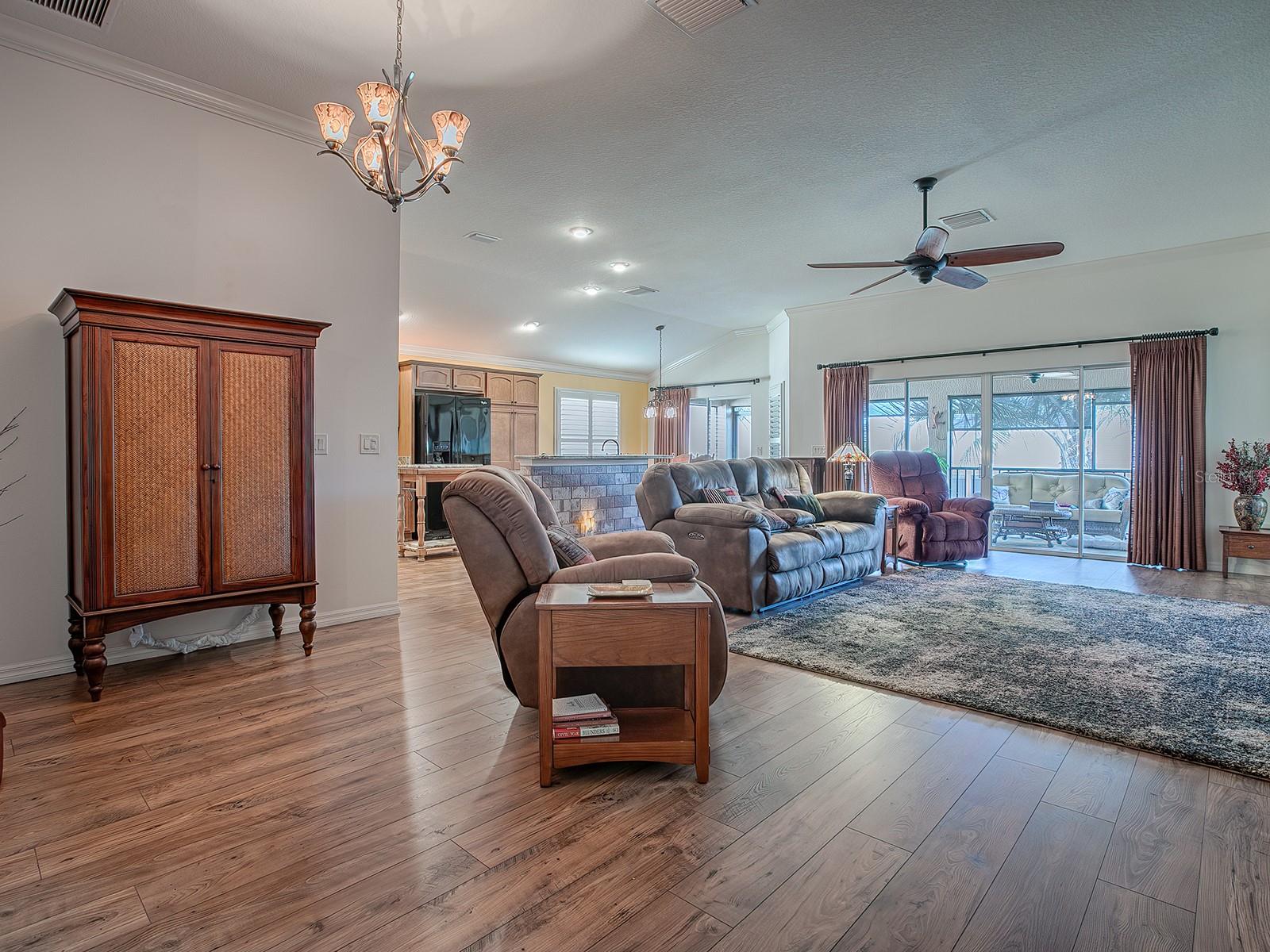 3/2 IRIS DESIGNER em PINE HILLS! Esta casa certamente impressionará, começando com o recurso do meio-fio - jardim frontal com belo paisagismo, passeio personalizado decorativo, pátio frontal com pavimentação de tijolos, tudo levando a uma entrada coberta com uma PORTA FRONTAL DE VIDRO MANCHADO COM CHUMBO, complementada por painéis laterais e uma janela de popa. No interior, o PISO DE MADEIRA PROJETADO flui por toda parte, aprimorado por MOLDURA DE COROA e PERSIANAS DE PLANTAÇÃO. O plano ABERTO e SPLIT apresenta uma espaçosa combinação de SALA DE ESTAR/JANTAR que se estende até uma LANAI FECHADA. A cozinha possui bancadas de granito, despensa mais próxima e um bar de café da manhã com paredes laterais de azulejos. O quarto principal tem um TETO DE BANDEJA aprimorado com sancas elegantes e venezianas. O banheiro da SUÍTE está equipado com pias duplas, balcões de granito, um lindo chuveiro romano com azulejos e um espaçoso closet projetado para organização e armazenamento ideais. Os QUARTOS DE HÓSPEDES também incluem ARMÁRIOS EMBUTIDOS e venezianas de plantações. O banheiro de hóspedes inclui uma combinação de penteadeira com cobertura de granito, banheira/chuveiro. Uma Pocket Door garante privacidade aos seus visitantes. O Convidativo e Lanai é um espaço adicional perfeito para relaxar e se divertir, está equipado com persianas suspensas e se conecta a um pátio de tijolos perfeito para grelhar. A GARAGEM 2 CAR PLUS GOLF CART tem muito espaço para arrumação. Itens adicionais que você certamente apreciará e tornarão esta casa um GRANDE VALOR: pintura externa fresca (2024), melhorias profissionais de paisagismo frontal e traseiro, lote elevado, escadas suspensas para o sótão junto com isolamento adicional para garagem e Lanai, atualizado Acessórios e ferragens de bronze polido com óleo, armários extras e pia na lavanderia, etc. Um dos dois bairros que compartilham seu nome com Fruitland Park, The Village of Pine Hills fica perto de todas as comodidades. Você está perto de golfe e restaurantes no Belle Glade County Club, de muitas atividades recreativas no Colony Cottage Recreation Center, além de lojas e restaurantes no adjacente Colony Plaza. A pitoresca Reserva Sharon Rose Wiechens fica ao lado do bairro e oferece um ótimo lugar para caminhar e apreciar a beleza natural da Flórida.