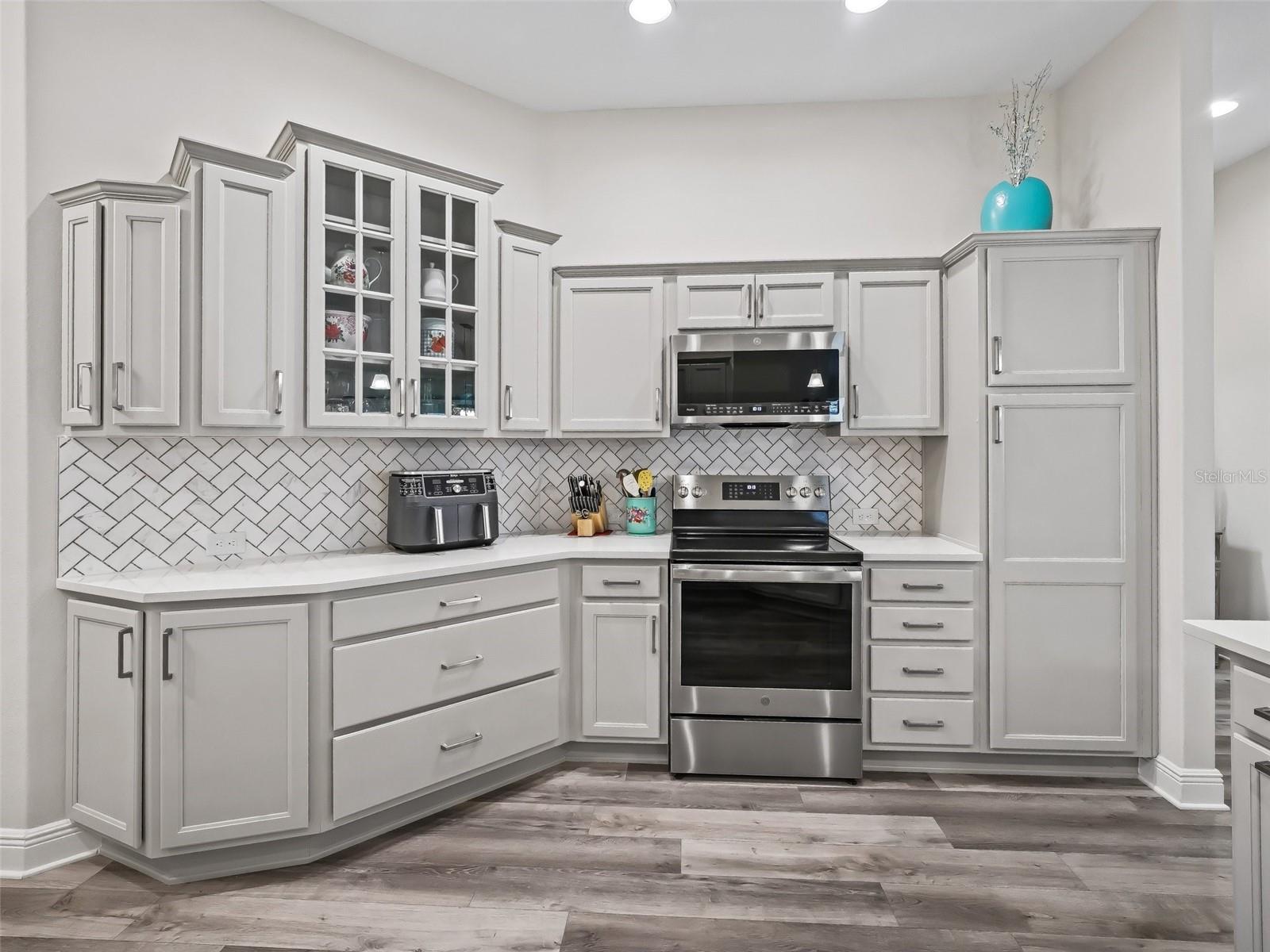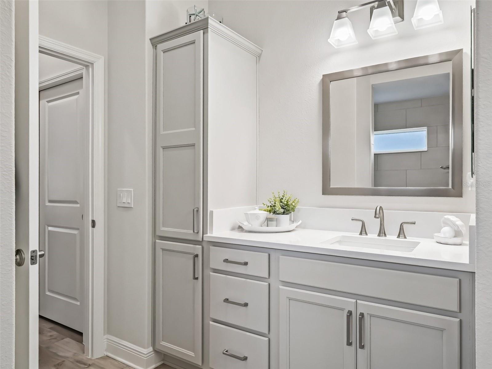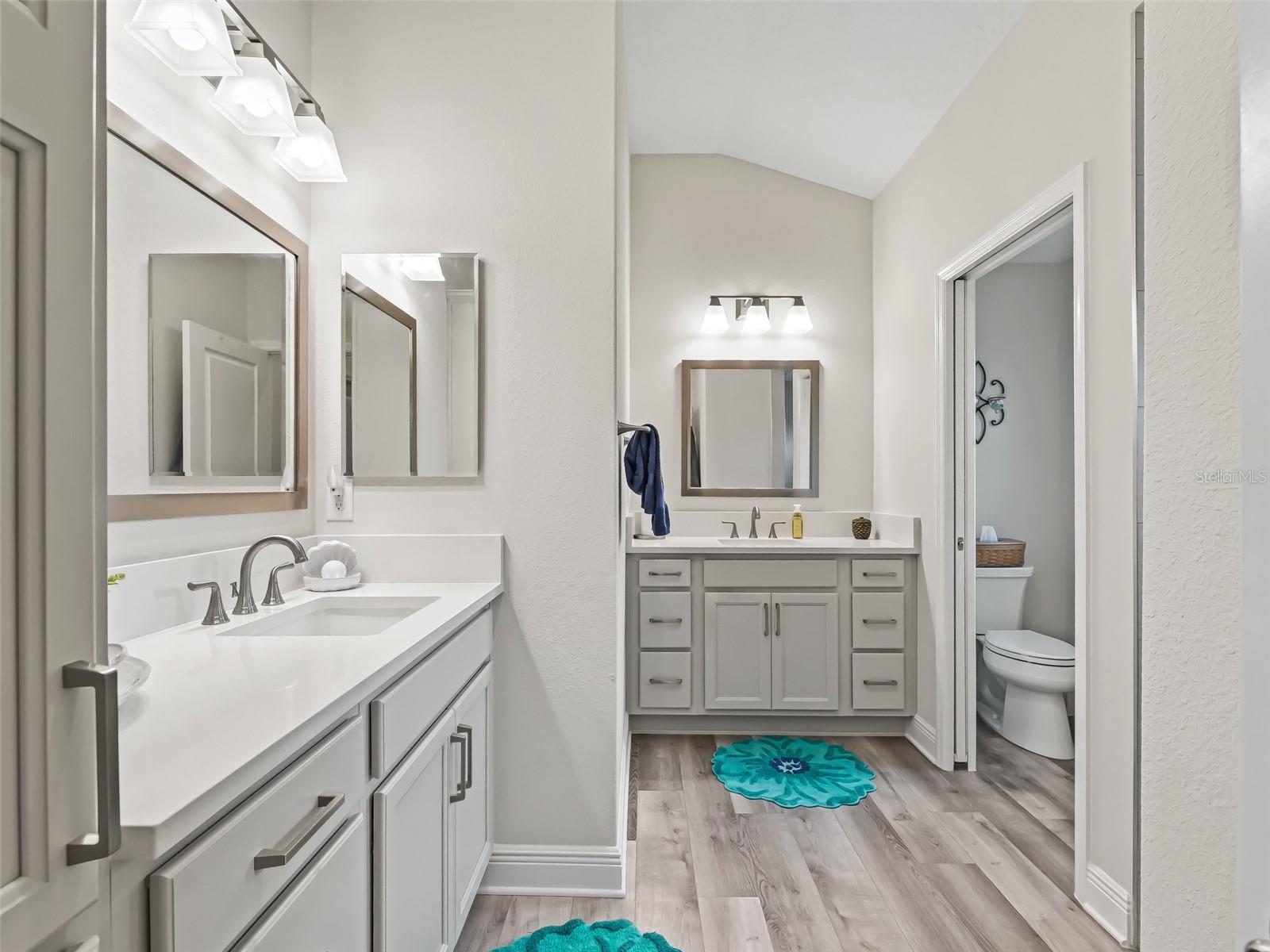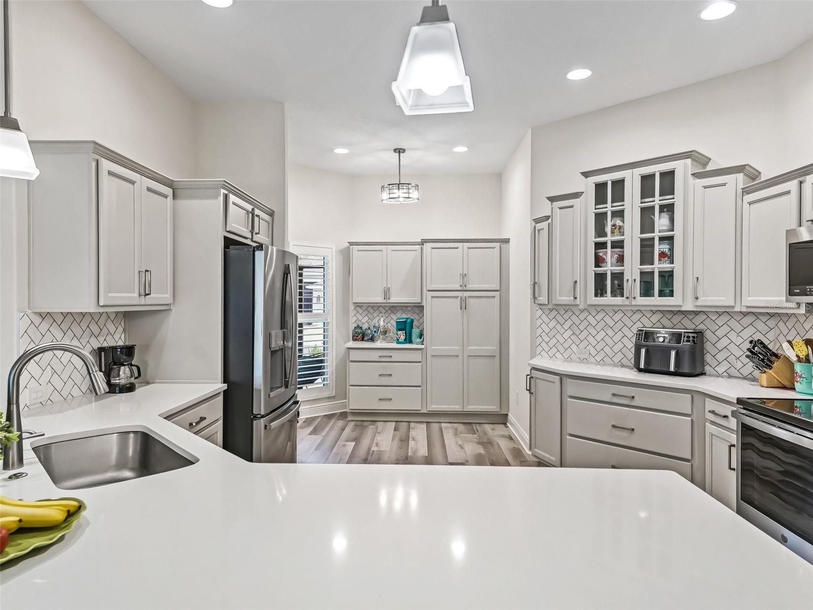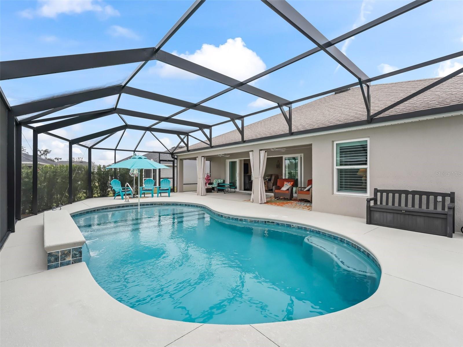 Bem-vindo a esta casa com piscina expandida de begônia, lindamente projetada, com 3 quartos e 2 banheiros, localizada na desejável vila de Richmond. Com mais de 2.000 pés quadrados de espaço luxuoso e apenas 2 anos de idade, esta casa com piscina cuidadosamente projetada oferece elegância e funcionalidade. Ao se aproximar da propriedade, você notará o paisagismo profissional e a entrada com tela personalizada. Entre para encontrar luxuosos pisos de pranchas de vinil e venezianas adornando todas as janelas. A planta aberta apresenta tetos altos, criando uma atmosfera luminosa e espaçosa. O coração da casa é a cozinha do chef, com armários extras, bancadas de quartzo, pia e eletrodomésticos de aço inoxidável e um layout aberto com vista para o espaço de jantar e de estar, tornando-o ideal para entretenimento. A suíte principal é um verdadeiro retiro, completa com closets duplos, controles deslizantes que levam à varanda e um banheiro tipo spa com bancadas de quartzo, pias duplas, vaso sanitário separado e chuveiro romano. Os hóspedes poderão desfrutar da privacidade da sua própria ala, separada por uma porta de correr, proporcionando um espaço sereno e confortável. O quarto da frente é realçado por encantadoras janelas salientes, perfeitas para uma área de estar ou luz natural adicional. Os controles deslizantes que desaparecem da área de estar levam a um oásis privativo ao ar livre com uma varanda medindo 30x8 e um pátio expandido com uma piscina de água salgada aquecida a gás, e estar sob uma gaiola o torna perfeito para relaxar ou organizar reuniões. Uma garagem ampliada para 2 carros (por 4 pés com porta de garagem de 18 pés) com garagem para carrinho de golfe é revestida com epóxi e oferece amplo armazenamento para veículos e hobbies. Esta casa incorpora verdadeiramente o luxo e o estilo de vida de The Villages - não perca a oportunidade de torná-la sua! Perto da Brownwood Paddock Square, 3 centros recreativos, lojas, restaurantes, golfe/esportes e fácil acesso dentro e fora das aldeias.