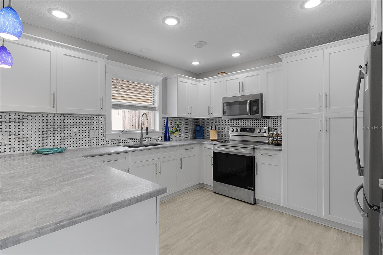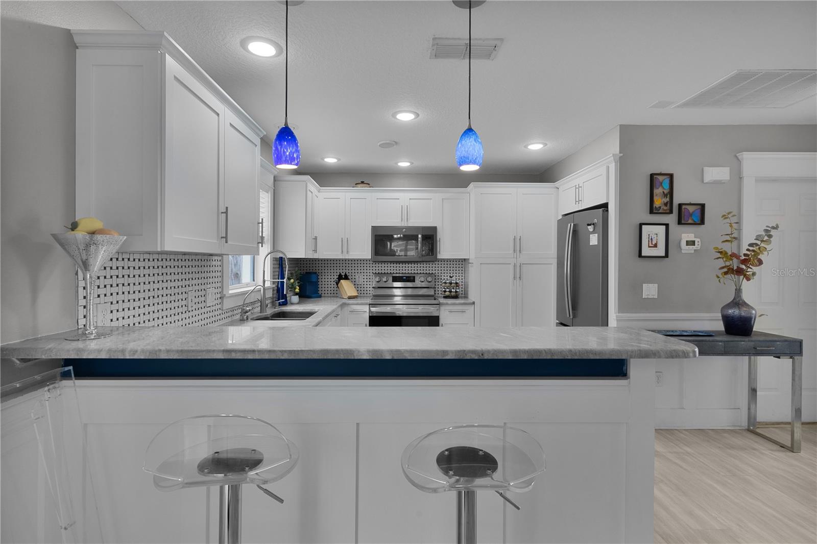 Uau ... e incrivelmente bonito nem começam a descrever esse bloco/estuque remodelado 2/2 Las Brisas Courtyard Villa sem vínculo e privacidade total! Praticamente uma reforma completa - cozinha, pisos, tetos, balcões, armários, iluminação ... e espere até ver os 2 banheiros, vidro fechado Lanai e o pátio privado! O vendedor anterior usou sua vida de trabalhar no campo para personalizar esta casa como um primeiro -ministro. A espaçosa cozinha possui balcões de granito, backsplash de azulejos, aparelhos inoxidáveis, portas/hardware de armários mais recentes, despensa, retiradas e luzes pendentes! Aberto para as salas de jantar/estar, os belos tetos de planagem de vinil de luxo e knockdown abobadados são acentuados por lambris e cornijas. O vidro fechado Lanai possui uma lareira embutida e tons remotos não apenas nas janelas traseiras, mas também na área de estar, criando um espaço muito privado, e o espaço adicional de 112 pés quadrados faz do espaço eficaz 1192 '. A suíte primária oferece um closet personalizado e o banho de suíte recebeu uma reforma completa com um lindo chuveiro de azulejos, porta de moldura, vaidade e armários sem molduras. Se você gosta disso, o banho de hóspedes é igualmente impressionante com um chuveiro de azulejos, cabeça de chuveiro, espelho emoldurado controlado por termostato, nova vaidade e armários. Volte-se e relaxe em sua banheira de hidromassagem privada (com um motor mais recente), pátio de baixa manutenção em um belo cenário com pavimentadores, gaiola, mural pintado personalizado através da parede do pátio dos fundos, além de um pedaço de grama falsa para o seu peludo amigos. Muitos extras incluem uma bela porta de entrada de vidro com chumbo, calhas, camas de jardim de pedra empilhadas, amaciador de água, escadas do sótão e o exterior foi repintado. O vendedor está saindo para a conveniência do comprador, a geladeira no sistema, sistema de som e montagens de TV (as TVs não transmitem). Mova -se direto sem preocupações - o telhado foi substituído em 2012 e o aquecedor de HVAC e água em 2023. Localizado em De La Vista N. Você está perto de Spanish Springs e Lake Sumter Town Squares, muito golfe, centros de recreação, piscinas , Restaurantes, compras e grande médico! Para realmente apreciar esta casa maravilhosa, clique no botão "Tour" para ver a turnê de vídeo! A linha fiscal reflete apenas os impostos sobre a propriedade. A linha CDD reflete a combinação de manutenção anual e distrito de bombeiros. Sem vínculo! Então, o que você está esperando? Se não agora, quando ???