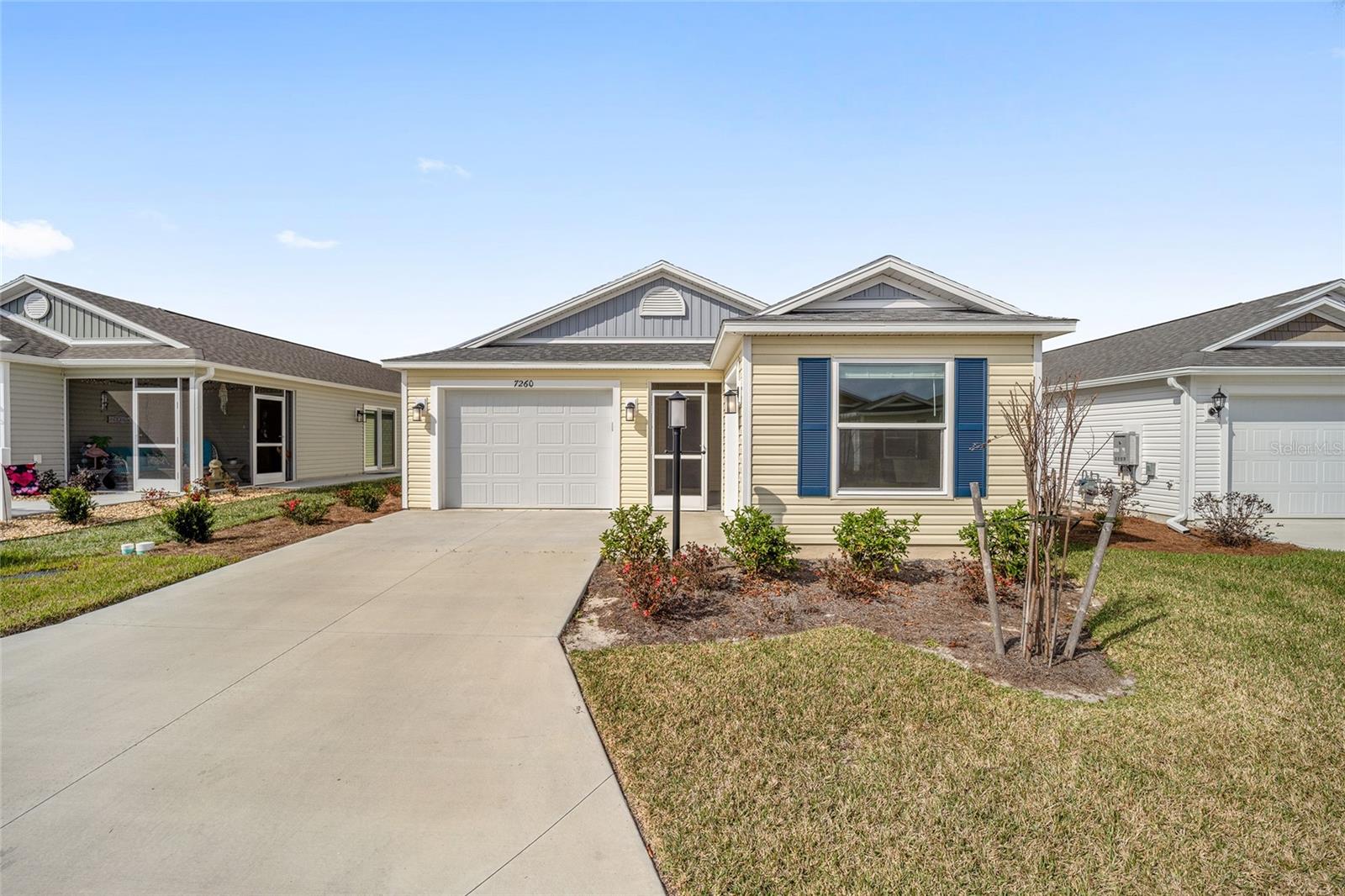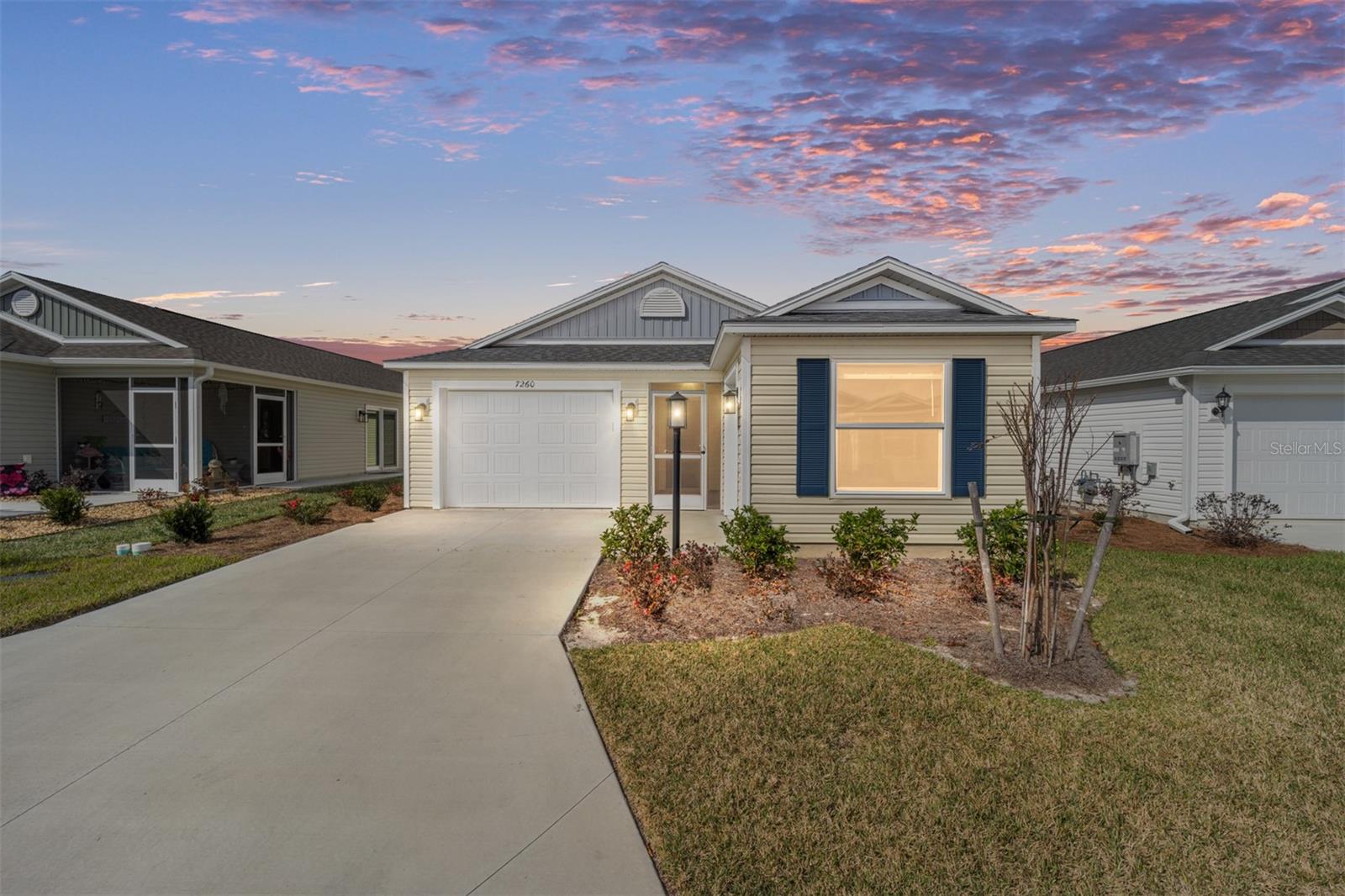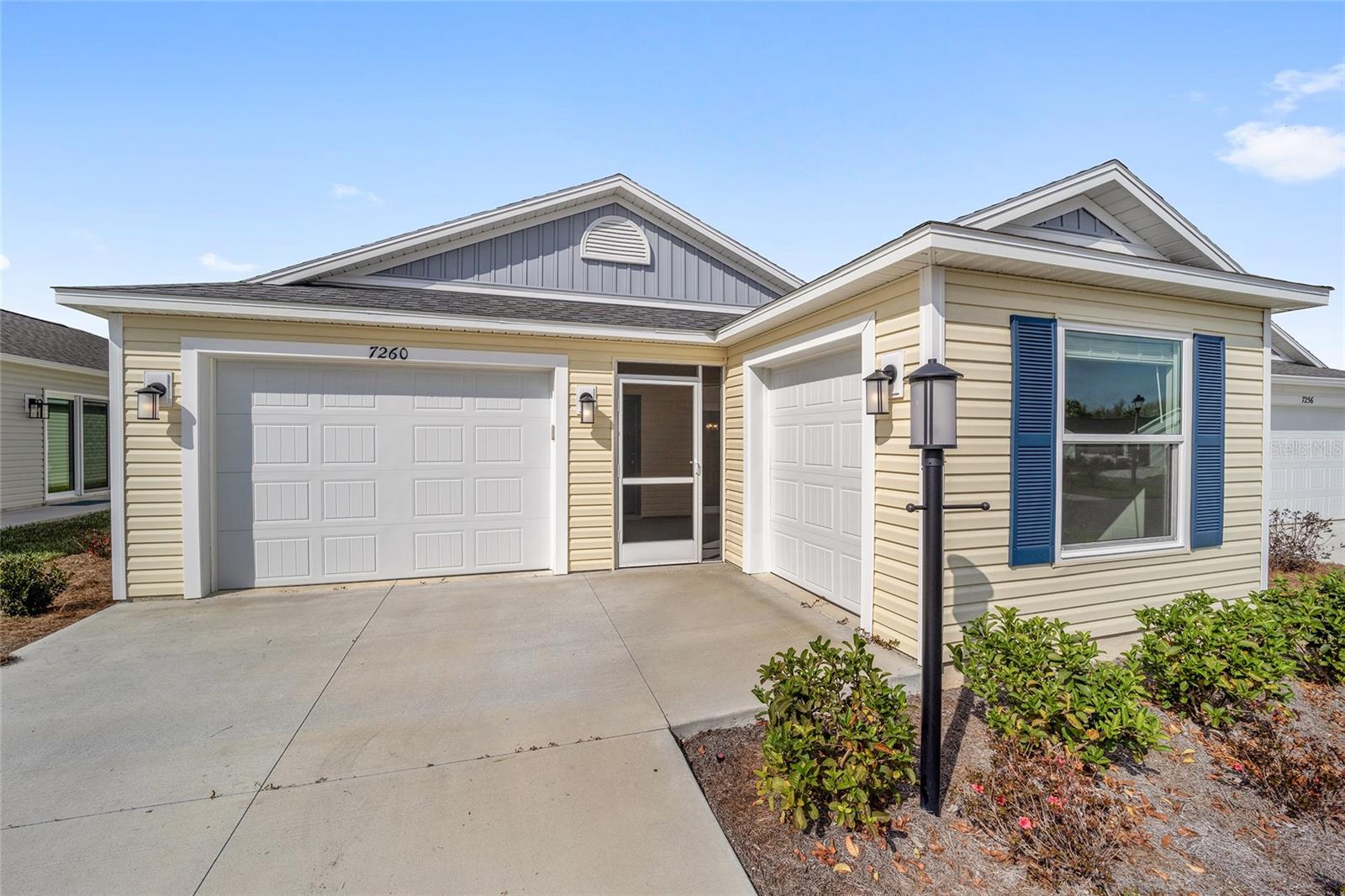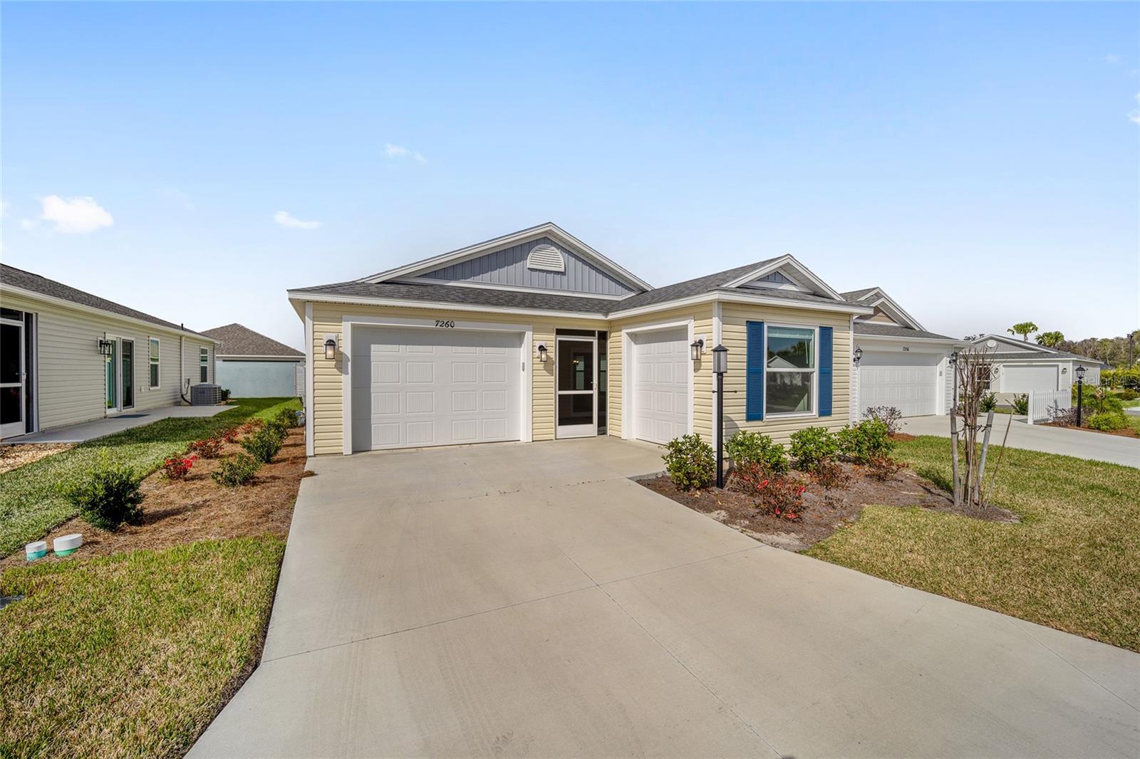 A vila de Lake Denham - Annison Villas - Emerald Patio Villa construída em 2023 - a poucos minutos do carrinho de golfe para Sawgrass Grove ® Entertainment Complex & Market, com instalações de recreação e campos de golfe próximos !! Um parque de cães e as almofadas de visualização de astronomia do Allingrages® estão próximas no Homestead Recreation Center, também são o Franklin Recreation Center e o Mickylee Pitch & Putt! -2 quartos, 2 banheiros, lanai coberto de tela, pátio lateral, garagem para um carro e uma garagem para carrinho de golfe separada de carga lateral !! - Casa a gás, aquecedor de água sem tanque, sistema de irrigação, casa pronta de fibra óptica, persianas nas janelas, piso de vinil de luxo nas principais áreas de estar e carpete (fevereiro de 2025, limpo profissionalmente) nos quartos! -O espaçoso quarto primário possui um teto abobadado com um banheiro privativo, grande closet com prateleiras extras, chuveiro passo a passo, privado privado, vaidade alta e duas pias-o quarto de hóspedes tem um interno embutido Armário. Banheiro de hóspedes do Hall também com uma vaidade alta, pia única, combinação de banheira/chuveiro com chuveiro de chuva. -A cozinha possui armários brancos de estilo shaker com puxadores e gavetas de maconha, há uma grande ilha com saliência de café da manhã, área de mesa embutida, despensa de armário, aparelhos de aço inoxidável, gama de gás e armário de lavanderia (lavadora Samsung & Secador a gás) - Esta planta baixa facilita o entretenimento! O Lanai exibido está fora da sala de jantar e tem duas portas de saída, além de porta de entrada para a garagem do carrinho de golfe de carga lateral, o que lhe dá privacidade para apreciar o clima da Flórida. Não perca esta jóia nas aldeias, FL!