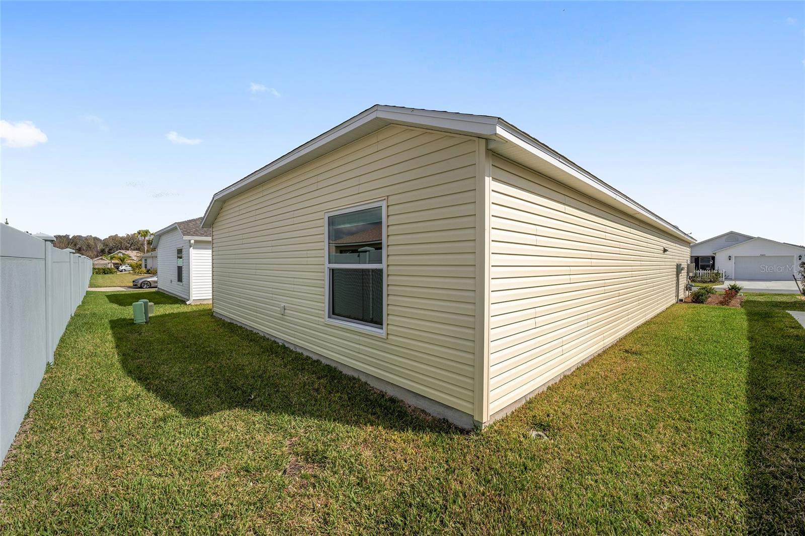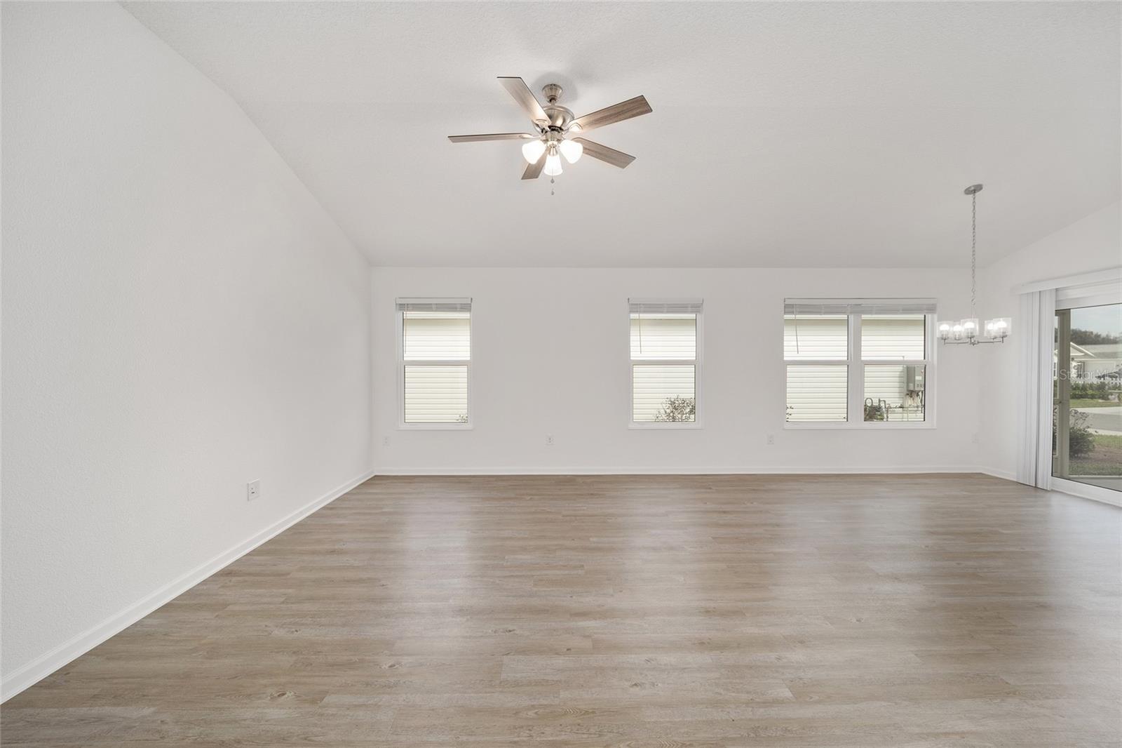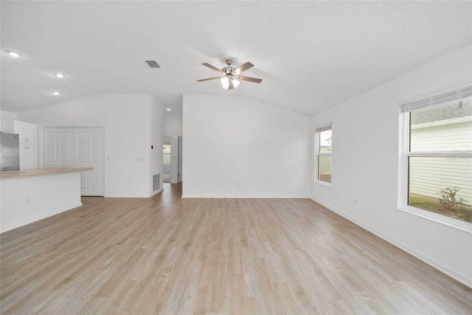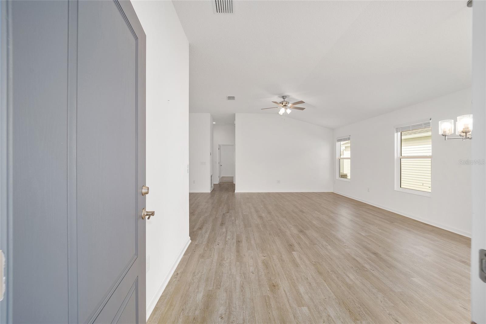 A vila de Lake Denham - Annison Villas - Emerald Patio Villa construída em 2023 - a poucos minutos do carrinho de golfe para Sawgrass Grove ® Entertainment Complex & Market, com instalações de recreação e campos de golfe próximos !! Um parque de cães e as almofadas de visualização de astronomia do Allingrages® estão próximas no Homestead Recreation Center, também são o Franklin Recreation Center e o Mickylee Pitch & Putt! -2 quartos, 2 banheiros, lanai coberto de tela, pátio lateral, garagem para um carro e uma garagem para carrinho de golfe separada de carga lateral !! - Casa a gás, aquecedor de água sem tanque, sistema de irrigação, casa pronta de fibra óptica, persianas nas janelas, piso de vinil de luxo nas principais áreas de estar e carpete (fevereiro de 2025, limpo profissionalmente) nos quartos! -O espaçoso quarto primário possui um teto abobadado com um banheiro privativo, grande closet com prateleiras extras, chuveiro passo a passo, privado privado, vaidade alta e duas pias-o quarto de hóspedes tem um interno embutido Armário. Banheiro de hóspedes do Hall também com uma vaidade alta, pia única, combinação de banheira/chuveiro com chuveiro de chuva. -A cozinha possui armários brancos de estilo shaker com puxadores e gavetas de maconha, há uma grande ilha com saliência de café da manhã, área de mesa embutida, despensa de armário, aparelhos de aço inoxidável, gama de gás e armário de lavanderia (lavadora Samsung & Secador a gás) - Esta planta baixa facilita o entretenimento! O Lanai exibido está fora da sala de jantar e tem duas portas de saída, além de porta de entrada para a garagem do carrinho de golfe de carga lateral, o que lhe dá privacidade para apreciar o clima da Flórida. Não perca esta jóia nas aldeias, FL!