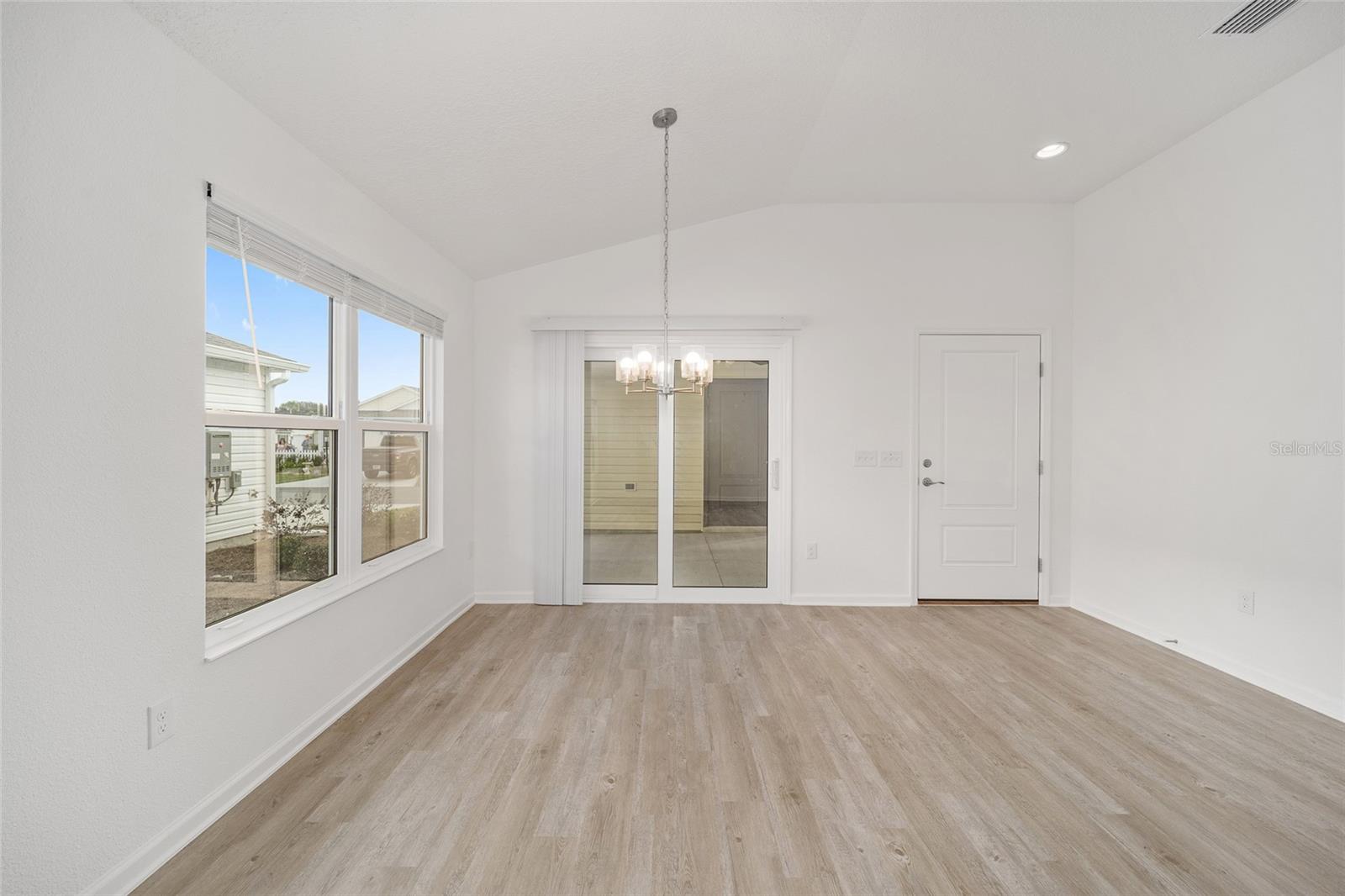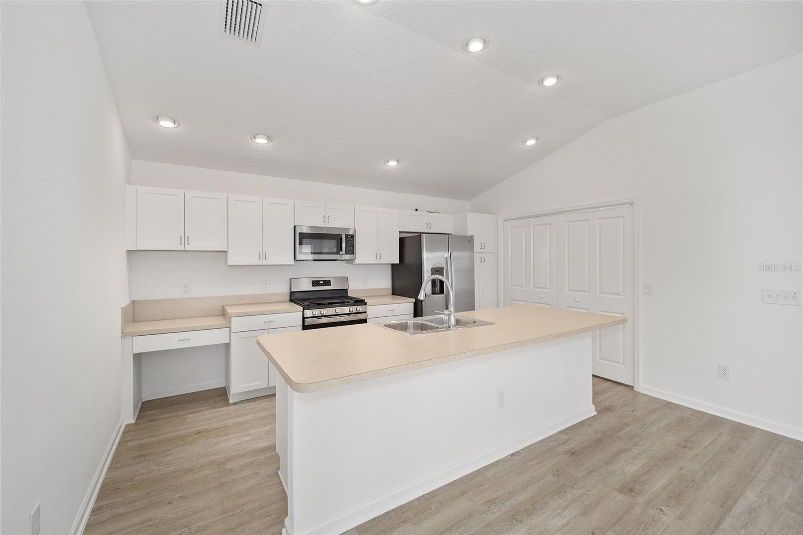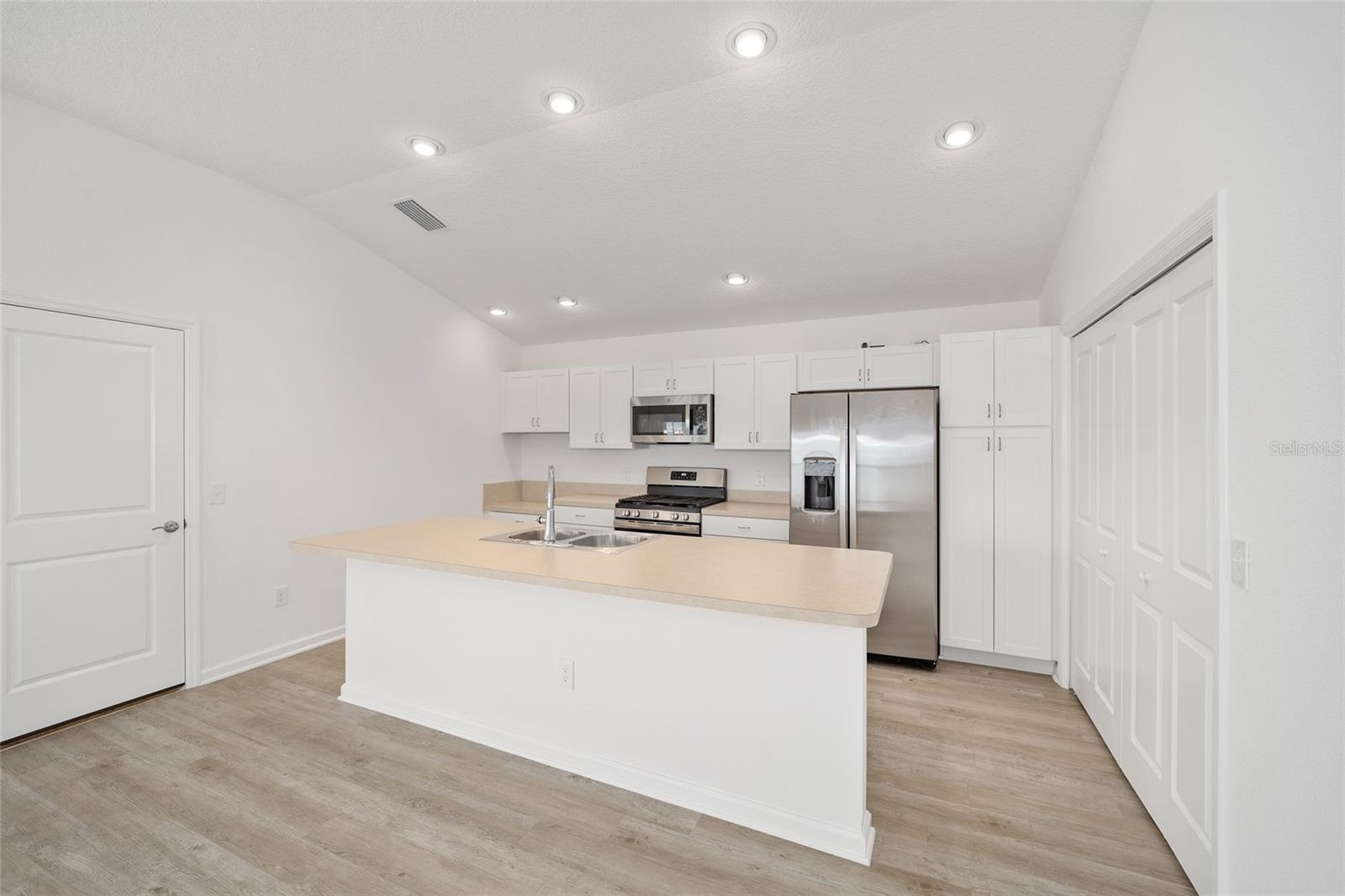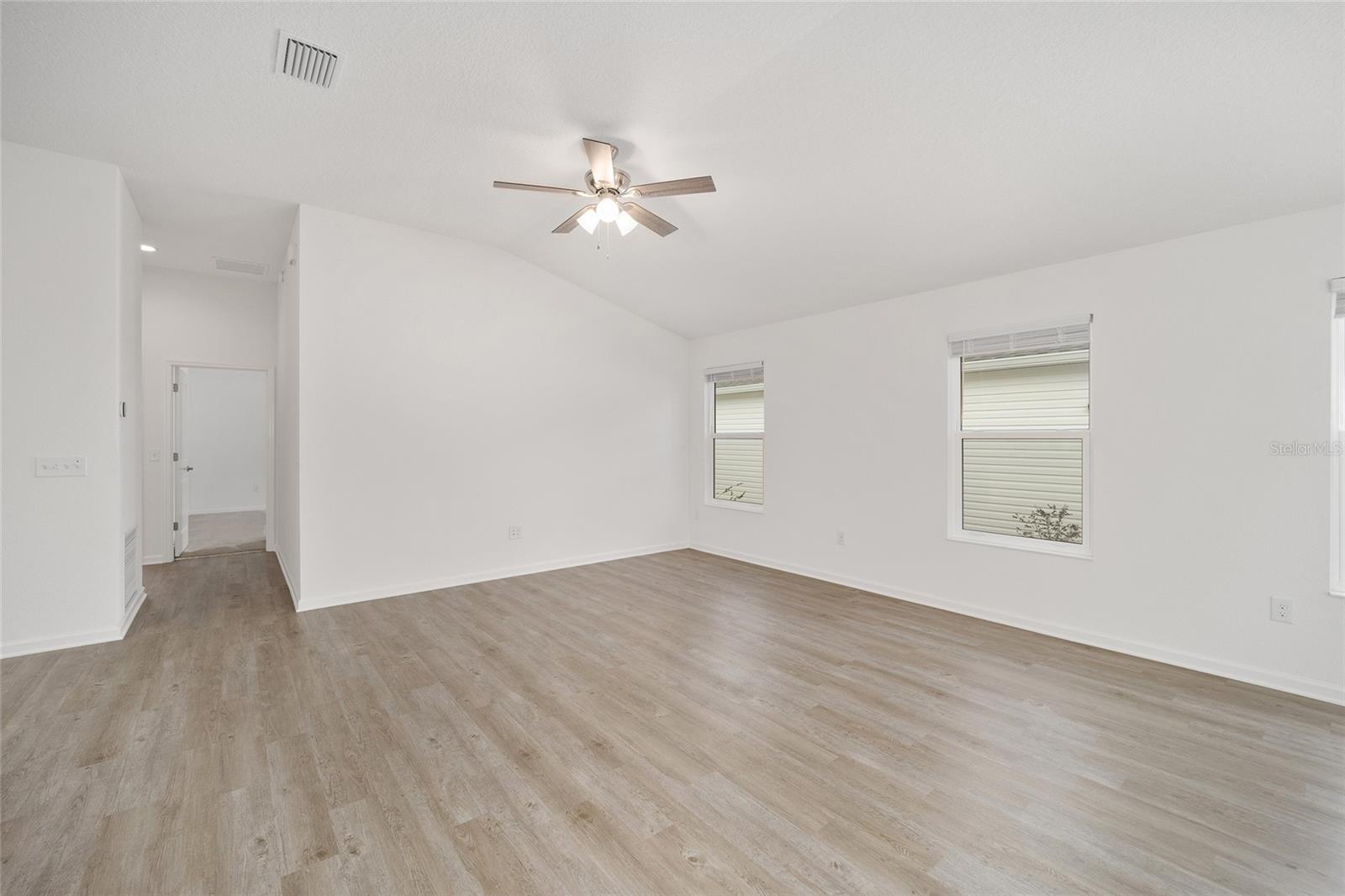 A vila de Lake Denham - Annison Villas - Emerald Patio Villa construída em 2023 - a poucos minutos do carrinho de golfe para Sawgrass Grove ® Entertainment Complex & Market, com instalações de recreação e campos de golfe próximos !! Um parque de cães e as almofadas de visualização de astronomia do Allingrages® estão próximas no Homestead Recreation Center, também são o Franklin Recreation Center e o Mickylee Pitch & Putt! -2 quartos, 2 banheiros, lanai coberto de tela, pátio lateral, garagem para um carro e uma garagem para carrinho de golfe separada de carga lateral !! - Casa a gás, aquecedor de água sem tanque, sistema de irrigação, casa pronta de fibra óptica, persianas nas janelas, piso de vinil de luxo nas principais áreas de estar e carpete (fevereiro de 2025, limpo profissionalmente) nos quartos! -O espaçoso quarto primário possui um teto abobadado com um banheiro privativo, grande closet com prateleiras extras, chuveiro passo a passo, privado privado, vaidade alta e duas pias-o quarto de hóspedes tem um interno embutido Armário. Banheiro de hóspedes do Hall também com uma vaidade alta, pia única, combinação de banheira/chuveiro com chuveiro de chuva. -A cozinha possui armários brancos de estilo shaker com puxadores e gavetas de maconha, há uma grande ilha com saliência de café da manhã, área de mesa embutida, despensa de armário, aparelhos de aço inoxidável, gama de gás e armário de lavanderia (lavadora Samsung & Secador a gás) - Esta planta baixa facilita o entretenimento! O Lanai exibido está fora da sala de jantar e tem duas portas de saída, além de porta de entrada para a garagem do carrinho de golfe de carga lateral, o que lhe dá privacidade para apreciar o clima da Flórida. Não perca esta jóia nas aldeias, FL!