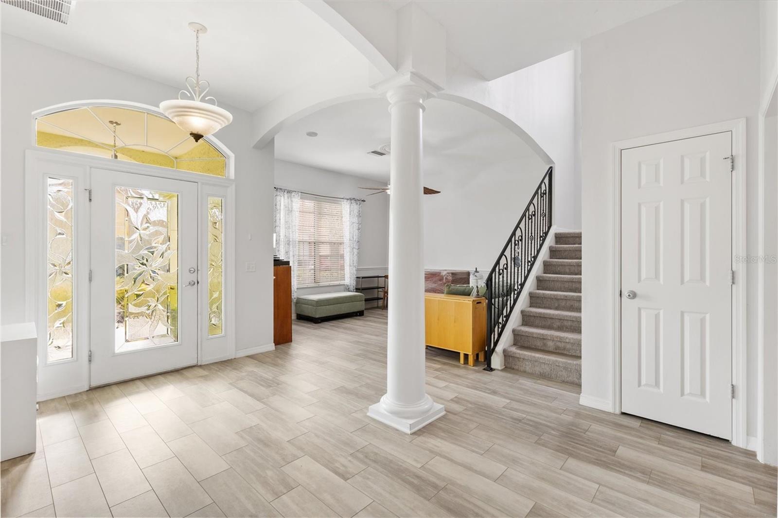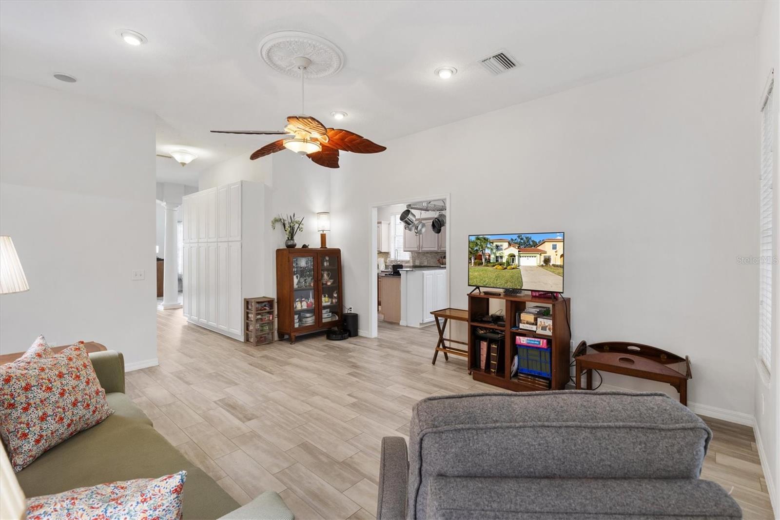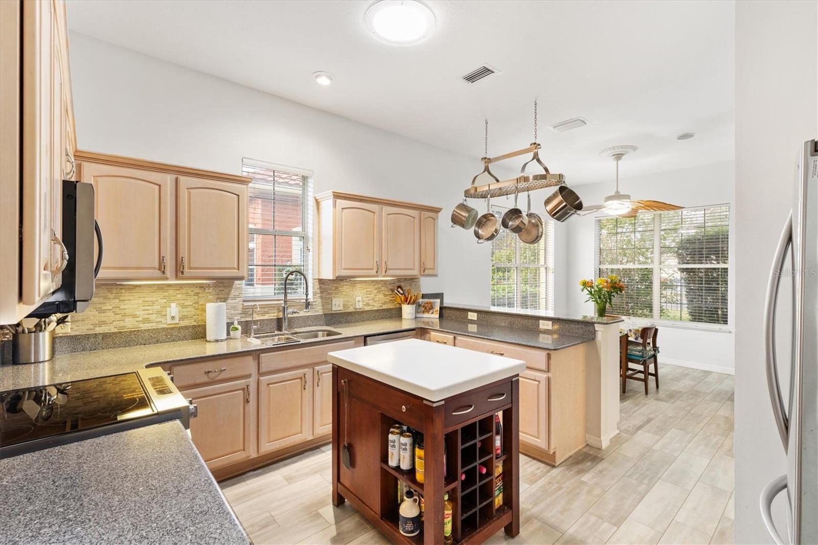 Caminhe ou Golfcart até Spanish Springs! 3 quartos 2 1/2 condomínio da moradia de banho localizado nas desejáveis Villas Sonoma Sonoma. Esta residência de dois andares apresenta uma varanda frontal coberta acolhedora, a elegante porta da frente de vidro de vidro e os painéis laterais e atualizações, incluindo um novo teto (2020), sistema HVAC (2019) e aquecedor de água quente a gás (2022). Os pisos de tábua de vinil de luxo enfeitam o primeiro andar. Fãs de teto com kits de luzes por toda parte. O primeiro andar possui um amplo salão de entrada, uma sala de frente versátil ideal para uma área de jantar formal ou covil, uma conveniente sala de pó e lavanderia. A espaçosa sala de estar na parte de trás da casa se abre através de portas francesas, com persianas na sala de tela, com teto de tela de chuva e pátio de grelhados com hedge de privacidade. A cozinha bem equipada inclui utensílios de aço inoxidável, prateleiras de armário de tração, armário de despensa, tubo solar e uma lanchonete aconchegante para refeições casuais. Retire para o quarto principal, com um closet personalizado e um banheiro privativo com pias duplas e um chuveiro. O segundo andar oferece dois quartos de hóspedes, complementados pela cozinha de um mordomo e um banheiro de hóspedes para maior conveniência e privacidade. Esta vila combina conforto e estilo em um local privilegiado. Recursos adicionais que tornam esta casa especial são: Teto ao teto construído em armários no salão e na garagem, armazenamento adicional construído na jantar, armário de casaco de salão e no armário de armazenamento profundo da escada, bancadas de coriano, 2 tubos solares no quarto de hóspedes de 5 anos, generac generac generac generator, amaciador de água e sistema de purificação e um novo conforto para os banheiros altos. Um bônus extra é que esta casa tem gás natural disponível. Convenientemente localizado perto de compras, restaurantes e entretenimento e todas as aldeias oferecem. Agende uma exibição hoje e comece a viver o sonho das aldeias!