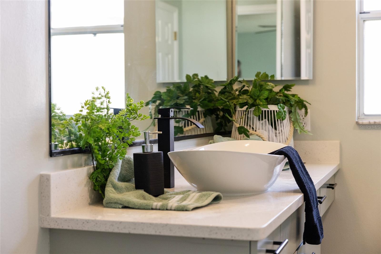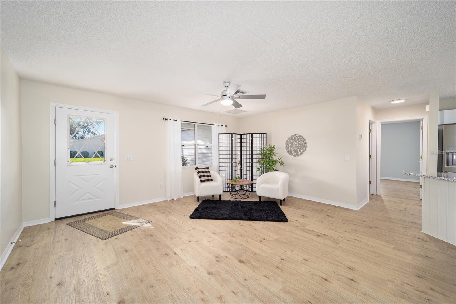 A vila de El Cortez - sem vínculo, sem taxa de manutenção de CDD !! -Modelo Recentemente Remodelado Corpus Christi *** Tão perto do Centro de Recreação Chula Vista, Mira Mar de Golfe Executivo e Spanish Springs Town Square ® *** Esta casa tem 1.248 pés quadrados com 2 quartos, 2 banheiros e garagem de 2 carros em um lote de canto !! - telhado: 12/2023- Aquecedor de água: 2021- HVAC: 2013- Novo piso laminado resistente à água em toda a casa !! - Recém-pintado (paredes interiores, portas e acabamentos, porta de garagem, porta da frente, persianas e paredes de garagem). - A cozinha é um sonho e é lindamente remodelada com novos armários, puxadores, bancadas em granito, backsplash de ladrilhos, pia de aço inoxidável com torneira de caneca, geladeira de aço inoxidável, lava -louças e alcance. Também uma ilha central com tampa de granito (eletrificada) com saliência para o café da manhã, tábua de contas, iluminação pingente moderna.! - A planta baixa é perfeita para entreter com uma espaçosa sala de estar com janelas até o quintal da frente. A sala de jantar tem um controle deslizante de 6 pés para o lanai fechado (com janelas de vinil) !! -Entrando na espaçosa primária, você encontrará um quarto de 14 pés x 14 pés, 5 pés x 10 pés e o banheiro privativo com armários recém-pintados, vanguarda de quartzo nova e pia de embarcação , Nova iluminação, chuveiro de canto com vidro novo e paredes e piso de azulejos, também uma janela e um armário de linho. - A ala de hóspedes tem um quarto de 10 pés x 15 pés, e o banheiro de hóspedes tem uma única vaidade com a nova vanguarda de quartzo e pia de embarcação, nova iluminação, combinação de banheira/chuveiro com paredes de azulejos. - A lavanderia interna abriga uma lavadora Kenmore e secadora elétrica e tem uma porta com porta de tela para a garagem de 2 carros. *** Não espere para ver esse movimento pronto para casa e aproveite todas as aldeias, a FL tem a oferecer !!! ***