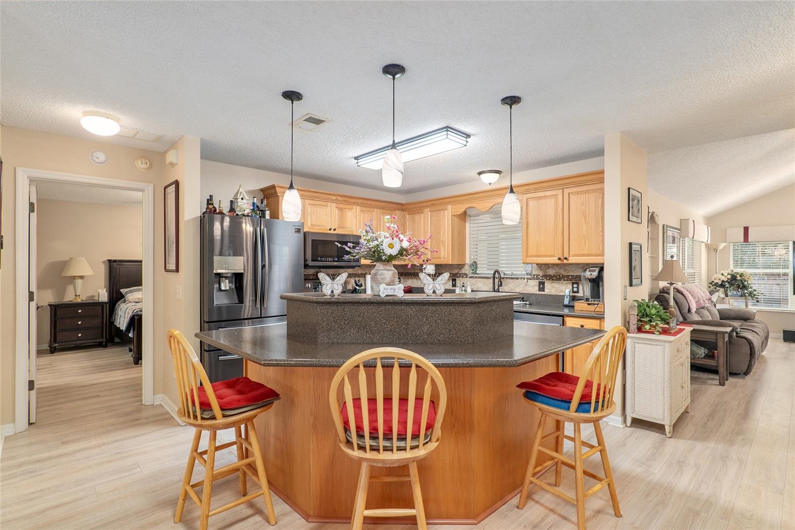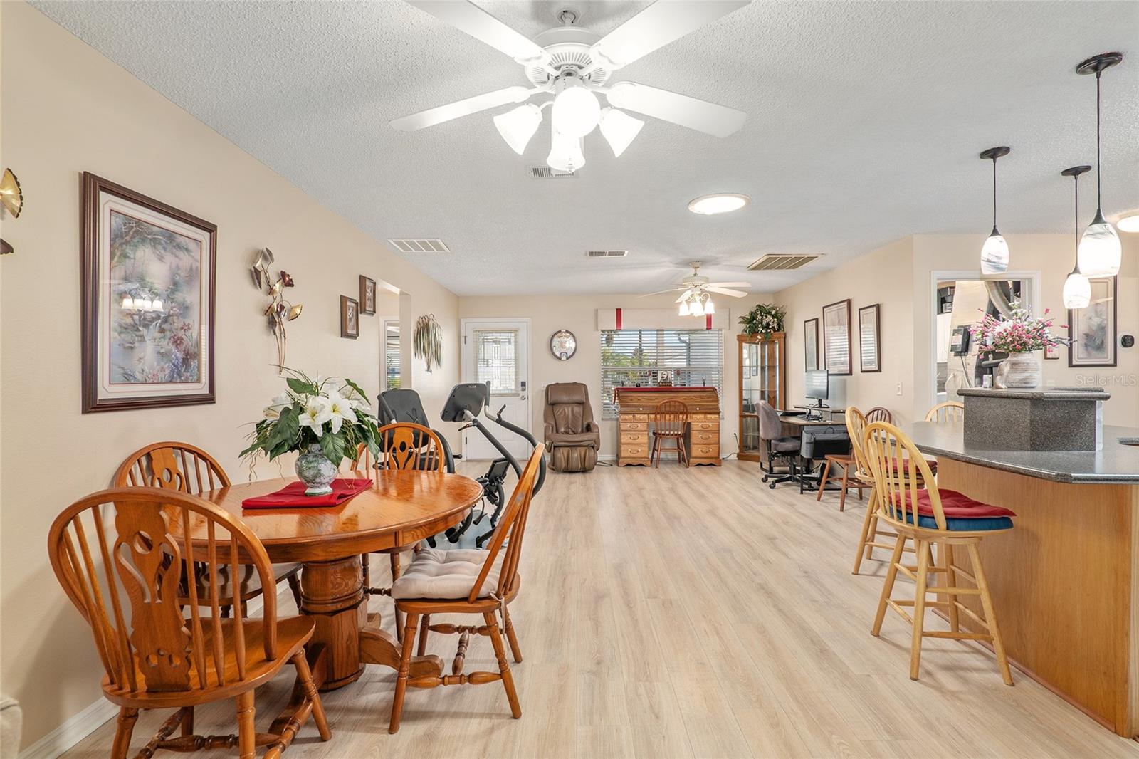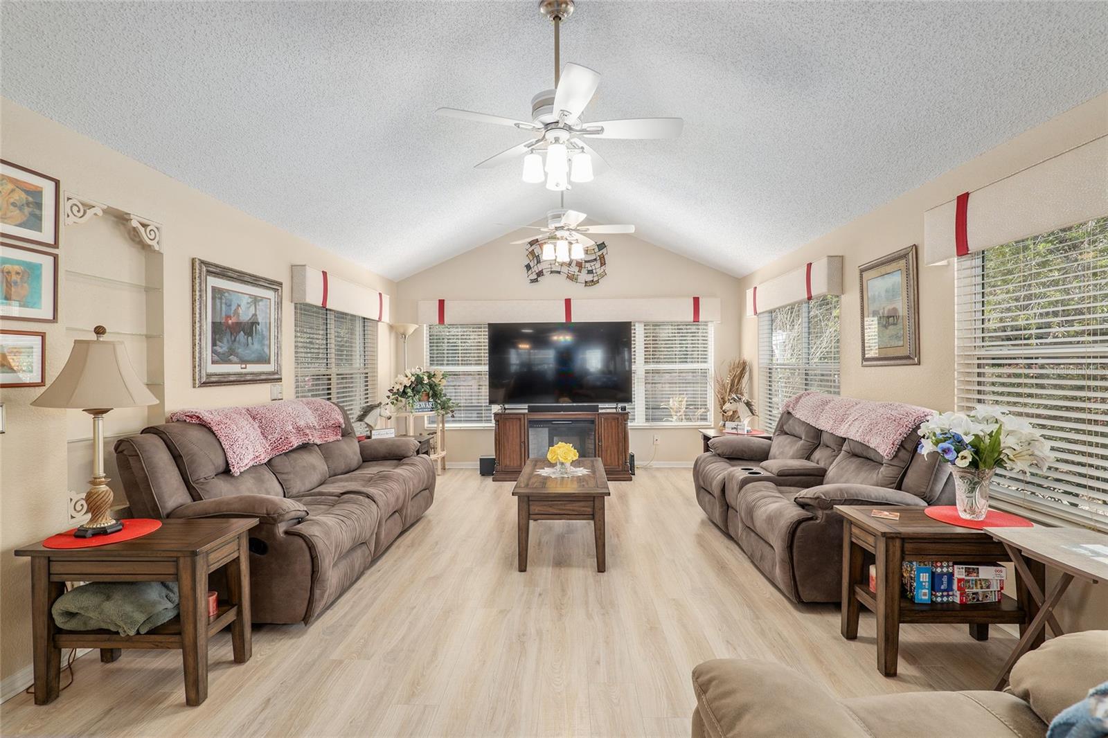 DE VOLTA AO MERCADO SEM CULPA DO VENDEDOR Não perca este lindo modelo Amarillo de 3 quartos e 2 banheiros SEM VINCULAÇÃO, localizado na altamente desejável vila de Piemonte! A partir do momento em que você chegar, você notará o paisagismo maduro com BAIXA MANUTENÇÃO, calçada pintada e charmosa varanda frontal com tela decorativa que cria um apelo acolhedor ao meio-fio. Entre pela entrada de vidro com chumbo para uma planta baixa de conceito aberto com uma sala de estar EXPANDIDA com tetos abobadados e chave na mão oferecida separadamente. A cozinha brilha com iluminação e bancadas ATUALIZADAS, backsplash moderno e atualmente inclui fogão elétrico com GÁS HOOK-UP já instalado caso você prefira cozinhar a gás. Atualizações adicionais incluem SEM TAPETE (piso LVP nas principais áreas de estar), TUBOS SOLARES para luz natural e lavanderia interna para maior comodidade. A suíte principal oferece um espaçoso closet e banheiro com penteadeira dedicada, tornando-a o cenário perfeito para se preparar para qualquer ocasião. Uma das características de destaque desta casa é a sala Florida com temperatura controlada, combinando perfeitamente o conforto interno com a vida ao ar livre. Além disso, entre no EXPANSIVO PÁTIO COBERTO com gaiola para pássaros, proporcionando o espaço ideal para entretenimento, jantar ou simplesmente aproveitar o lindo clima da Flórida. Com uma exposição frontal voltada para o leste, desfrute do NASCER DO SOL de tirar o fôlego em sua varanda frontal e do pôr do sol relaxante em sua varanda traseira privada. O quintal oferece verdadeira privacidade SEM CASAS ATRÁS, criando uma atmosfera tranquila e serena. TELHADO 2020, AQUECEDOR DE ÁGUA SEM TANQUE e SISTEMA DE AMACIADOR DE ÁGUA, GARANTIA PAGA! Esta casa está perfeitamente localizada perto de campos de golfe profissionais, como Nancy Lopez, Legacy e Glenview, além de proximidade com o Centro Recreativo Mulberry e a piscina somente para adultos do Calumet, esta casa oferece conveniência e vida em estilo resort.