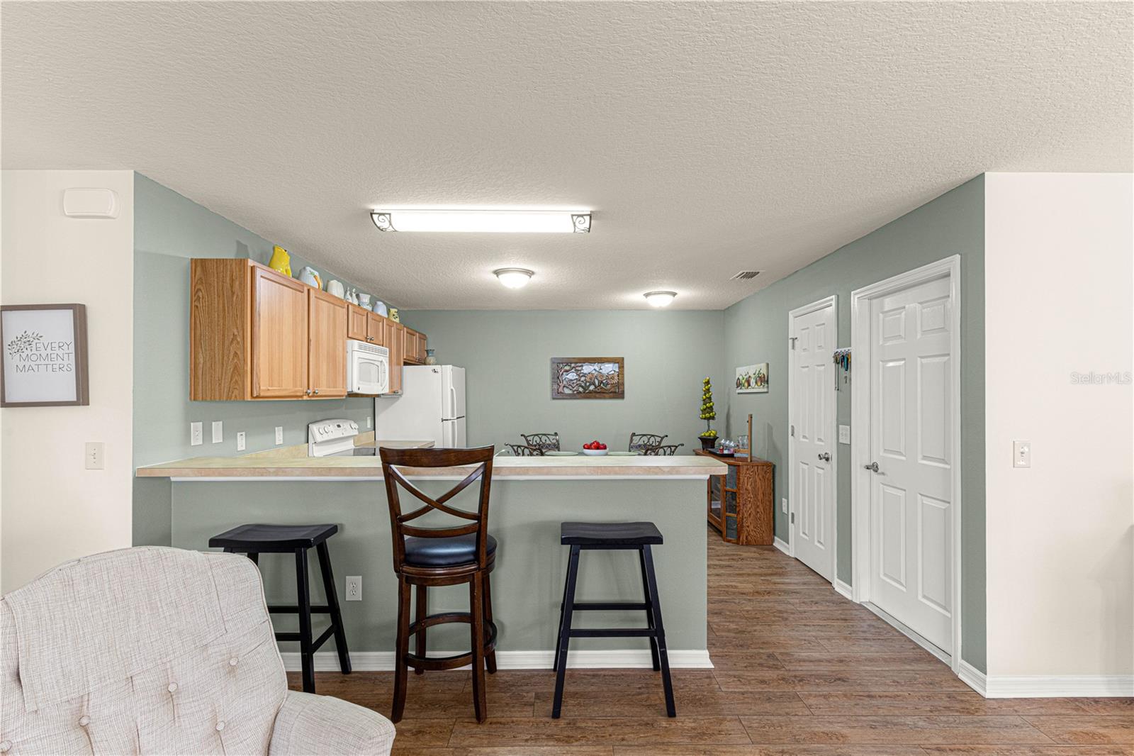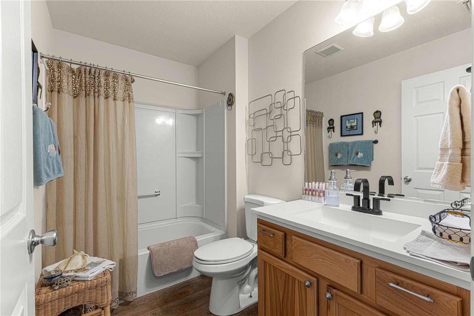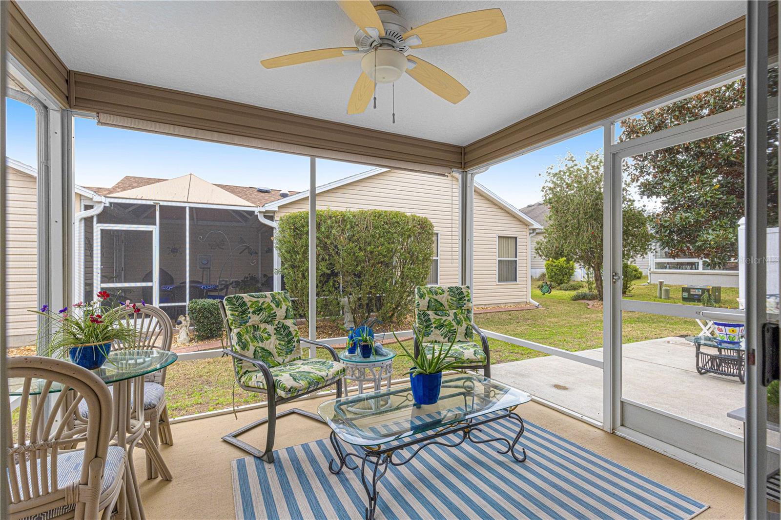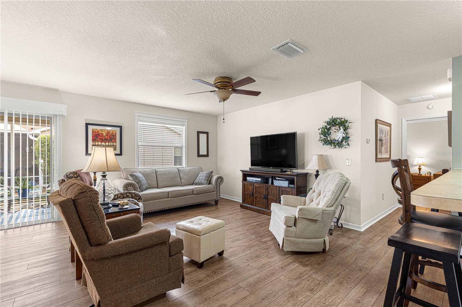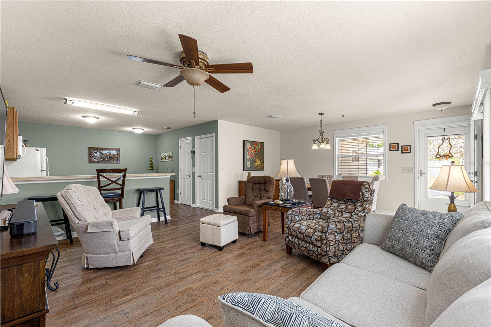 Carrinho de golfe incluído !! Bond pago !!! Esta encantadora casa de campo de dois quartos e 2 banheiros na altamente procurada vila de Amelia é uma verdadeira jóia! Ao se aproximar da casa, você é recebido por uma extensa lanai frontal com sarjetas, preparando o cenário para a beleza dentro. Entre para descobrir um piso plano aberto lindamente decorado com um novo piso de tábua de vinil de luxo por toda parte-nenhum tapete aqui! Os quadros de janelas e cornijas personalizados adicionam um toque único, aumentando o apelo da casa. O pátio lateral é um local perfeito para relaxar, com um lanai exibido e um pátio de grelha de concreto, ideal para entreter ou desfrutar de momentos tranquilos ao ar livre. Em termos de localização, esta casa não poderia ser mais perfeita. Faz a poucos minutos do Lake Sumter Landing e centralmente localizado no coração das aldeias. Além disso, é convenientemente perto da Rota 466, oferecendo fácil acesso a compras, restaurantes, entretenimento e muito mais. Esta casa realmente oferece o melhor de conforto e conveniência!