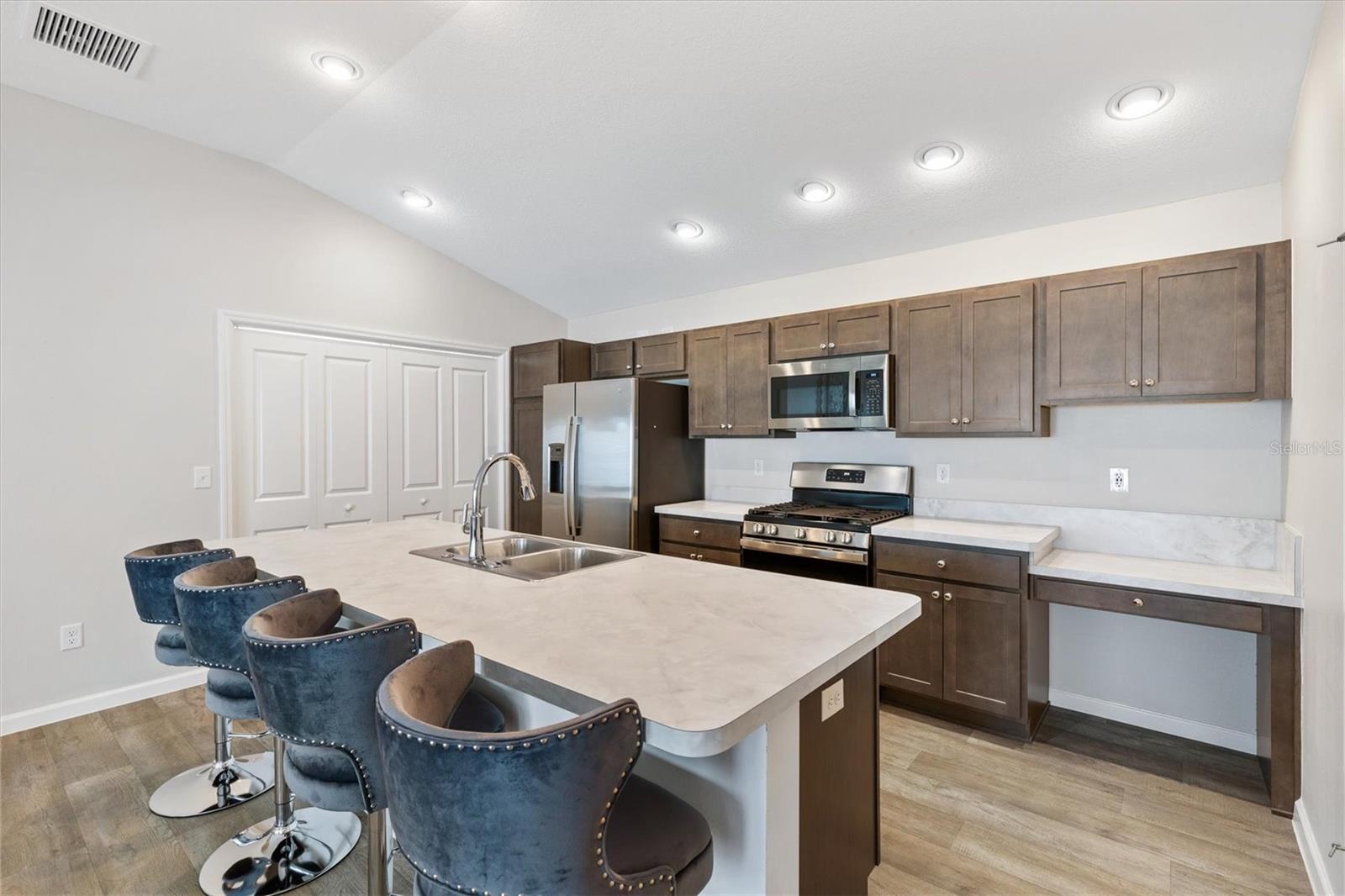 Super limpo e pronto para sua propriedade de Snowbird, primária ou de investimento. Esta villa modelo do topázio na vila de De Luna Neighbourhood! Esta casa oferece 2 quartos, 2 banheiros e uma espaçosa garagem ** de 2 carros ** e é perfeita para quem procura conforto, conveniência e estilo. Recursos adicionais: Garagem Epoxy e Sidewalk, quase totalmente turnkey, privacidade no quintal Entre para descobrir um espaço de vida brilhante e de conceito aberto, com acabamentos modernos e tons neutros que criam uma atmosfera quente e convidativa. A cozinha apresenta ** armários amplos **, bancadas elegantes de fórmica, utensílios de aço inoxidável e gás de cozinha, água quente sem tanque e uma ilha de cozinha perfeita para entretenimento. A suíte primária oferece um closet e um banho de suíte para maior privacidade, enquanto o quarto e o banheiro oferecem conforto para os visitantes. Desfrute do paisagismo atualizado que aprimora o apelo do freio da casa e retire -se para o quintal privado, perfeito para relaxar ou divertir. Parcialmente a chave na mão, esta casa está pronta para o mobiliário selecionado incluído, permitindo uma transição perfeita. Saldo de títulos $ 22.019 títulos anuais $ 1294 CDD anual $ 428