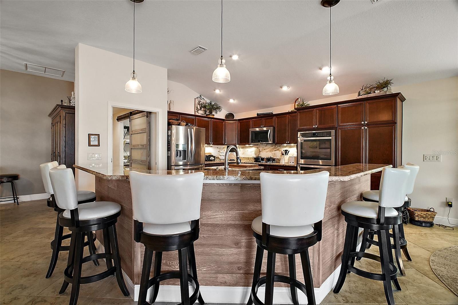 Estilo de resort Living bem em seu próprio paradisíaco no quintal - Vistas magníficas do campo de golfe executivo da Pond & Volusia !! Não há casas à vista apenas vistas (e não há caminho para carrinho de golfe atrás de casa). O Lanai expandido foi criado para entretenimento e desfrutando do estilo de vida ideal da Flórida - cozinha de verão, sala de jantar e área de estar, piscina de água salgada (calor solar e gás), incluindo características em cascata e assentos rasos com guarda -chuva e mesa. Este popular modelo de Oak Laurel Oak apresenta uma garagem extra de carrinho de 2 carros + de 2 carros (28,1 x 28,4). Adoráveis pisos de ladrilhos diagonais o cumprimentam quando você entra em casa com uma enorme planta baixa e portas de vidro deslizantes de empilhamento duplo mostrando a incrível vista que leva à piscina e à área de estar ao ar livre. A cozinha possui bancadas em granito e ilha central, armário de despensa, fornos de parede dupla, iluminação do gabinete e muito mais. A casa tem um recanto de café da manhã e uma área de jantar formal. A suíte primária apresenta closet, vaidades duplas e um grande chuveiro romano. Dois quartos espaçosos de hóspedes, ambos com armários de porta de casal e tapete aconchegante, compartilham um banheiro do segundo banheiro com um chuveiro de azulejos e uma vaidade de bancada em granito. Lavanderia grande com mesa, armários extras e pia de utilidades está convenientemente localizada entre a cozinha e a garagem. A vila de Labelle apresenta todas as atividades recreativas que você esperaria, cercado por golfe, compras e jantar no seu melhor! A piscina do bairro o cumprimenta quando você entra e vários outros estão por perto. O belo centro recreativo regional de Rohan aguarda ao sul ao longo do Morse Boulevard, com instalações de softbol e armas de ar convenientemente localizadas do outro lado da rua. O Belle Glade Country Club oferece uma experiência gastronômica única e um golfe cênico. Para as necessidades de compras diárias, a praça de compras da Colony fica a 466a!