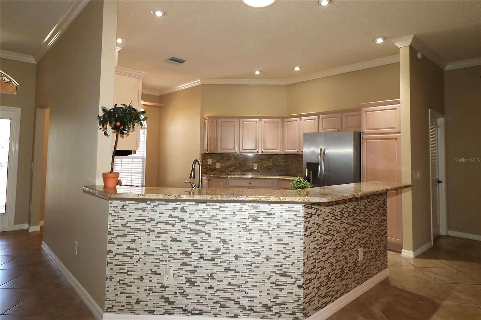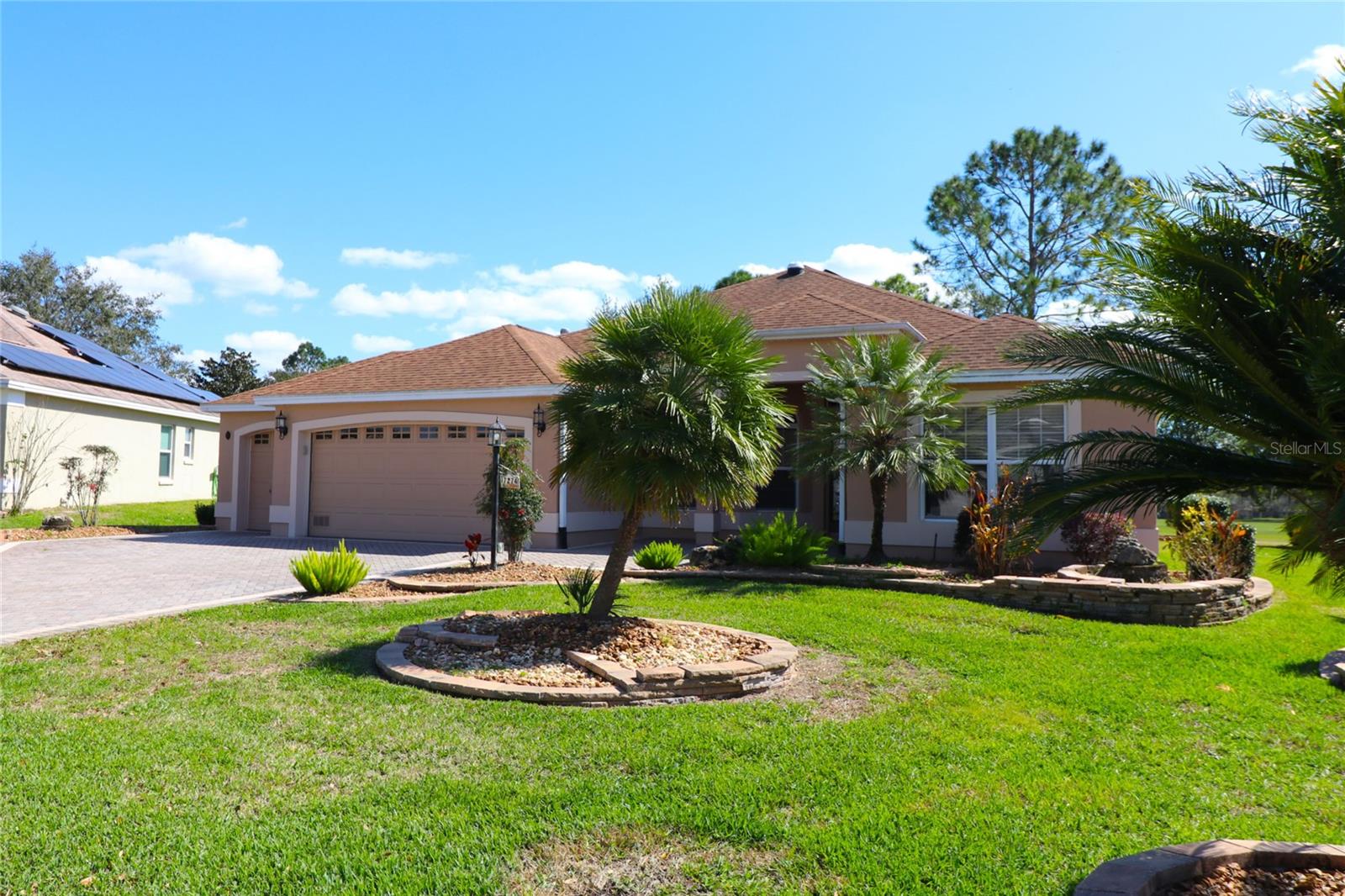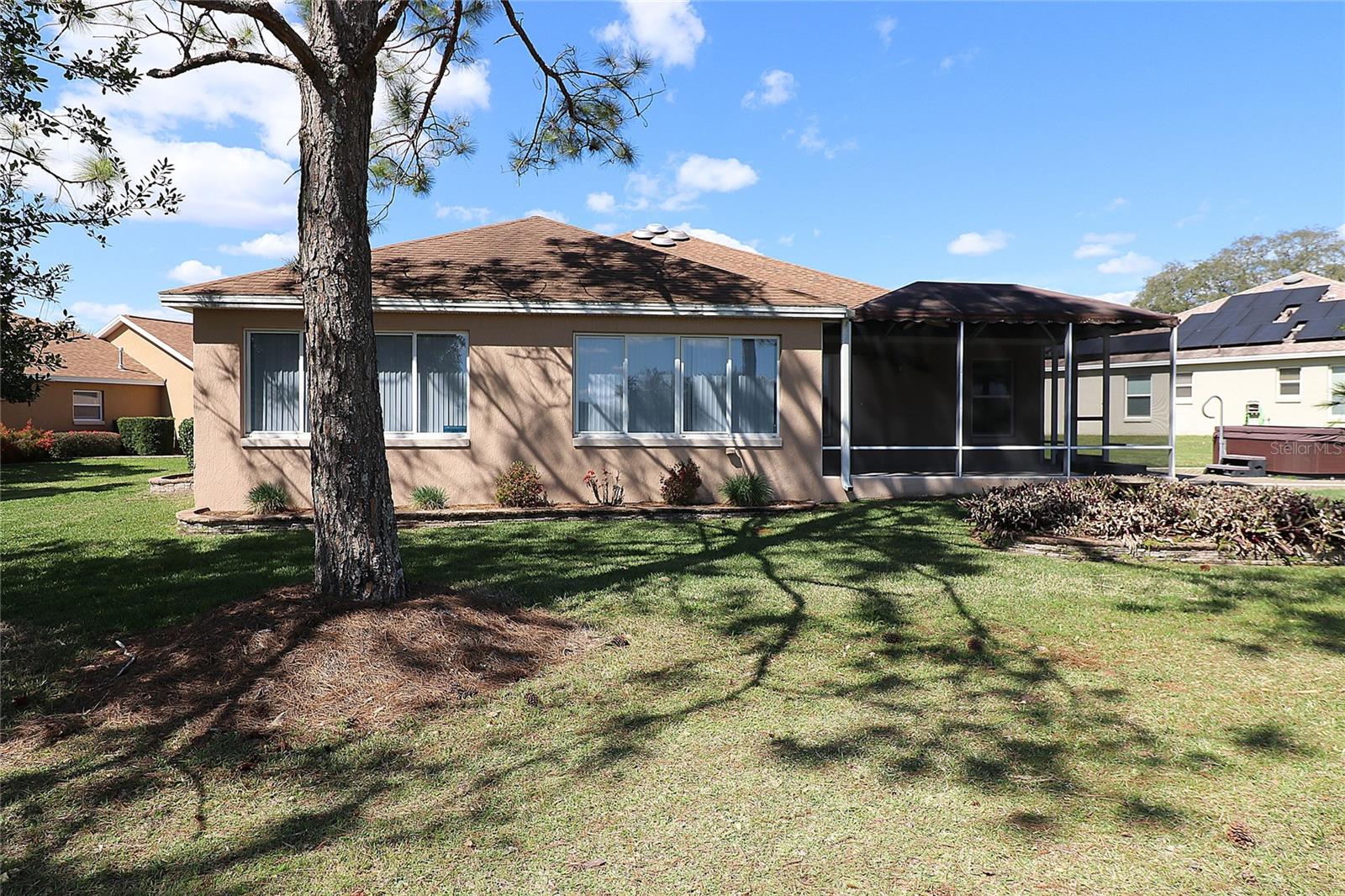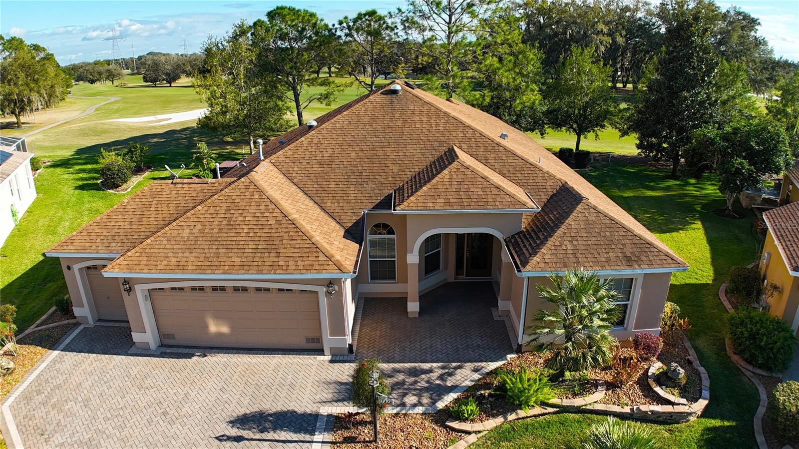 PREÇO REDUZIDO – VENHA VER AS ATUALIZAÇÕES! Interior recém-pintado e telhado totalmente novo a ser instalado antes de fechar. Esta casa Magnolia Designer 3/2 lindamente conservada (terceiro quarto perfeito como escritório ou escritório) oferece vistas deslumbrantes do campo de golfe na vila de Briar Meadow South. Construção em bloco e estuque com calçada pavimentada, garagem para 2 carros + carrinho de golfe e porta elétrica de tela. No interior, desfrute de tetos abobadados, sancas e uma espaçosa cozinha com balcões de granito, eletrodomésticos de aço inoxidável, armários extraíveis, tubo solar e grande despensa. As áreas de estar e jantar abertas levam a uma sala Florida de 540 pés quadrados com janelas de vidro com vista para o campo. Adjacente está uma varanda com toldo retrátil e uma banheira de hidromassagem incluída (no estado em que se encontra), além de espaço para adicionar uma piscina. A suíte principal privativa possui armários duplos, pia de granito, chuveiro embutido e grande armário de roupa de cama. Os quartos e banheiros são separados por uma porta de bolso para maior privacidade. Lavanderia interna com lavadora e secadora. Gás disponível. TÍTULO PAGO. Impostos: $ 5.701,05. Avaliação especial: $ 1.625,27.