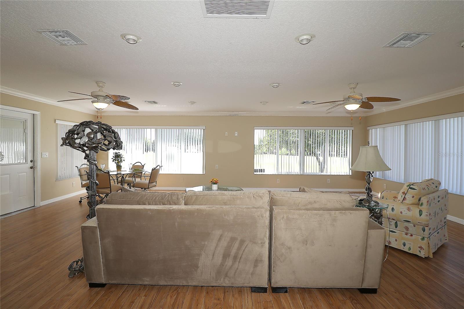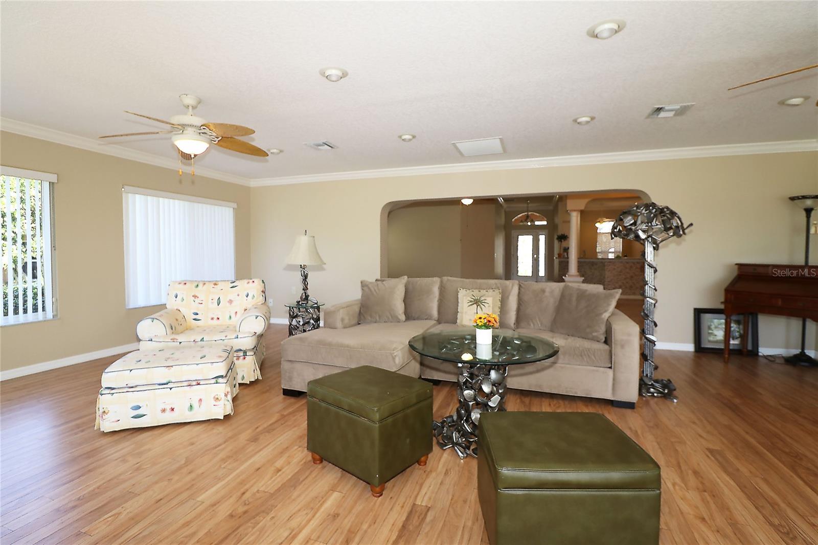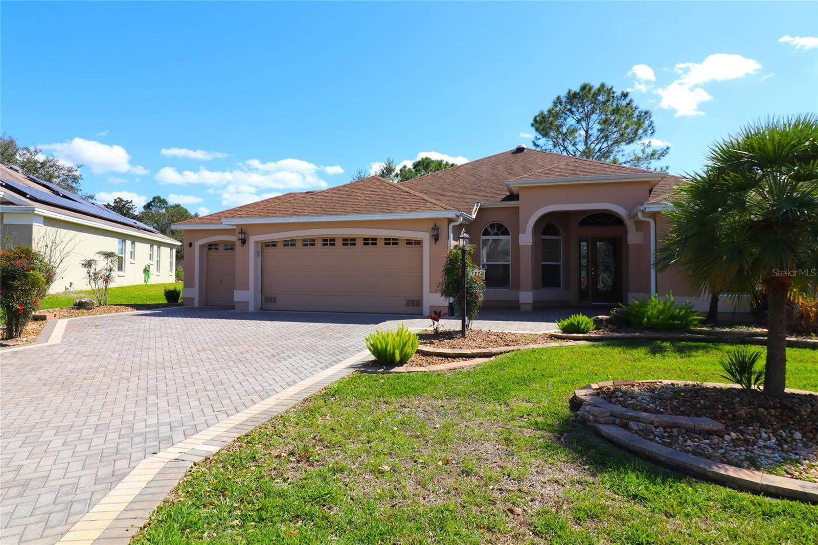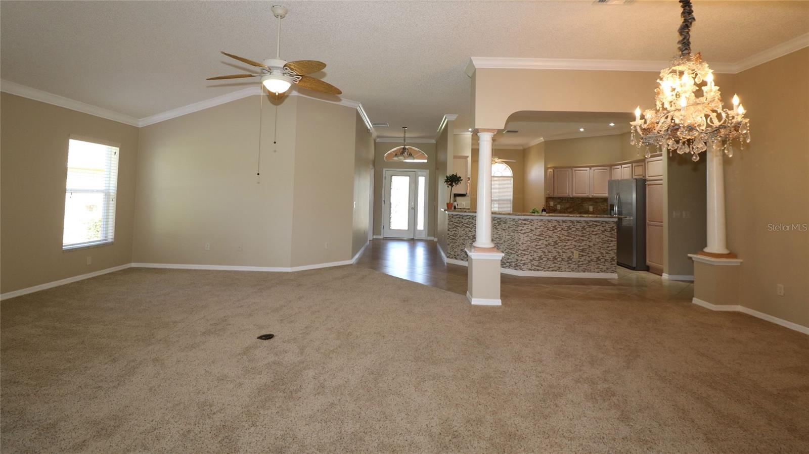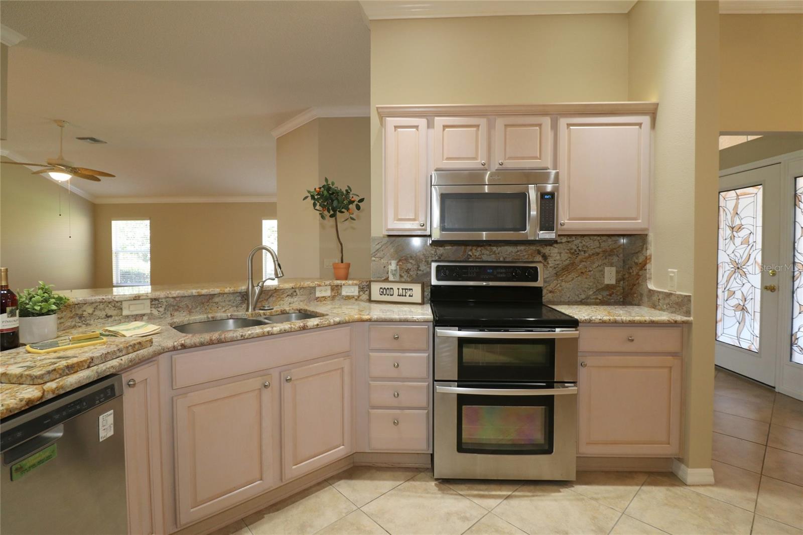 PREÇO REDUZIDO – VENHA VER AS ATUALIZAÇÕES! Interior recém-pintado e telhado totalmente novo a ser instalado antes de fechar. Esta casa Magnolia Designer 3/2 lindamente conservada (terceiro quarto perfeito como escritório ou escritório) oferece vistas deslumbrantes do campo de golfe na vila de Briar Meadow South. Construção em bloco e estuque com calçada pavimentada, garagem para 2 carros + carrinho de golfe e porta elétrica de tela. No interior, desfrute de tetos abobadados, sancas e uma espaçosa cozinha com balcões de granito, eletrodomésticos de aço inoxidável, armários extraíveis, tubo solar e grande despensa. As áreas de estar e jantar abertas levam a uma sala Florida de 540 pés quadrados com janelas de vidro com vista para o campo. Adjacente está uma varanda com toldo retrátil e uma banheira de hidromassagem incluída (no estado em que se encontra), além de espaço para adicionar uma piscina. A suíte principal privativa possui armários duplos, pia de granito, chuveiro embutido e grande armário de roupa de cama. Os quartos e banheiros são separados por uma porta de bolso para maior privacidade. Lavanderia interna com lavadora e secadora. Gás disponível. TÍTULO PAGO. Impostos: $ 5.701,05. Avaliação especial: $ 1.625,27.