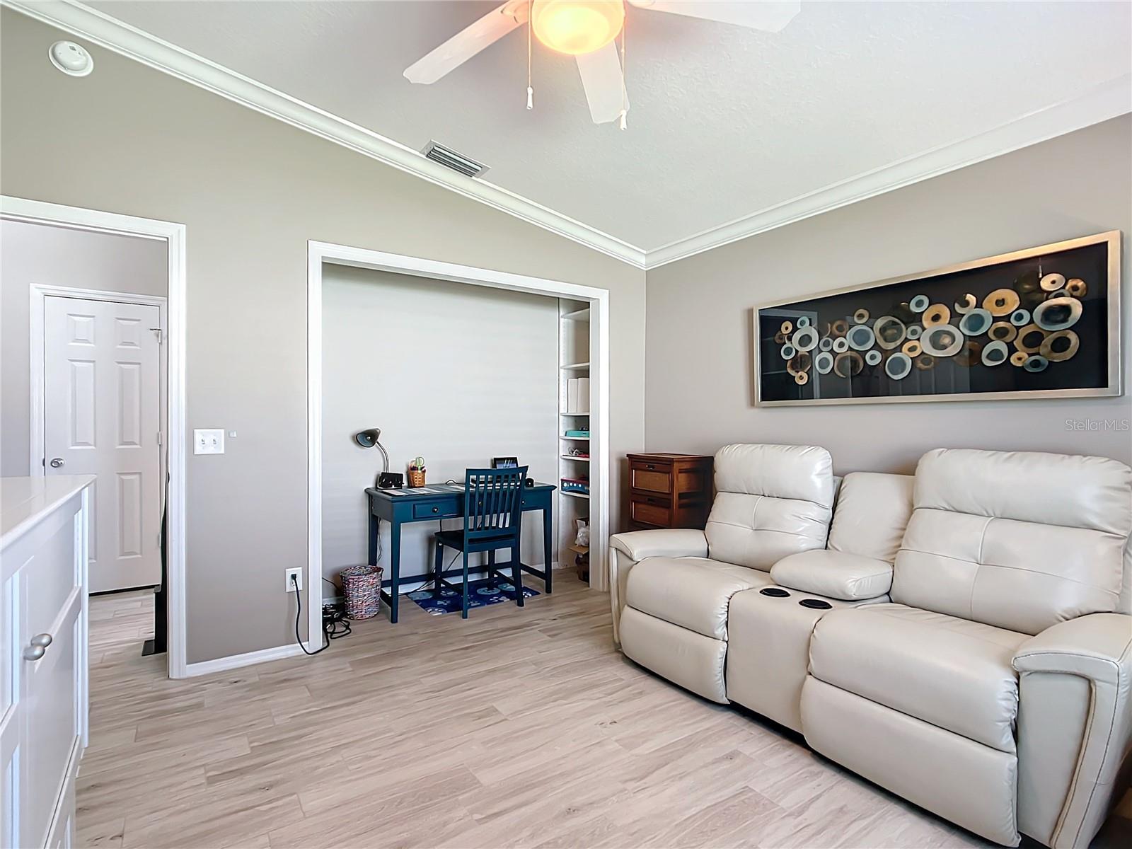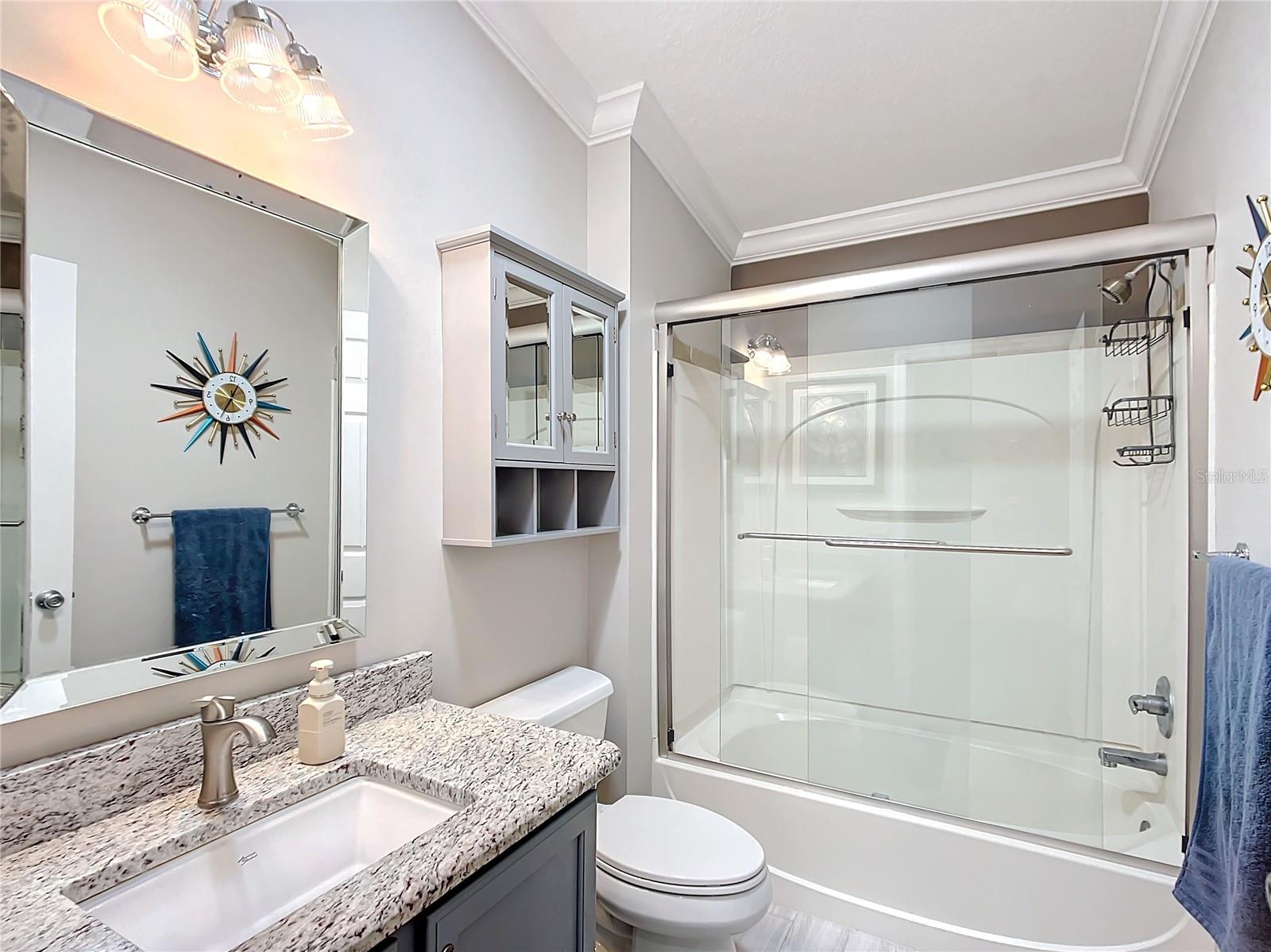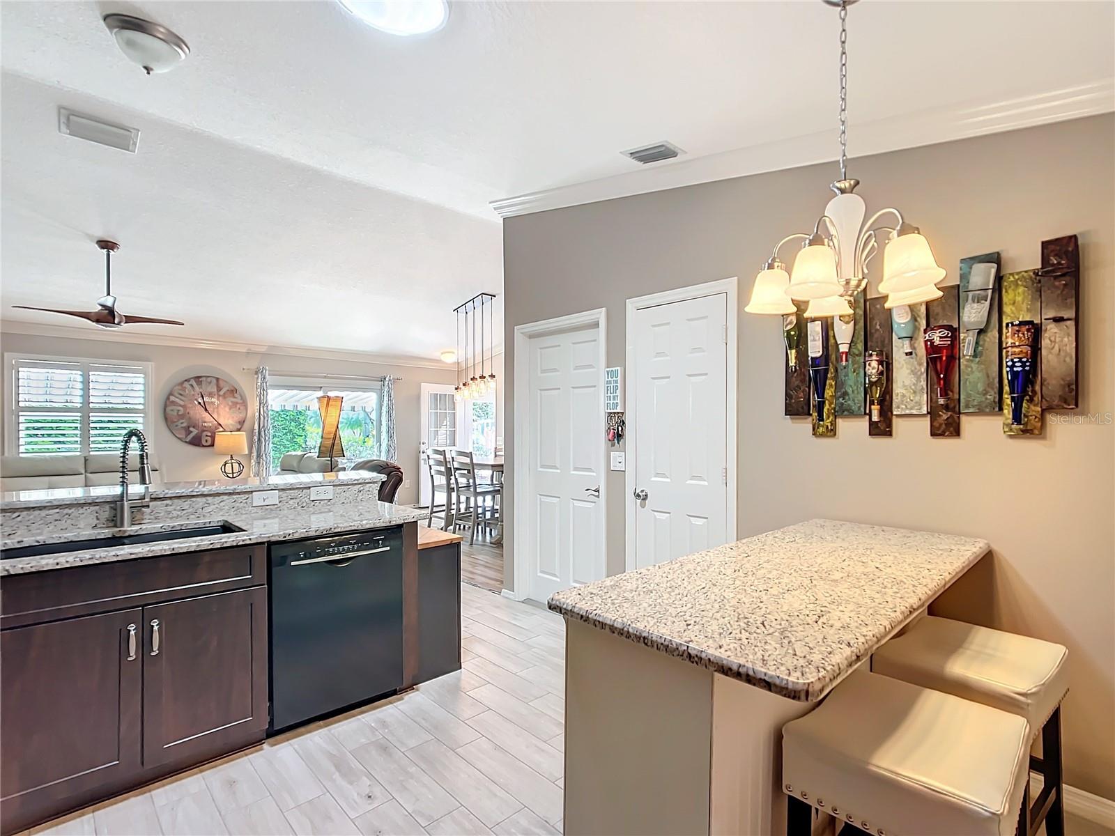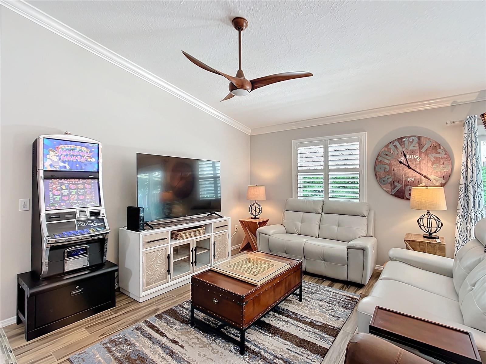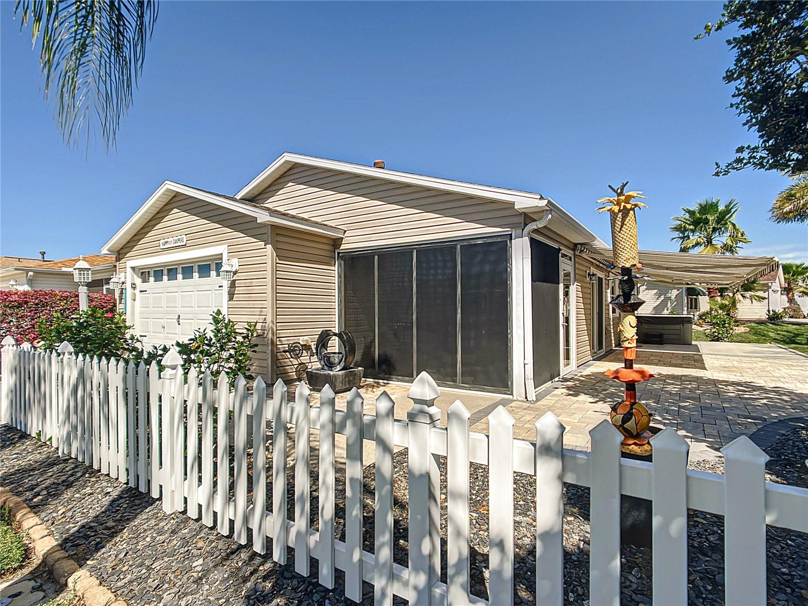 Sua nova casa com atualizações de alta qualidade, privacidade completa e tetos abobadados aguardam você na 2667 Collington Drive, localizada no coração das aldeias. Nenhuma despesa foi poupada para personalizar esta vila de pátio da colônia situada em um lote de canto de grandes dimensões com a máxima privacidade. O paisagismo exuberante em torno da propriedade oferece beleza e tranquilidade. A entrada de automóveis corada com bom gosto leva você ao Lanai, entre vidro, com portas deslizantes de vidro do chão ao teto. Ao entrar na casa, você notará o lindo piso de azulejos de madeira cerâmica por toda parte. Sua atenção será atraída para a deslumbrante cozinha aberta com uma ilha personalizada de bom gosto, bancadas de granito, armários refinados e aparelhos inoxidáveis 2021, incluindo uma máquina de lavar louça Bosch. A constante sensação brilhante e arejada desta casa se passa por todas as novas janelas e portas deslizantes do pátio (substituídas em 2024), luzes solares, tinta personalizada de Sherwin Williams, moldagem da coroa e persianas de plantações. À medida que seu foco muda para a área externa privada, você ficará imediatamente impressionado com o pátio estendido de pedra de pavimentação. Este espaço possui dois toldos elétricos de piscina e espaço para uma piscina, se desejar. Orgulho da propriedade mostra a cada passo. A suíte primária apresenta um chuveiro personalizado, uma vaidade de contra-granito e um grande armário com prateleiras adicionais. Além de ter um dos lotes mais particulares do Patio Villa nas aldeias, o título é pago, o teto foi atualizado em 2020 e a unidade CA foi substituída em 2018. Recursos adicionais desta casa incluem um sistema de água Nova, banheiros atualizados, ventiladores atualizados e luminárias, um brotador de vidros personalizado, um chuveiro de vidros. A localização privilegiada na vila de Lynnhaven tem acesso conveniente ao Lake Sumter Landing, Arnold Palmer Legends Country Club, The Villages Public Library, Instalações de Recreação, Piscinas, CR466 Varejo/Restaurantes/Escritórios e muito mais. Venha e veja essa casa meticulosamente mantida, única e pronta para mover-se e faça a sua!