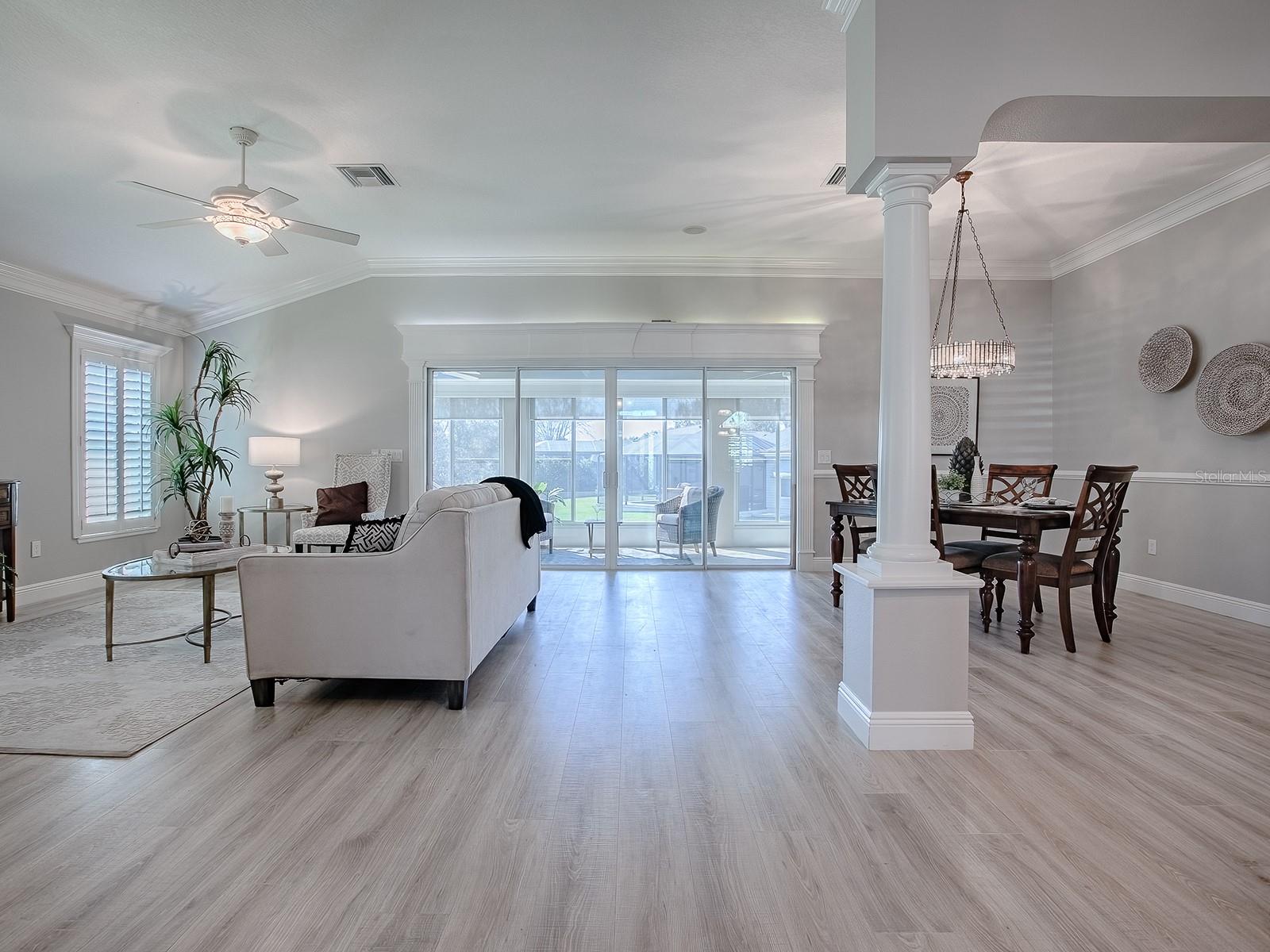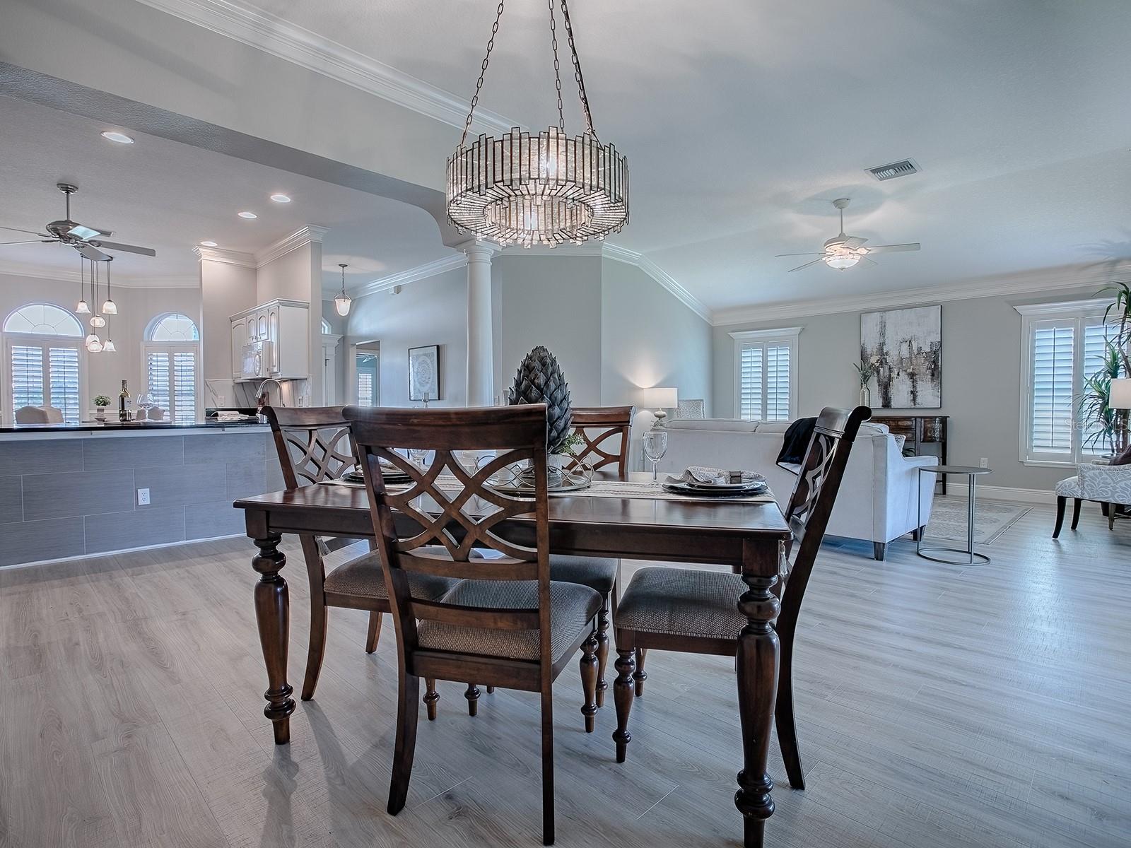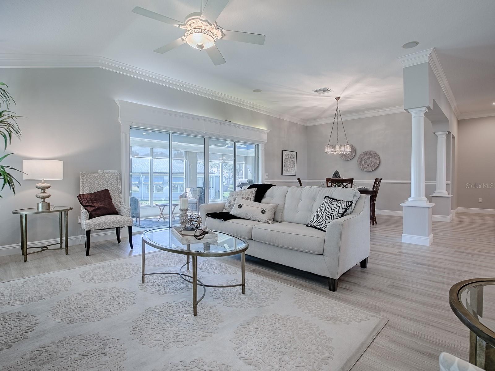 Imagine possuir um lar que realmente faz uma declaração. Esta propriedade excepcional desafia a norma dentro da comunidade encantadora das aldeias. Aninhado em meio a campos de golfe de renome, clubes de campo fabulosos e centros de recreação vibrantes, oferecem uma vida serena longe da atividade movimentada. A casa possui paisagismo maduro e uma garagem personalizada. Começaremos para trás e mencionaremos o que há de trás da casa, estaremos preparados para serem cativados pelo Lanai fechado. Apresenta um cenário pitoresco de uma encantadora lagoa de pato e a vegetação exuberante do campo de golfe. Perfeito para uma xícara de café tranquila ou uma conversa envolvente com os amigos, oferece um assento na primeira fila ao esplendor da natureza. Dentro através de uma porta de vidro com chumbo, complementada por uma luz lateral correspondente, descobre a elegância polida por toda parte. Moldagem de coroa aprimorada adorna os tetos abobadados, enquanto as persianas da plantação emolduram lindamente todas as janelas. A casa possui rodapés de cinco polegadas e um quadro, grades de cadeira e requintados cornijas de madeira e molduras ao redor da porta da frente e portas deslizantes. Os pilares decorativos delineiam sutilmente a área de jantar formal, mantendo um fluxo aberto na cozinha e nos espaços de estar, ideais para entretenimento. A cozinha possui armários de dois tons, bancadas em granito, um backsplash de mármore e uma parede de chute. Desfrute de iluminação sub-cabinete, iluminação embutida, um recanto aconchegante para refeições e um conveniente rack de vidro de vinho. Cada quarto é cuidadosamente projetado com a privacidade em mente, graças a um layout de plano dividido inteligente. Os banheiros exalam luxo, com o banheiro primário exibindo bancadas de mármore e um chuveiro personalizado, enquanto o segundo banheiro possui granito e uma pia de embarcação elegante. A praticidade também não é esquecida. A casa inclui uma garagem espaçosa com uma garagem adicional para carrinho de golfe. Atualizações -chave como o novo telhado de 2022, um sistema HVAC de 2016, um aquecedor de água 2021, tinta interior fresca, balanço de ligação muito baixo de US $ 2.600 e a inclusão de um carrinho de golfe garante que esta casa esteja pronta para você começar a explorar a comunidade vibrante imediatamente.