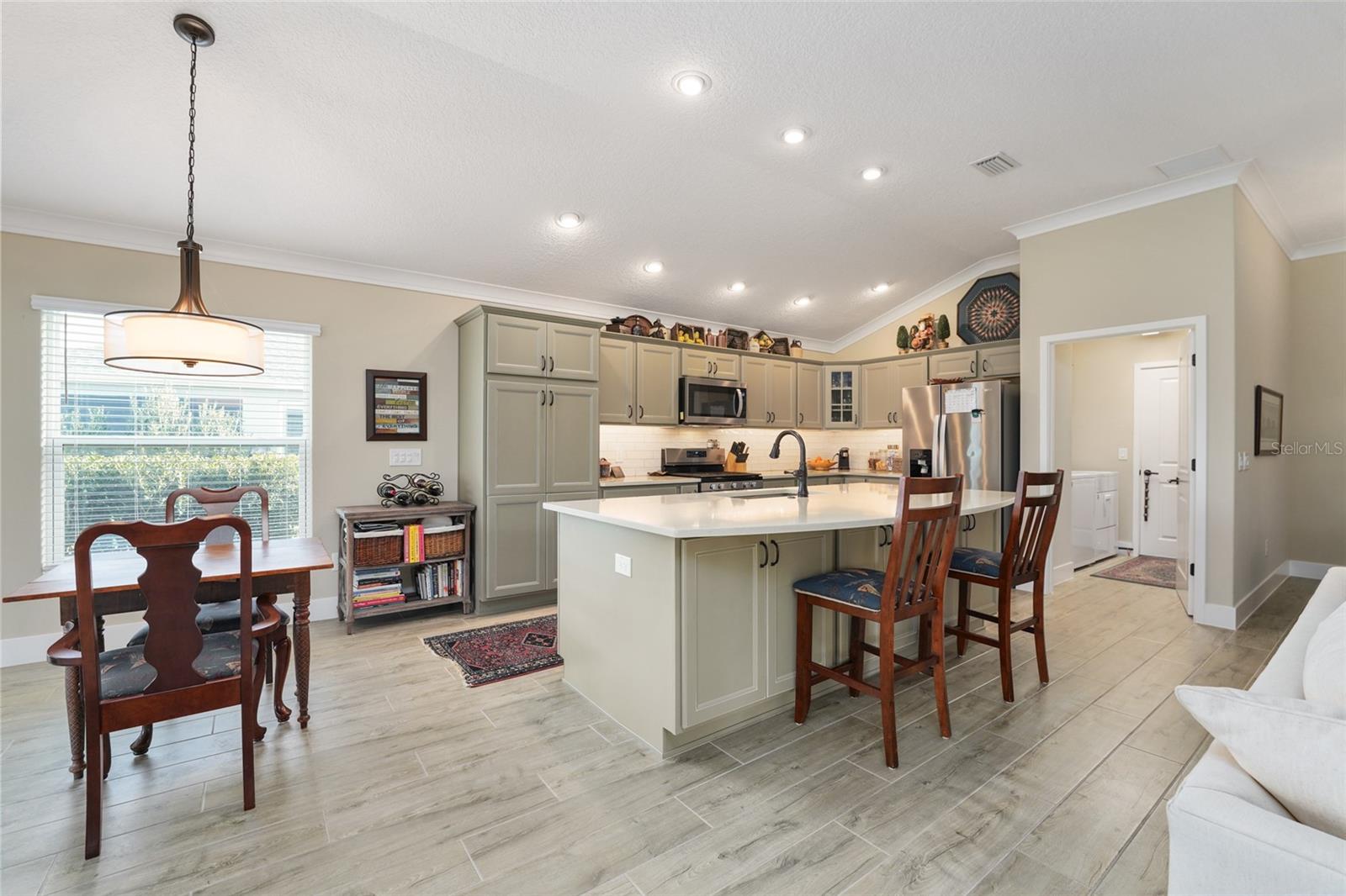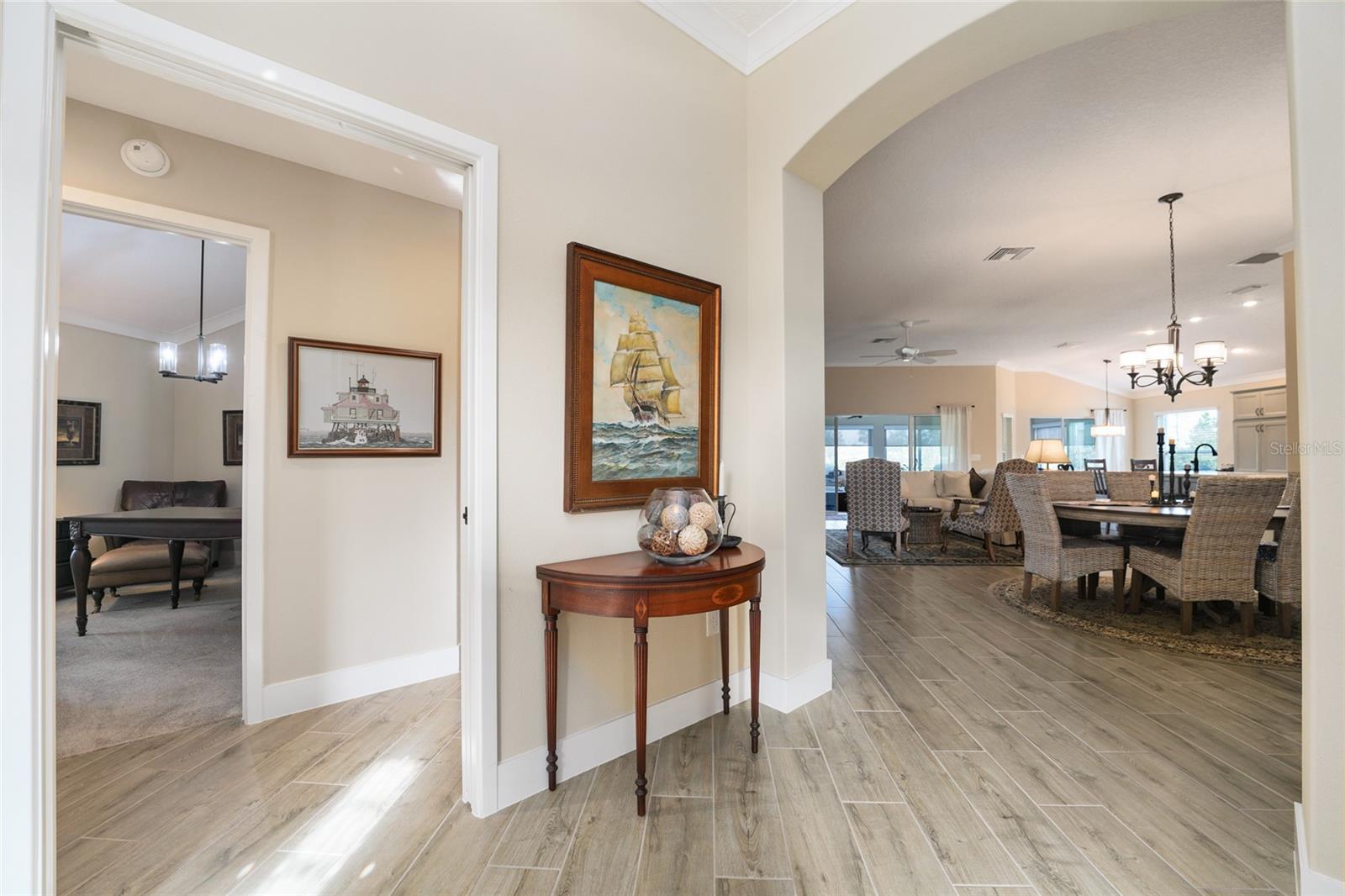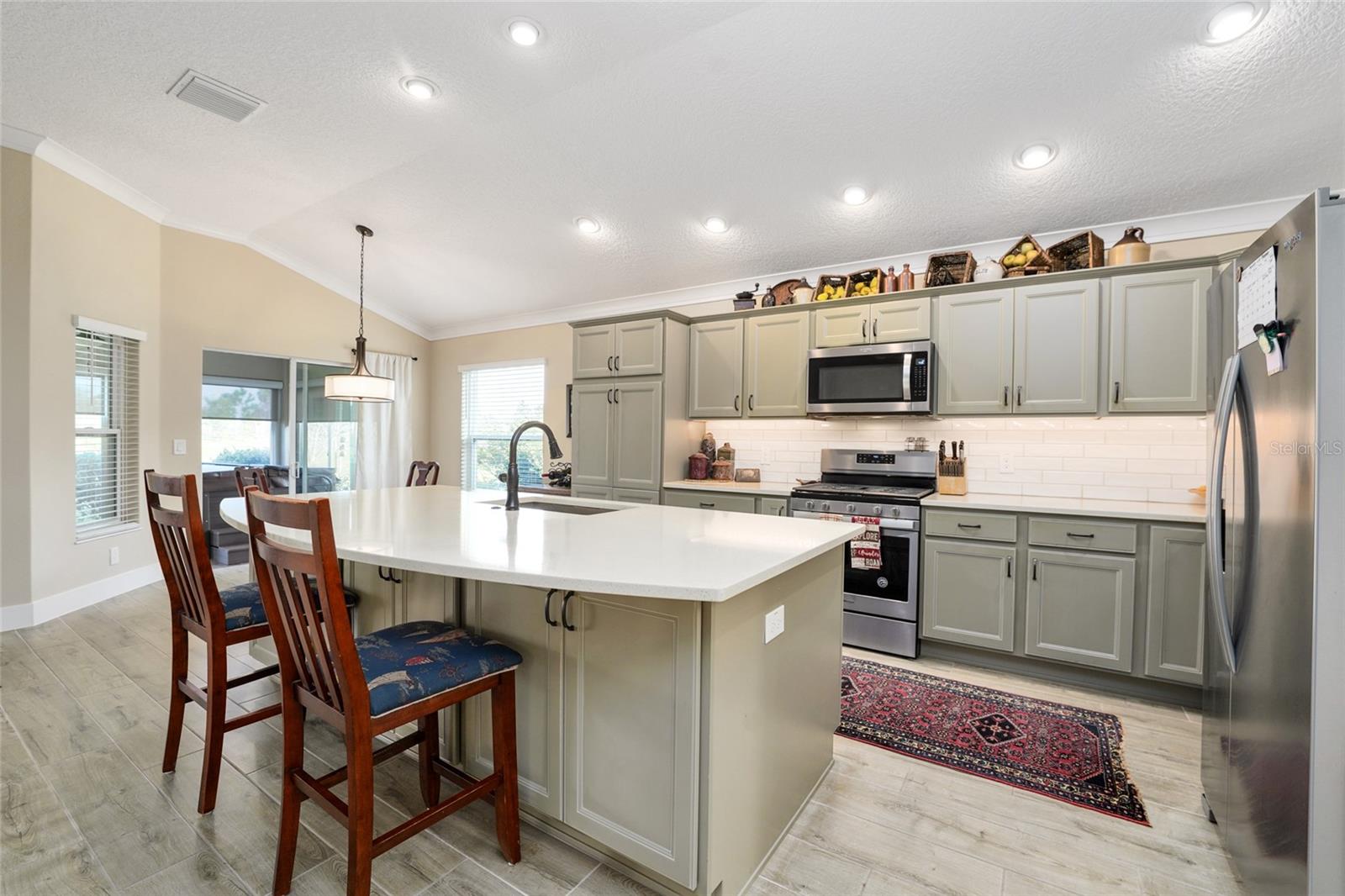 View Waterview com espaço para uma piscina nesta casa de estilista esticada na vila de McClure está pronta para seus toques pessoais. Acesso conveniente a Brownwood e Sawgrass, Eastport e Middleton. A poucos minutos do Everglades Recreation Center e do Softball Complex. A uma curta caminhada até a Magnolia Plaza, para fazer compras, bancos, refeições, combustível e muito mais. A propriedade fica entre o buraco seis e sete do curso executivo da Loblolly. Três cursos de arremesso e putt estão a uma curta distância, além de cinco cursos executivos adicionais e cursos de campeonato. Ao entrar, você se sente bem -vindo no plano de piso aberto. O trecho de um metro e meio pelas salas de estar e jantar cria uma sensação espaçosa. A luz natural flui através das duas portas de vidro deslizantes para iluminar os pisos de azulejos de granulação de madeira em todos os espaços e banheiros principais, rodapés de 6 polegadas e tetos abobadados, acentuados com molduras de coroa. A cozinha possui armários personalizados, bancadas de quartzo, utensílios de aço inoxidável, faixa de gás, backsplash de backsplash de candidatos, backsplash e um recanto de café da manhã. O espaçoso quarto principal possui um teto de bandeja com um ventilador de teto, um banheiro privativo e um grande armário. O banheiro principal tem vaidades divididas com pias de embarcação montadas nas bancadas de quartzo, na sala de vaschas e um chuveiro romano. O design do quarto dividido da casa dará privacidade aos seus convidados. O banheiro de hóspedes tem um chuveiro com porta de vidro sem moldura de 3/8 de polegada e vaidade com uma pia de embarcação nas bancadas de quartzo. Através das portas de vidro deslizante, aproveite sua varanda fechada, que está sob o ar e inclui uma banheira de hidromassagem independente. Não vamos esquecer a utilidade da casa, uma grande lavanderia e uma garagem para carrinho de golfe de 2 carros, com escadas para baixo para acessar o armazenamento de adição acima da garagem. A funcionalidade não para por aí, a casa tem as pistas da frente e de trás e um exterior recém -pintado. O HVAC, o aquecedor de água sem tanque e o telhado são todos 2019. A ligação restante é quase metade dos novos títulos de construção!
