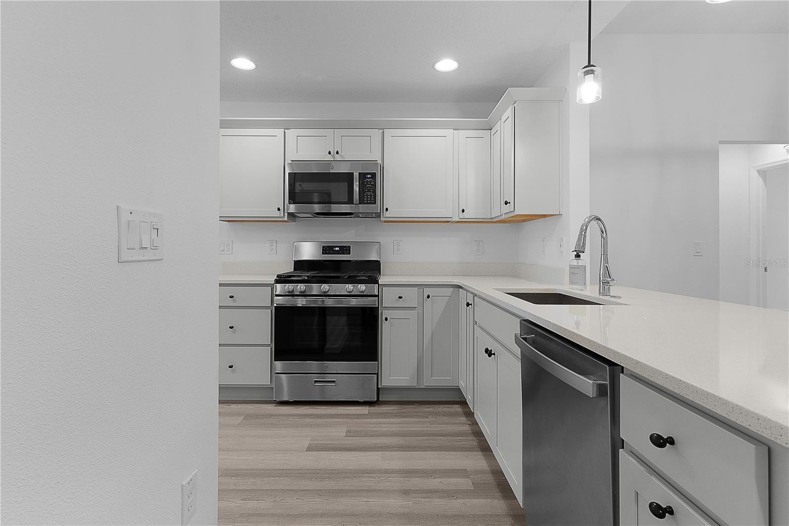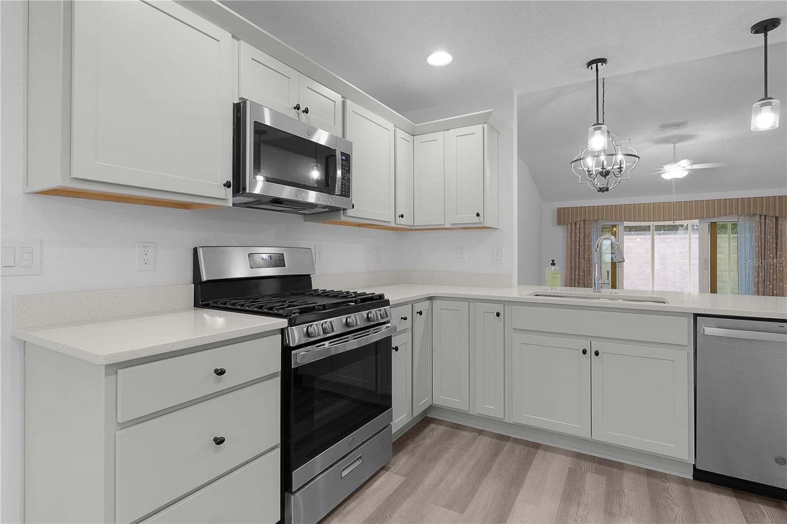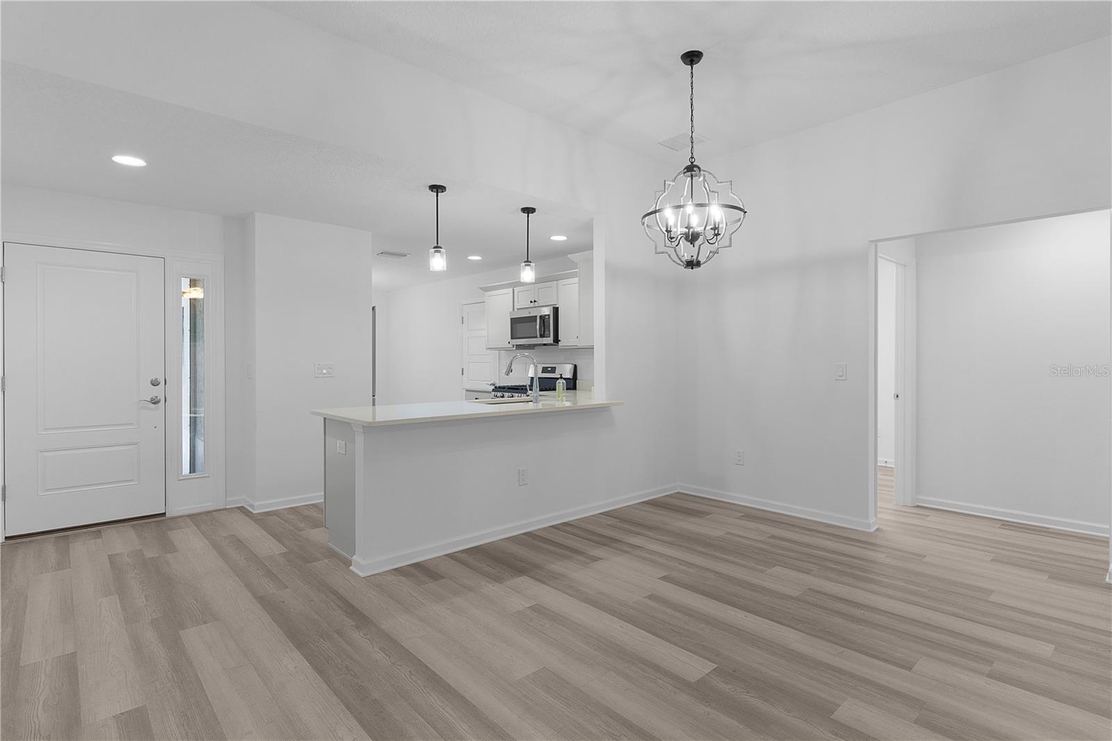 Construída em 2023, esta Eaton (Jasmine) Veranda Home oferece acabamentos modernos, bancadas de quartzo, varanda fechada, quintal CERCADO e espaço para um spa de natação! Esta casa de baixa manutenção está localizada na vila de Dabney, em Dabney Verandas East. Um foyer externo com tela lhe dá as boas-vindas, preparando o cenário para a atmosfera convidativa interna. Passe pela porta da frente com uma luz lateral para uma espaçosa planta aberta projetada para oferecer conforto e estilo. As janelas frontais têm tonalidade UV e a sala de estar possui teto abobadado, ventilador de teto iluminado, piso de vinil luxuoso e controles deslizantes empilhados que se abrem para a varanda totalmente fechada. A área de jantar possui luxuoso piso de vinil e um lustre atualizado, enquanto a cozinha é o sonho de um chef com bancadas de quartzo, balcão para café da manhã, amplos armários, eletrodomésticos de aço inoxidável e um aconchegante recanto de cozinha. Retire-se para a suíte principal, que oferece teto abobadado, closet e um elegante banheiro privativo com pias duplas e um luxuoso chuveiro romano. Dois quartos adicionais compartilham um banheiro bem equipado com uma combinação de chuveiro/banheira de azulejos. Uma espaçosa lavanderia interna oferece amplos armários, balcão, pia e armário grande para maior comodidade. Saia para desfrutar da varanda fechada com janelas com proteção UV ou relaxe no pátio coberto, com vista para seu quintal cercado privado. A área de pedra sob a gaiola ou o quintal cercado é perfeita para os amantes dos animais. A garagem tem degraus que dão acesso ao sótão para arrumos. Há também uma porta para cães da varanda fechada até a gaiola. Esta casa é a combinação perfeita de vida de baixa manutenção e privacidade! ** FECHAMENTO RÁPIDO DISPONÍVEL