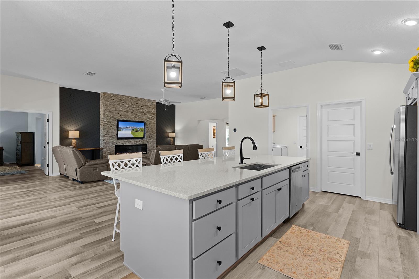 Localização serena e privada nas aldeias, aproximadamente um passeio de carrinho de golfe de 10 minutos até a mais nova praça da cidade, Eastport! Luxo, 3 BR/2-1/2BA Home com piscina de água salgada/spa. Perfeitamente situado para capturar vistas deslumbrantes de um lago tranquilo e vinhetas sem fim da vida selvagem do reservatório de água doce atrás da lagoa, esta casa é uma verdadeira obra -prima da vida moderna. Ao entrar no Lanai, você primeiro notará o piso frio do convés que possibilita andar de pés descalços, mesmo nos meses mais quentes de verão. Em seguida, observe a bela pedra travertina que revestem a piscina e o combo de spa. Também permanece legal mesmo durante os meses mais quentes do ano. A piscina está equipada com um sistema de iluminação em que você pode alterar a cor para se adequar ao seu humor. Outro detalhe fabuloso: a gaiola possui vidro da Flórida para garantir a privacidade no lanai durante o dia e à noite. Basta olhar para as vistas do pôr -do -sol e a iluminação noturna de dentro e fora do Lanai. As luzes de inundação no Lanai acrescentam um toque tão majestoso de classe. Todos os detalhes desta casa exclusiva foram cuidadosamente pensados e executados com mão de obra de qualidade. Os tetos de 10 pés em toda a casa oferecem uma vibração refrescantemente expansiva. Observe que não há carpete, todo o vinil de luxo em toda a casa. A cozinha, com sua despensa, todos os utensílios de aço inoxidável e layout da galera torna esta casa perfeita para entretenimento. Certifique-se de observar a parede da sala de estar lindamente decorada, com uma linda pedra de borda que abrange a lareira eletrônica embutida. As prateleiras de madeira natural feitas em ambos os lados da lareira transmitem com a casa O quarto principal e o banheiro são um oásis particular, incluindo bancadas de quartzo e uma vaidade sentada para se preparar para a sua noite em um dos quadrados. O chuveiro pode realmente ser enrolado com uma cadeira de rodas, se é necessário. Os dois quartos estão presos a um banheiro de Jack e Jill com uma banheira/ chuveiro de azulejo. O meio banheiro fica a poucos passos do hall de entrada, oferecendo acesso fácil para os hóspedes do jantar. A garagem de 2 carros mais carros oferece muito espaço, além de dois sistemas de filtração de água (um filtro de cartucho de 3 estágios e um amaciador de sal) para garantir água pura em toda a casa. Além disso, há uma conexão rápida e separada para um gerador, caso você precise dele durante a temporada de furacões - uma enorme vantagem! Há escadas suspensas no sótão, uma bancada fabulosa e portas de garagem isoladas também! A casa está sob vigilância da câmera anel 24/7 para sua paz de espírito. Isso é mais do que um lar - é um retiro particular, oferecendo luxo, tranquilidade e vistas sem paralelo. Não perca a chance de possuir esta jóia exclusiva à beira -mar. Agende sua turnê privada hoje!