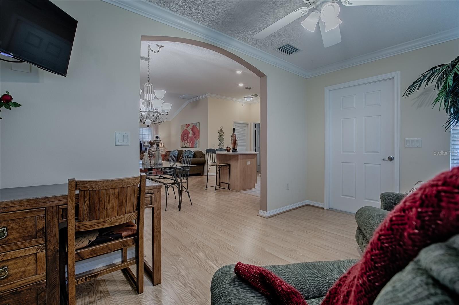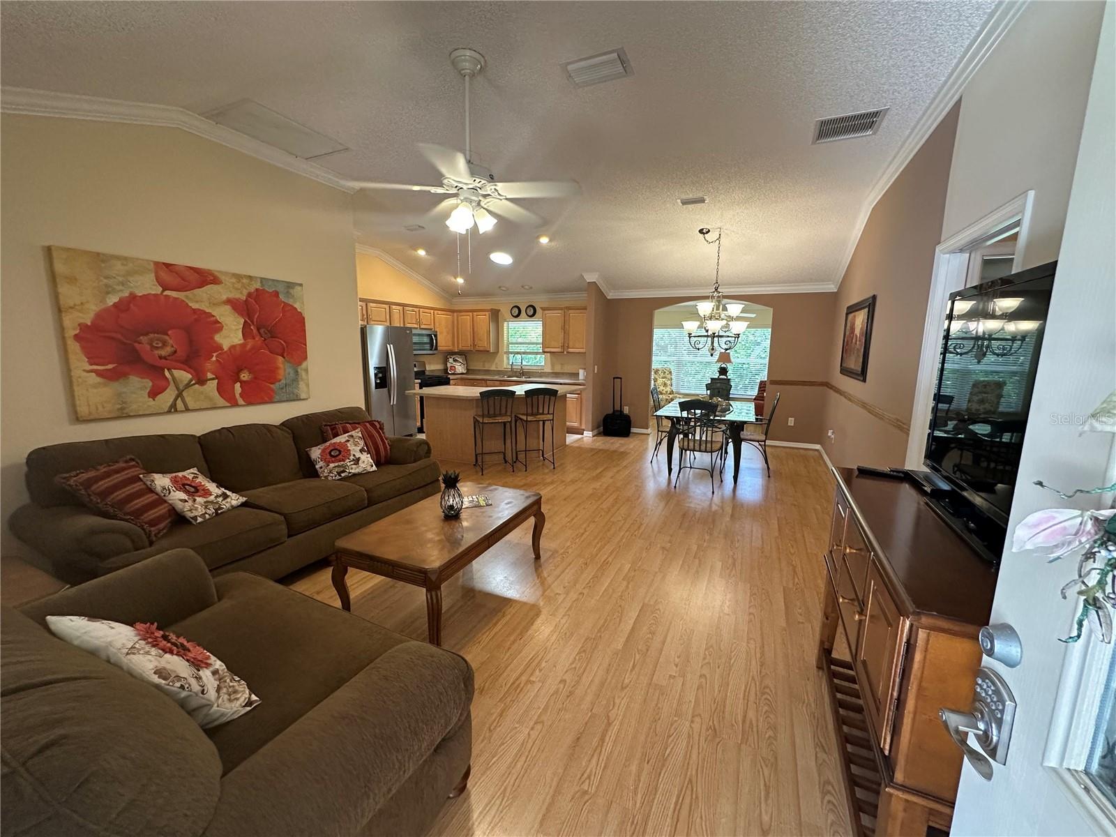 Chave na mão, carrinho de golfe incluído !!!Mova-se pronto…. A sua casa de sonho aguarda-o ou um óptimo investimento. Bem-vindo a esta deslumbrante casa Block & Stucco de 3 quartos e 2 banheiros localizada em um beco sem saída tranquilo na procurada vila de Lynnhaven. Situada em um terreno de esquina enorme com belas árvores frondosas, esta incrível residência dispõe de uma espaçosa garagem para 2 carros e uma garagem dedicada para carrinhos de golfe. Com mais de 1.600 pés quadrados, e recentemente atualizado com um NOVO TELHADO (janeiro de 2025) e NOVOS APARELHOS DE INOX (dezembro de 2024) Quando você caminha até a porta da frente, há uma área de estar na varanda da frente completa com seu próprio pátio de vime onde você pode sentar e desfrutar da paz e serenidade da área. Ao entrar, você encontrará uma planta aberta com tetos altos, sancas, piso laminado e design de quarto dividido. O interior é decorado com bom gosto, com tons quentes e neutros e uma iluminação elegante que lhe confere um toque luxuoso. A luz natural preenche a casa com três tubos solares, iluminando especialmente a lavanderia, o banheiro de hóspedes e a cozinha. A bela mobília da sala de estar faz você se sentir aquecido e confortável e com muito espaço facilita a recepção dos convidados A cozinha é destacada pela luz solar que faz com que os armários em forma de bétula com gavetas removíveis tenham um aspecto requintado. A bancada que você pode usar como balcão de café da manhã. Além disso, você poderá desfrutar do novo fogão a gás que todos parecem querer em suas casas. A suíte do proprietário inclui um terno king size com um grande closet e um banheiro privativo com pias duplas, box amplo com portas de vidro e um armário de linho para maior comodidade. Os quartos 2 e 3 também estão decorados com móveis aconchegantes e convidativos para seus convidados. E o 2º banheiro possui outra luz solar que agrega luz natural ao ambiente. À medida que avançamos para a parte de trás da casa, você encontrará aquele espaço extra que pode ser usado como escritório, escritório ou o que você quiser. Esta sala é destacada pelas janelas ao redor da sala A varanda com tela fica ao lado desta sala, onde você pode sentar e desfrutar do quintal com cerca viva de privacidade. E há um bloco de concreto fora da varanda que é usado para churrasco. Esta localização incrível fica a apenas 15 minutos do Lago Sumter Landing e Spanish Springs. Palmer Legends Country Club, campos de golfe executivos Pimlico e Churchill e centros recreativos estão a poucos minutos de distância, juntamente com restaurantes como Olive Garden, Bonefish Grill, Culvers, Dunkin e inúmeras lojas em 466. Também na área há um Publix e Fresh Market e o novo Costco. Aproveite estas comodidades próximas que ficam a poucos minutos de distância. Destaques adicionais incluem: * Fogão a gás e sistema de aquecimento *Construção de blocos e estuque * Baixo saldo de títulos abaixo de US$ 6.000 * Moldura de coroa em toda a casa *Área de estar na varanda frontal *Sebe de privacidade no quintal * Amplo terreno de esquina com lindas árvores de sombra * Calhas *Chave na mão com todos os itens que você precisa para se mudar * Lustre elegante na área de jantar Não perca a oportunidade de ver esta casa chave na mão bem conservada. Ligue-nos hoje para sua exibição privada