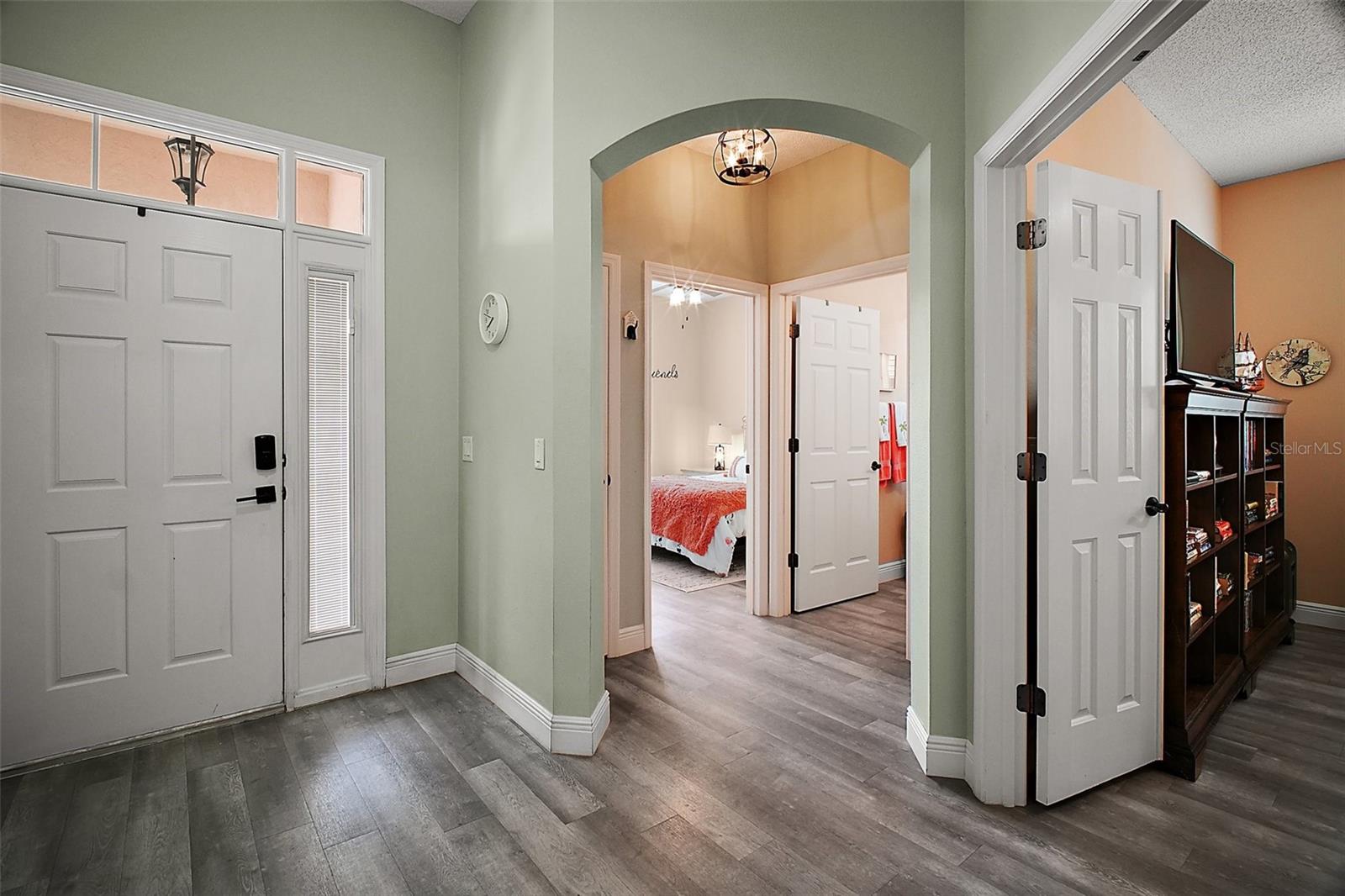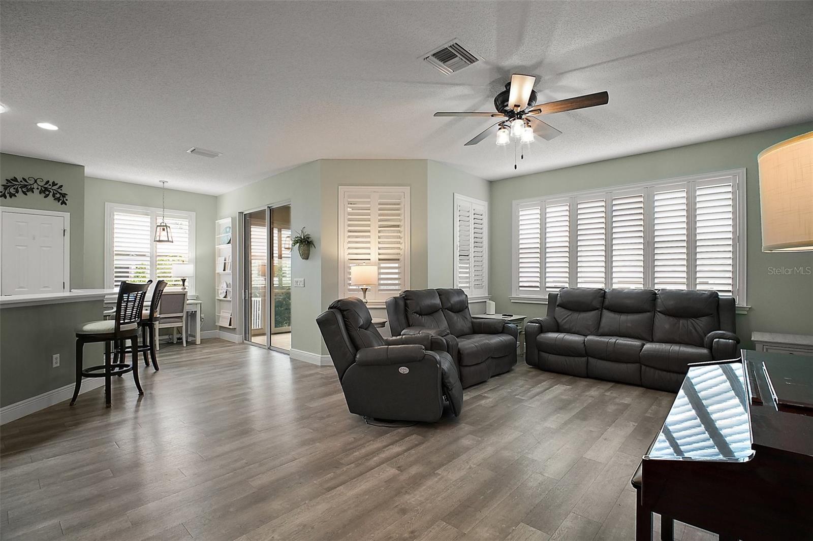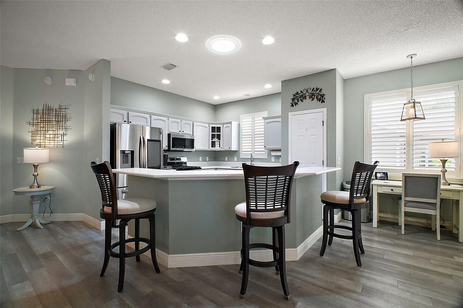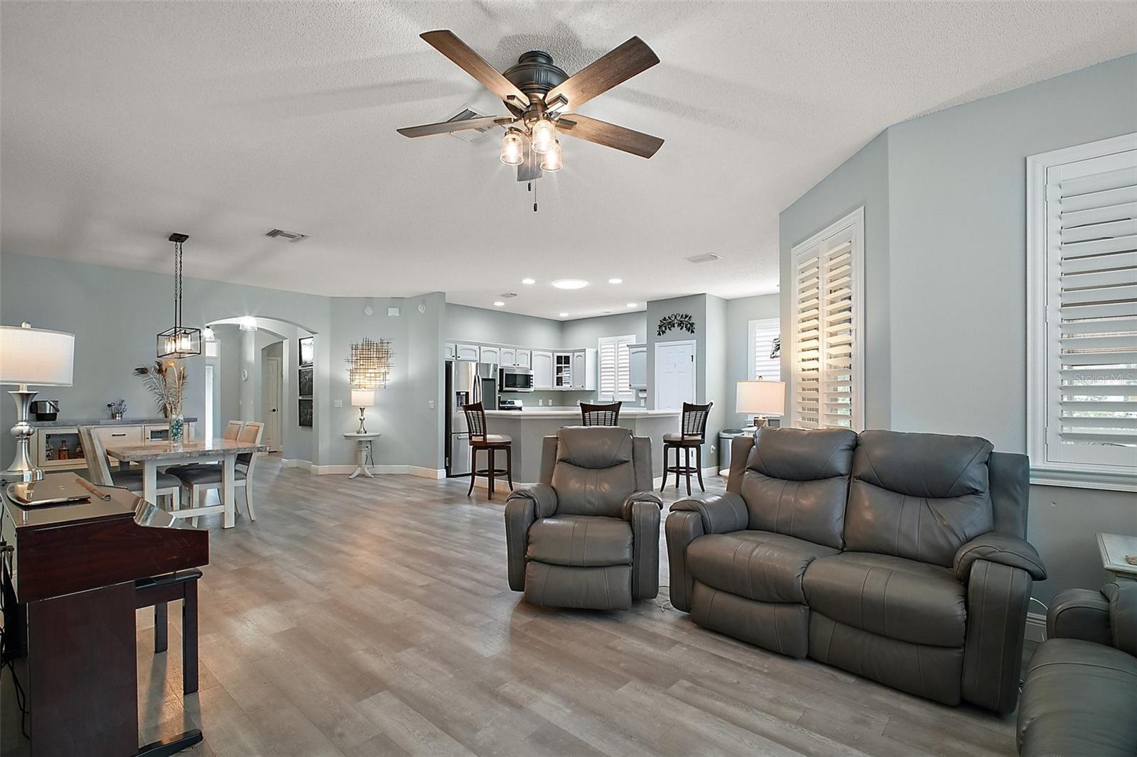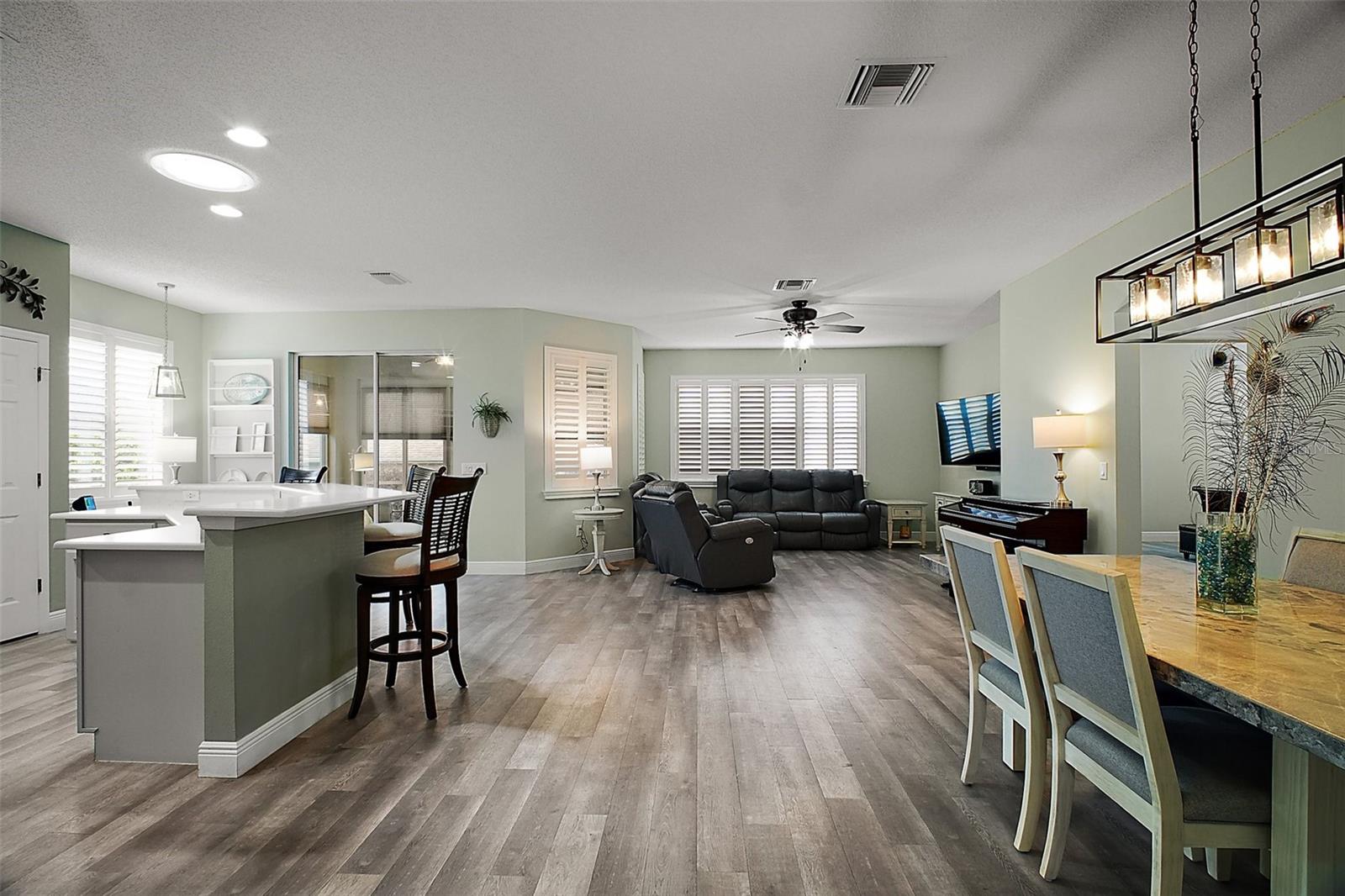 Bond pago! Modelo de Somerset deslumbrante e turno com garagem para carrinho de golfe - a poucos minutos do Lake Sumter Landing! Esta casa de alta qualidade e chave na mão é carregada com atualizações, incluindo pisos de vinil de luxo, persianas de plantações e rodapés altos por toda parte. Sem tapete! Todos os acessórios foram atualizados em 2023. A cozinha possui uma gama de gás inteligente e geladeira inteligente (2022), bancadas de quartzo com aparência de mármore e um tubo solar para luz natural. A espaçosa sala de jantar e estar é perfeita para entretenimento. Aproveite o quarto fechado da Flórida com persianas personalizadas-excelente para o café da manhã ou a noite do jogo. A expansiva suíte primária oferece um armário personalizado (2023), vaidades duplas, chuveiro espaçoso, armário de água privado e armário de linho. O quarto de hóspedes é brilhante e totalmente mobiliado. O terceiro quarto/covil possui portas francesas, um sofá -cama e mesa (sem armário). A lavanderia interna inclui armários amplos, uma pia de lavanderia e aparelhos. A grande garagem expandida possui uma garagem para carrinho de golfe, portas com classificação de tempestades (2022), escadas no sótão puxadas e excelente armazenamento. Principais atualizações: telhado (2021), hvac (2023), aquecedor de água sem tanque (2022), portas de garagem (2022). Apenas um rápido passeio de carrinho de golfe para vários campos de golfe. Ligue hoje para sua exibição particular. Bem -vindo para casa!