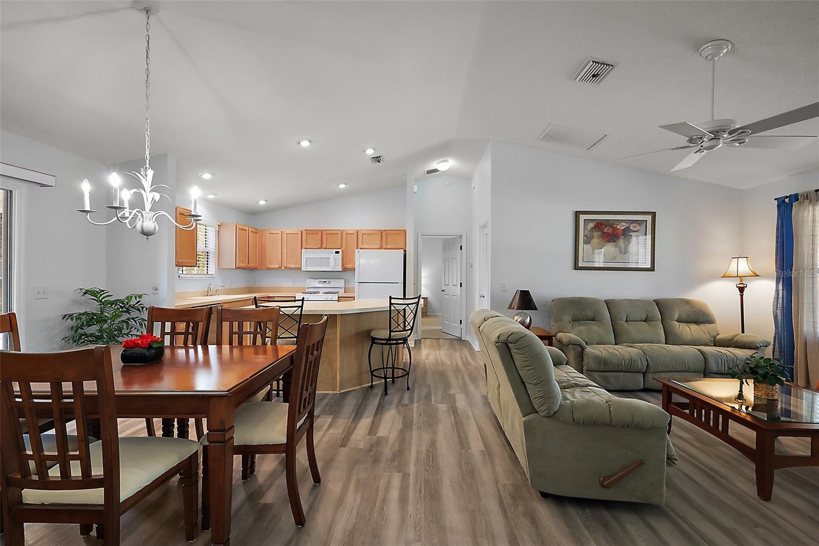 Fantástico e turnkey 3/2 Amarillo com Lanai fechado em um grande lote de canto, com lindos paisagismo maduro, a poucos minutos para o Lake Sumter Landing e todas as conveniências da estrada do condado 466 na altamente procurada vila de Lynnhaven !!! Ao se aproximar desta linda casa, você será recebido por uma varanda encantadora e um espaçoso pátio de pavimentação perfeito para desfrutar do bom clima da Flórida, garantindo amplo espaço ao ar livre para entretenimento! Entre pela elegante porta de vidro com chumbo e descubra uma espetacular piso de conceito aberto que possui tetos abobadados e lindo piso de tábua de vinil de luxo. Da sala de jantar, as portas de vidro deslizantes se abrem para o Lanai fechado, com pisos de azulejos elegantes e um pátio de grelhar ao ar livre adjacente - perfeito para hospedar amigos e familiares! A incrível cozinha possui tons neutros, armários de bordo lindos com prateleiras de tração, alcance de gás e uma ilha central de tamanho generoso com assentos de contra-altura. O quarto principal oferece um grande closet e um banheiro elegante e elegante, com adoráveis armários de bordo, chuveiro e armário de linho. Projetado para privacidade, a planta baixa cria uma asa de hóspedes separada com dois quartos adicionais, cada um com armários embutidos. O quarto traseiro também oferece uma porta que fornece aos hóspedes fácil acesso ao lanai fechado. O segundo banheiro é cuidadosamente designado com armários de bordo, uma combinação conveniente de banheira e chuveiro, armário de linho e armário de linho adicional para armazenamento adicional. Uma lavanderia interior com armários adicionais fornece funcionalidade e conveniência. Diretamente da lavanderia, você encontrará uma espaçosa garagem de dois carros, oferecendo uma pia de utilidade, armários de armazenamento e prateleiras e um acesso do sótão com escadas. Não perca a oportunidade de tornar este próprio lar incrível !!! A vila de Lynnhaven está convenientemente localizada a poucos minutos do Lake Sumter Landing e 466 com uma abundância de lojas (incluindo o novo Costco, restaurantes, bancos, médico e muito mais! Perto do campo de golfe executivo de Churchill Greens, Palmer Legends Country Club; Centros de Recreação Pimlico e Churchill; várias piscinas, golfe e bola de picles; Por favor, assista ao nosso vídeo a passo a passo desta incrível casa em casa e ligue hoje para agendar sua exibição particular ou turnê virtual!