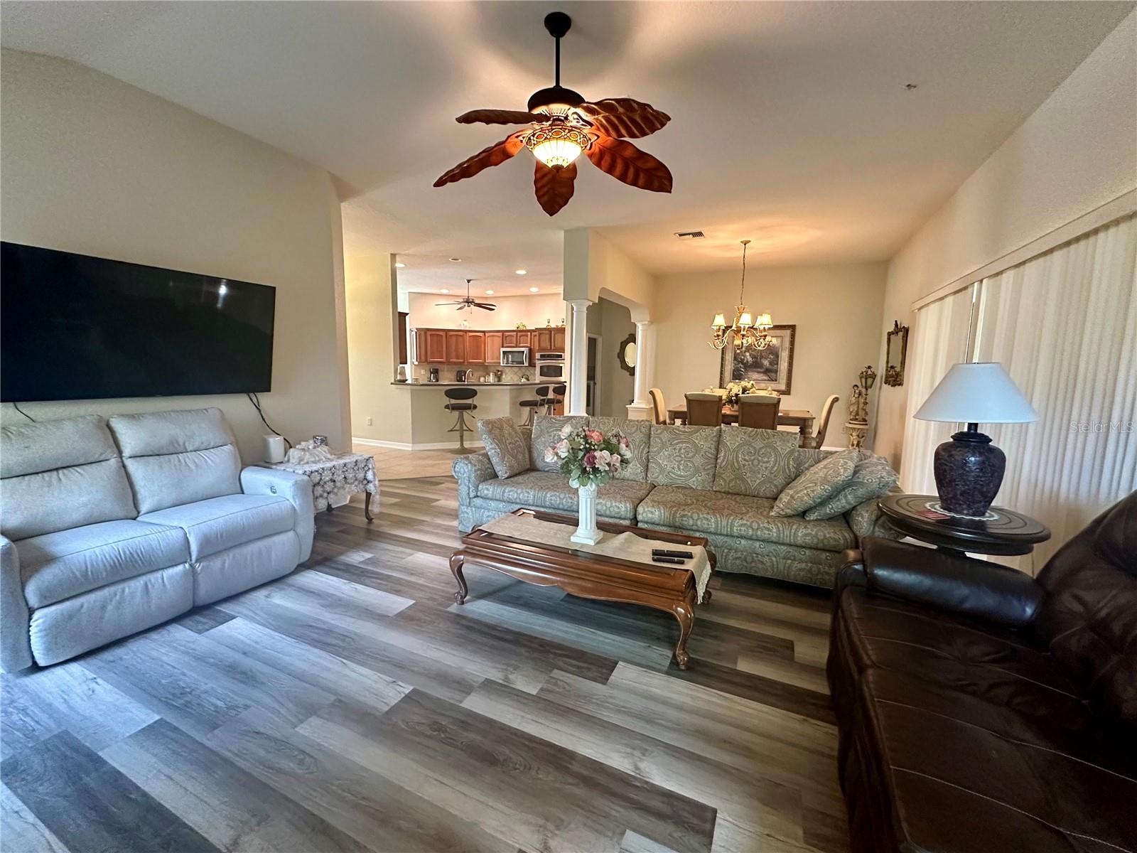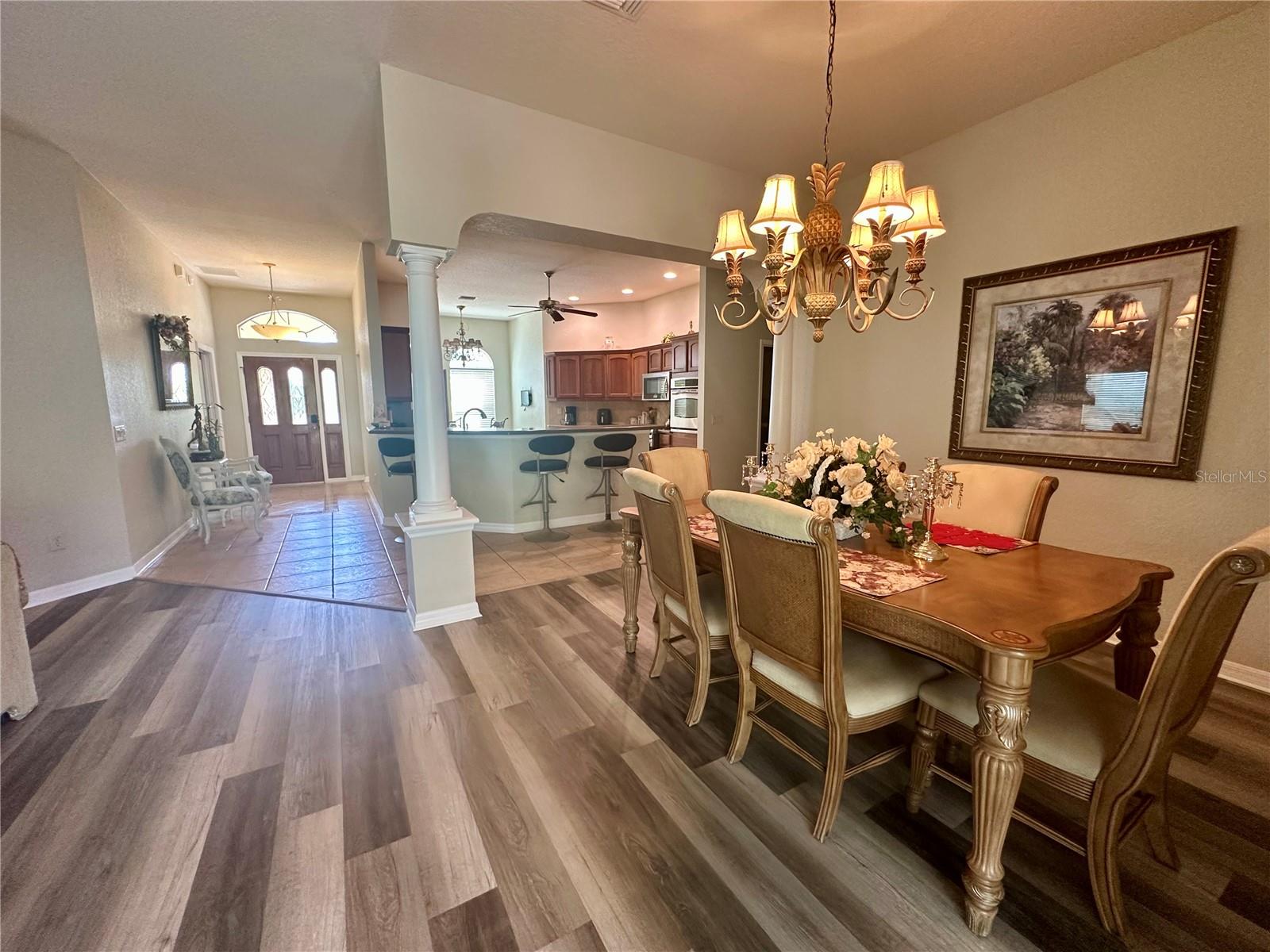 Bem -vindo à sua nova casa, a casa da Gardenia Designer, projetada com uma mistura perfeita de elegância, funcionalidade e vida ao ar livre, esta propriedade é uma verdadeira jóia para quem procura um estilo de vida luxuoso e confortável. A bela entrada levará a uma espaçosa sala de estar adornada com tetos altos e piso elegante LVP. A cozinha é uma delícia de chef com armários atualizados, bancadas lindas, utensílios de aço inoxidável, cozinha a gás e pisos elegantes de telha e balcões de barra de cozinha acolhedores, luz natural inunda a casa, graças a grandes janelas estrategicamente colocadas por toda parte, com persianas para inicializar! O quarto principal oferece um retiro sereno com seus próprios tetos altos, ventilador de teto e caminhar em armários que se conectam a um luxuoso banheiro privativo, completo com elegante vanguarda, pias duplas, área de maquiagem e um chuveiro com um banco no chuveiro, acrescentando um toque agradável de conforto e conveniência. A planta dividida localiza dois quartos adicionais atrás de uma porta de bolso do outro lado da casa, oferecendo muito espaço para a família ou os hóspedes. Um desses quartos apresenta uma cama de parede Murphy embutida com prateleiras laterais, ideal para maximizar o espaço e a funcionalidade. O segundo banheiro inclui uma combinação de banheira/chuveiro de hidromassagem no banho de hóspedes. Para relaxamento e entretenimento, um lanai fechado apresenta piso de ladrilhos e um ventilador de teto. Do lado de fora, uma lagoa tímida iluminada cercada por uma paisagem madura, oferecendo um local perfeito para reuniões ao ar livre ou momentos pacíficos de solidão. Esta casa não é apenas lindamente decorada, mas também inclui características práticas, como uma espaçosa garagem de 2 carros, uma lavanderia com uma pia de utilidade e armários adicionais para todas as suas necessidades de armazenamento. Esta impressionante casa de designers tem uma localização excelente entre dois pousos mais desejáveis de Sumter e quadrados de brownwood e está localizado em um beco sem saco com uma grande parede de privacidade. Novo telhado 2022, novo aquecedor de água quente sem tanque 2021 e novo AC 2018. Sem carpete, bancadas atualizadas, além de ventiladores de teto em toda a casa e lanai, lareira a gás, gama de gás e secador, aquecedor de água quente a gás sem tanques. Construção de blocos de concreto para reduzir o calor e os custos de A/C, além de uma garagem de grandes dimensões e um quintal super particular! A vila de Poinciana fica ao sul de Lake Sumter, com dois centros de recreação da aldeia por perto - Allamanda Recreation Center e Hibiscus Recreation Center - localizados em frente ao The Cane Garden Country Club. A Cane Garden possui um restaurante popular (com forno de pizza), uma loja profissional bem equipada para os fãs de golfe do bairro e 27 buracos de um desafio de golfe no campeonato nos cursos Jacaranda, Hibiscus e Allamanda. Sem vínculo! Turnkey com um carrinho de golfe a gás Yamaha incluído! Ligue hoje e faça com que seja sua casa para sempre !!!!
