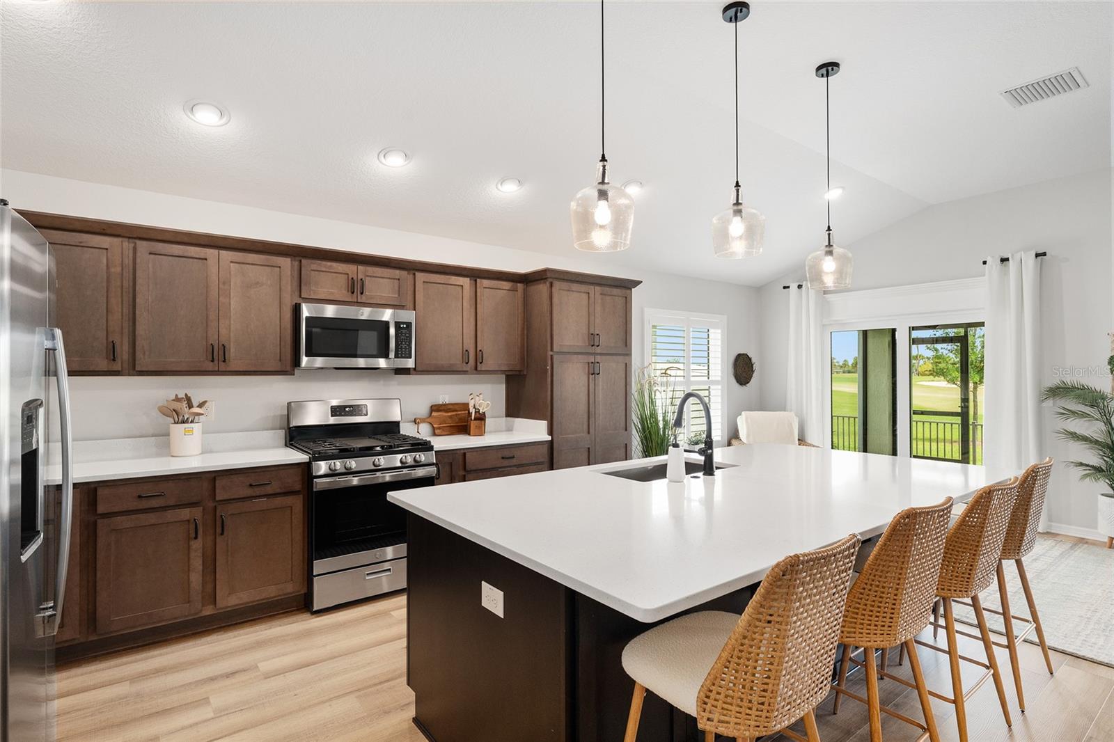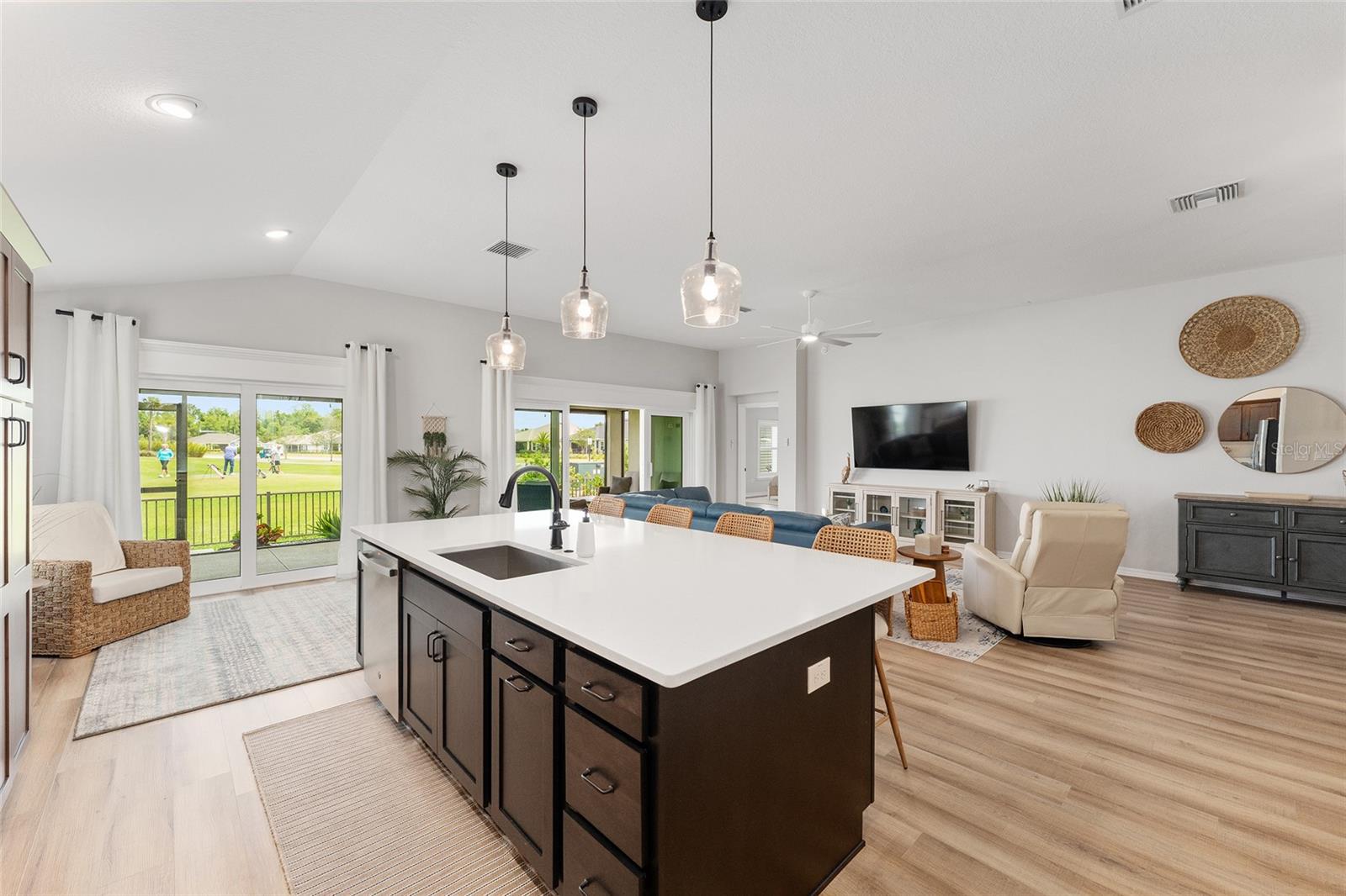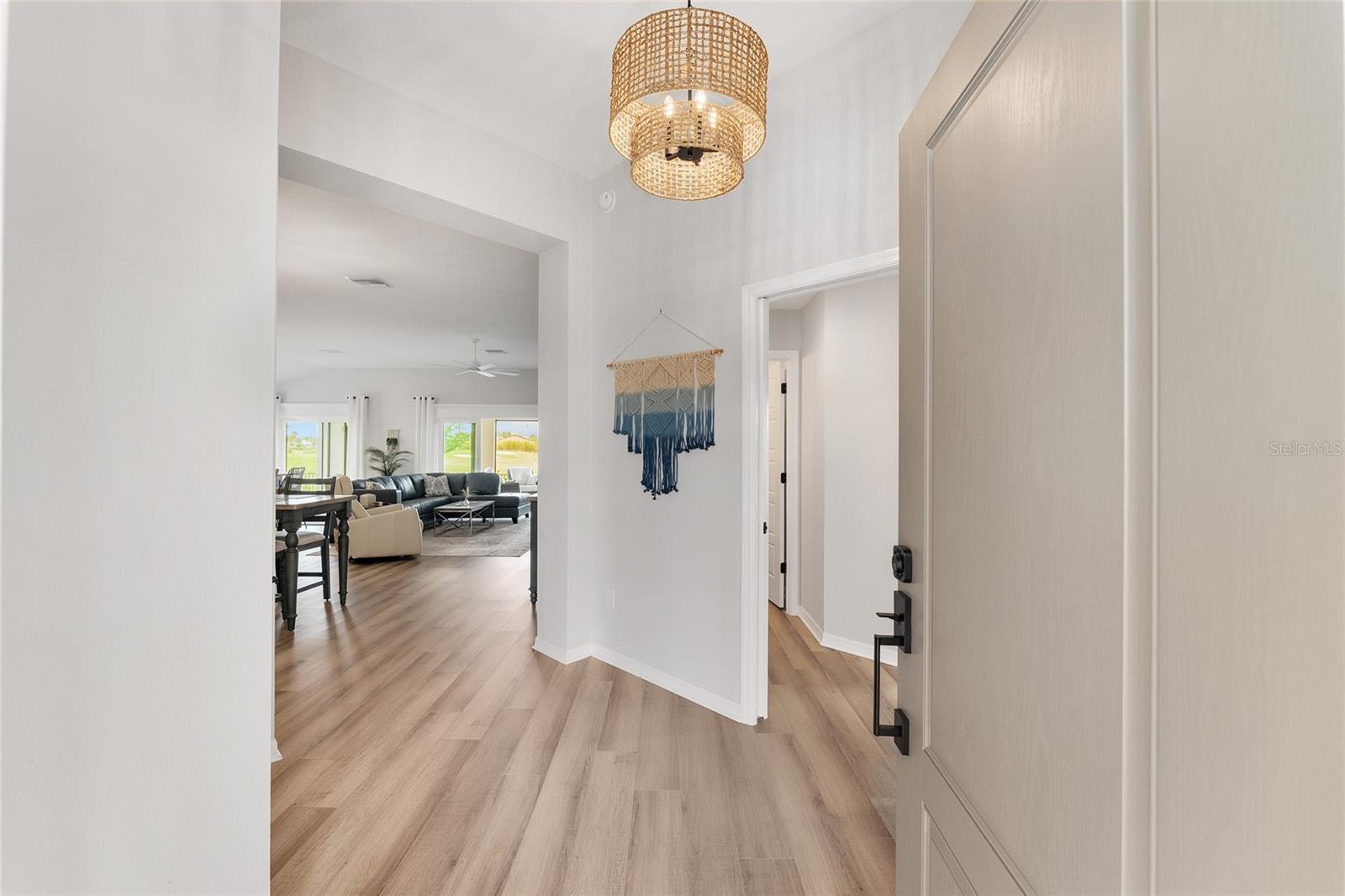 Linda varanda de Hudson com uma vista para o campo de golfe na vila de Newell. A série Veranda é perfeita para o aldeão com animais de estimação, pois possui um pátio fechado com vista para a 17ª caixa no campo de golfe Mickylee. Garagem de 2 carros mais golfe. Ao entrar na garagem, você notará a paisagem hardas com canteiros de paisagismo para baixa manutenção. À medida que passe pela porta da frente desta casa, você é recebido com uma ampla planta baixa que tem uma sensação moderna, tetos altos e piso de tábua de vinil de luxo com rodapés de 6 polegadas em toda a casa. A cozinha de comer possui bancadas de quartzo, grande ilha moderna, prateleiras com controles deslizantes de close suave, gavetas e armários de close macio, utensílios de aço inoxidável, faixa de gás e sob a iluminação do gabinete. Persianas de plantações em todas as janelas de toda a casa. Ventiladores de teto do motor DC em cada quarto. O quarto principal tem um teto de bandeja e banheiro na suíte. O banheiro principal tem todos os toques modernos, um chuveiro romano, pias duplas, closet, um armário de água, um cesto de armário e bancadas de quartzo. O design do quarto dividido fornece privacidade para o seu hóspede, pois os dois quartos da frente podem ser fechados com uma porta de bolso. Duas portas de vidro deslizantes se abrem para o amplo Lanai com um piso de cimento personalizado e tons de energia. Divirta -se durante o dia assistindo aos golfistas caminharem para a noite tomando bebidas no ambiente privado. Uma ótima localização, a casa fica a uma curta caminhada da trilha de caminhada, caixas de correio da comunidade e o Franklin Recreation Center. Um passeio de carrinho de golfe de 10 minutos até a área de entretenimento de capim e a minutos das compras na cidade. E não vamos esquecer a utilidade da casa. A lavanderia tem um secador de gás. A entrada é rastreada para manter a entrada livre de detritos. Paisagismo de baixa manutenção. A utilidade afunda na garagem e puxe as escadas do sótão. O telhado, o HVAC e o aquecedor de água sem tanques são 2023.