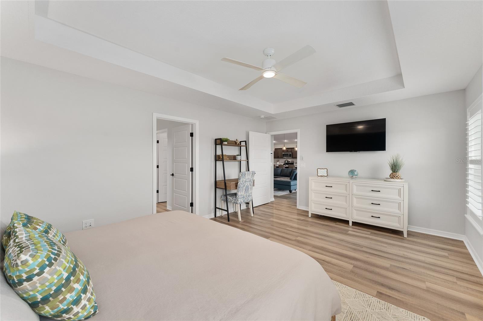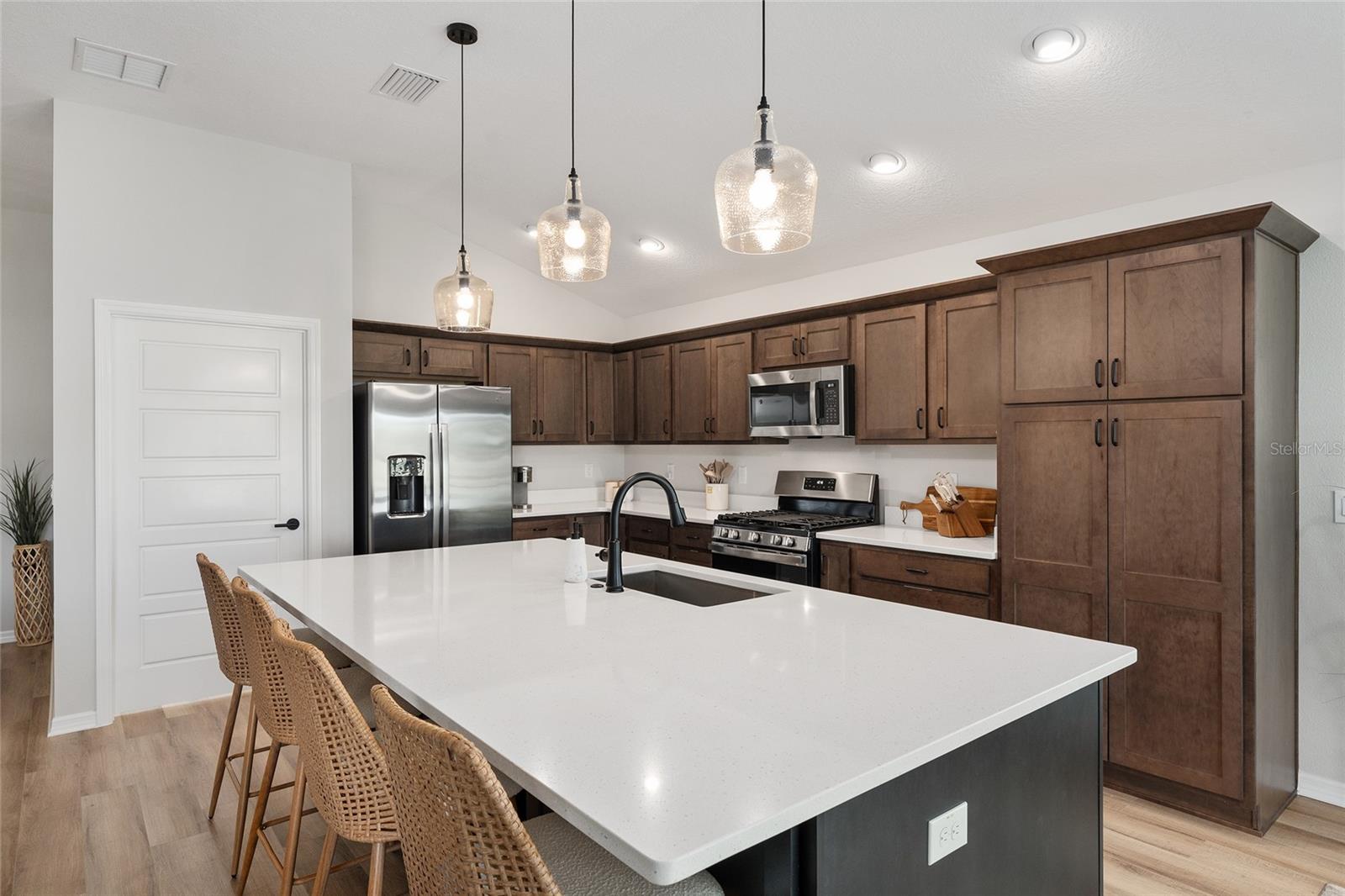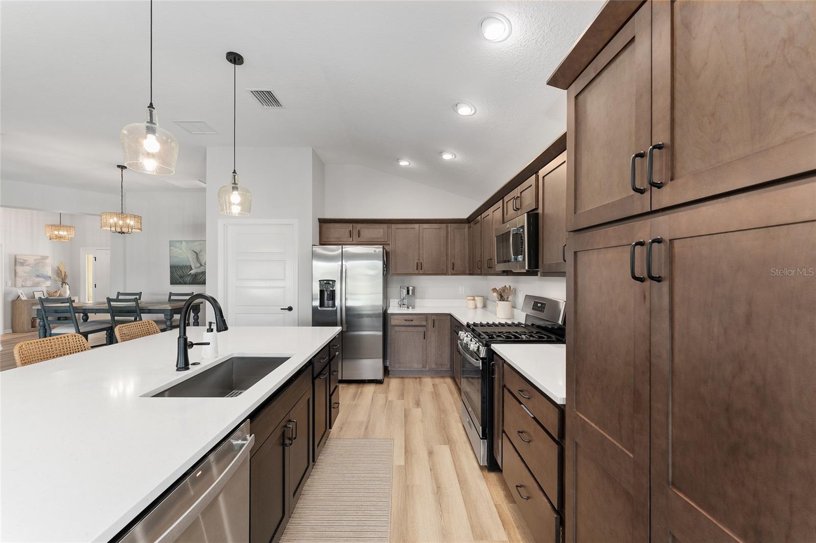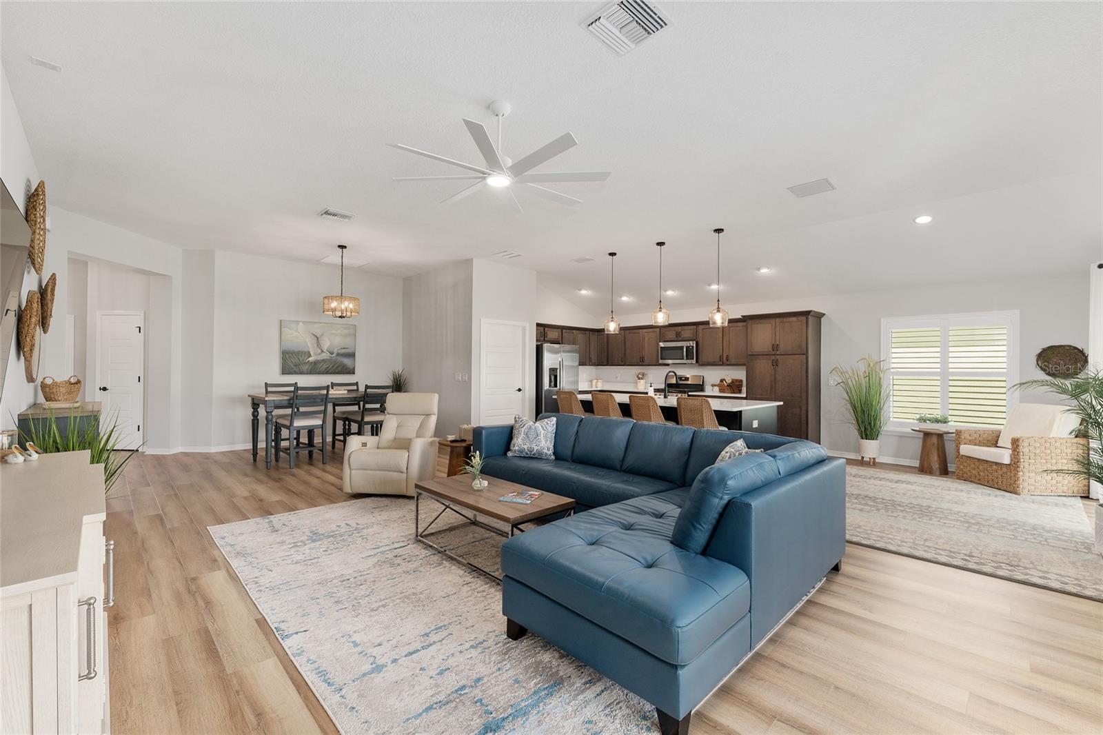 Linda varanda de Hudson com uma vista para o campo de golfe na vila de Newell. A série Veranda é perfeita para o aldeão com animais de estimação, pois possui um pátio fechado com vista para a 17ª caixa no campo de golfe Mickylee. Garagem de 2 carros mais golfe. Ao entrar na garagem, você notará a paisagem hardas com canteiros de paisagismo para baixa manutenção. À medida que passe pela porta da frente desta casa, você é recebido com uma ampla planta baixa que tem uma sensação moderna, tetos altos e piso de tábua de vinil de luxo com rodapés de 6 polegadas em toda a casa. A cozinha de comer possui bancadas de quartzo, grande ilha moderna, prateleiras com controles deslizantes de close suave, gavetas e armários de close macio, utensílios de aço inoxidável, faixa de gás e sob a iluminação do gabinete. Persianas de plantações em todas as janelas de toda a casa. Ventiladores de teto do motor DC em cada quarto. O quarto principal tem um teto de bandeja e banheiro na suíte. O banheiro principal tem todos os toques modernos, um chuveiro romano, pias duplas, closet, um armário de água, um cesto de armário e bancadas de quartzo. O design do quarto dividido fornece privacidade para o seu hóspede, pois os dois quartos da frente podem ser fechados com uma porta de bolso. Duas portas de vidro deslizantes se abrem para o amplo Lanai com um piso de cimento personalizado e tons de energia. Divirta -se durante o dia assistindo aos golfistas caminharem para a noite tomando bebidas no ambiente privado. Uma ótima localização, a casa fica a uma curta caminhada da trilha de caminhada, caixas de correio da comunidade e o Franklin Recreation Center. Um passeio de carrinho de golfe de 10 minutos até a área de entretenimento de capim e a minutos das compras na cidade. E não vamos esquecer a utilidade da casa. A lavanderia tem um secador de gás. A entrada é rastreada para manter a entrada livre de detritos. Paisagismo de baixa manutenção. A utilidade afunda na garagem e puxe as escadas do sótão. O telhado, o HVAC e o aquecedor de água sem tanques são 2023.