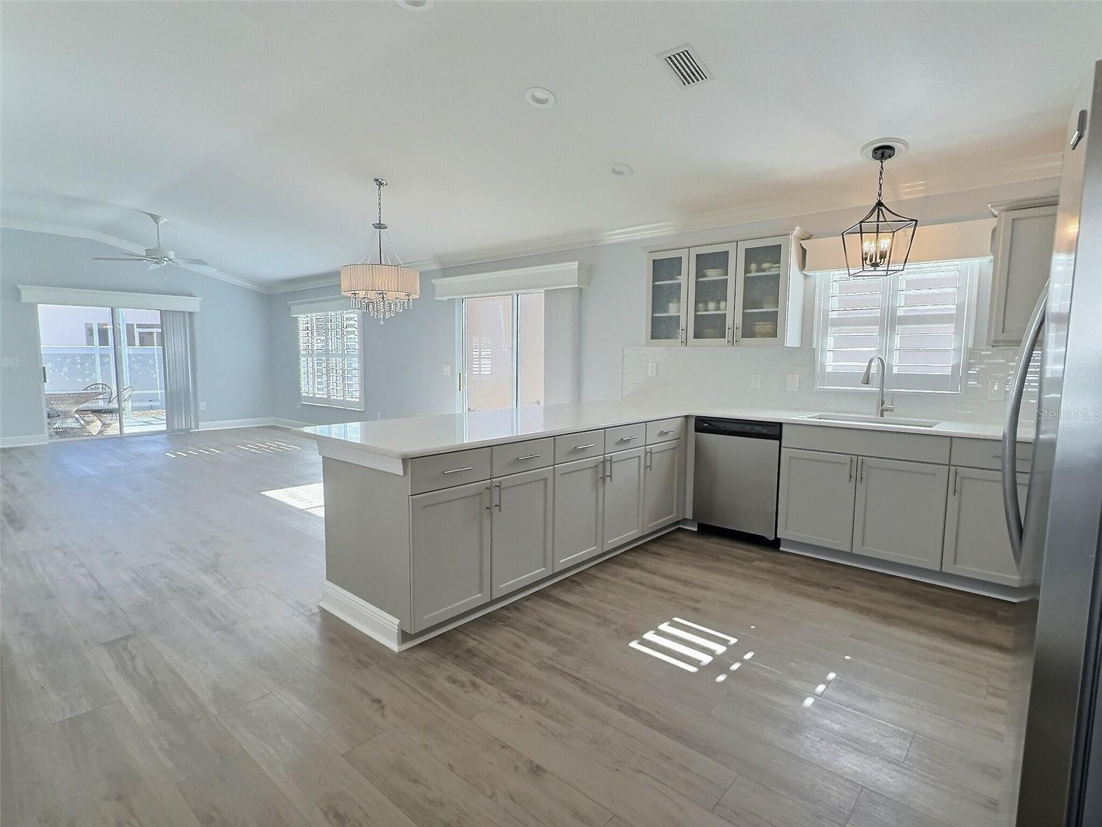 Aninhado na vila de Bonita, esta villa atualizada do pátio oferece 3 quartos e 2 banheiros a 1.398 pés quadrados de espaço de estar. O design do conceito aberto apresenta persianas de molduras e plantações, aprimorando a elegância da casa. A cozinha possui bancadas de quartzo, um elegante backsplash, uma despensa, utensílios de aço inoxidável mais recentes e armários amplos, complementados por uma barra de café da manhã. A espaçosa sala de estar foi projetada para assentos e entretenimento confortáveis. O quarto principal inclui uma porta deslizante que leva ao Lanai, um closet e um banheiro privativo com um chuveiro. Uma porta de bolso separa o segundo quarto e o banheiro adjacente de hóspedes da sala, proporcionando privacidade. Fora do salão da cozinha, você encontrará o terceiro quarto, lavanderia e acesso à garagem. O pátio do quintal é um retiro convidativo, com uma grande gaiola e lanai, tudo dentro de um quintal totalmente cercado. As atualizações recentes incluem um novo telhado em 2021 e um aquecedor de água em 2024. Com um baixo saldo de títulos de US $ 7.087,00, esta vila combina conforto, estilo e acessibilidade. A vila está localizada centralmente perto de shopping centers, restaurantes, locais de entretenimento, piscinas comunitárias, centros de recreação e campos de golfe.