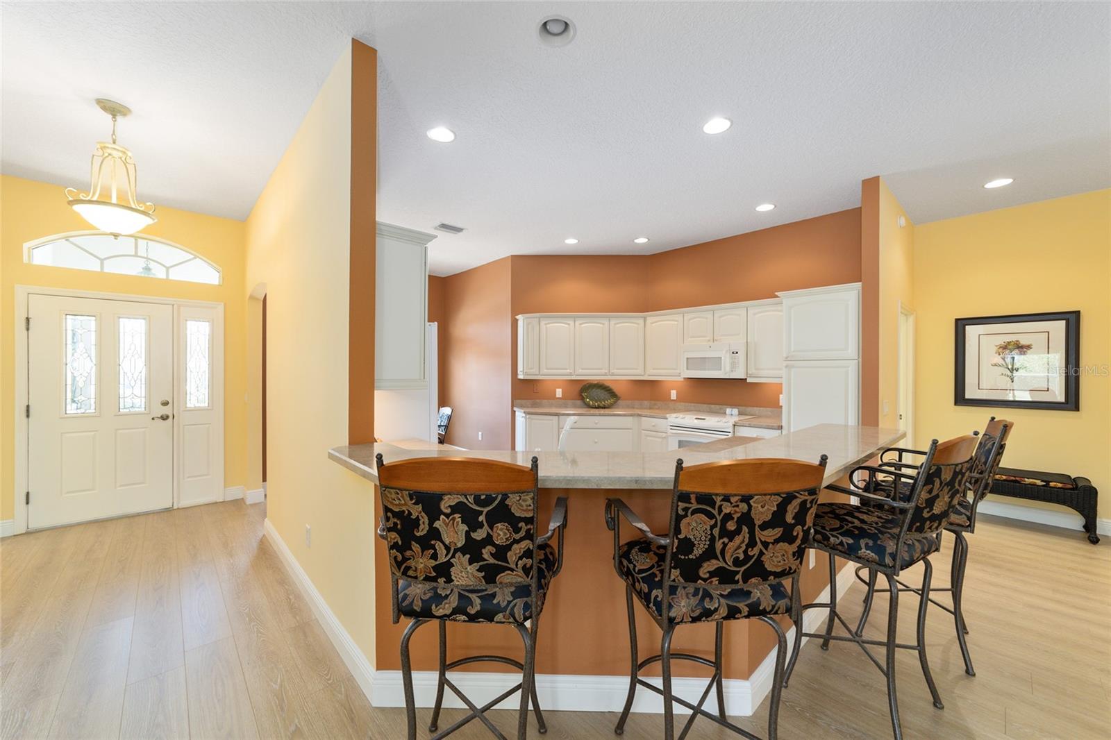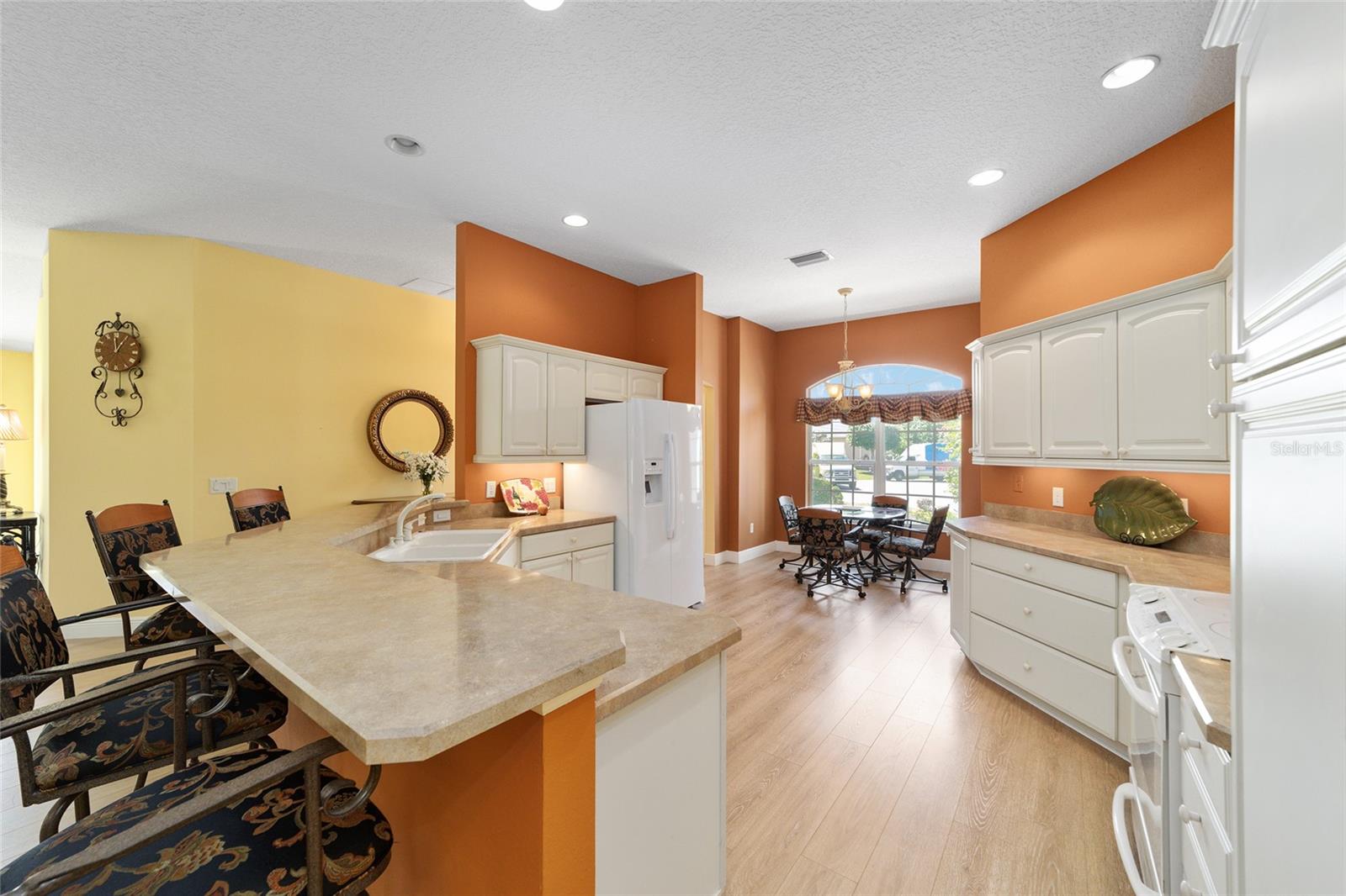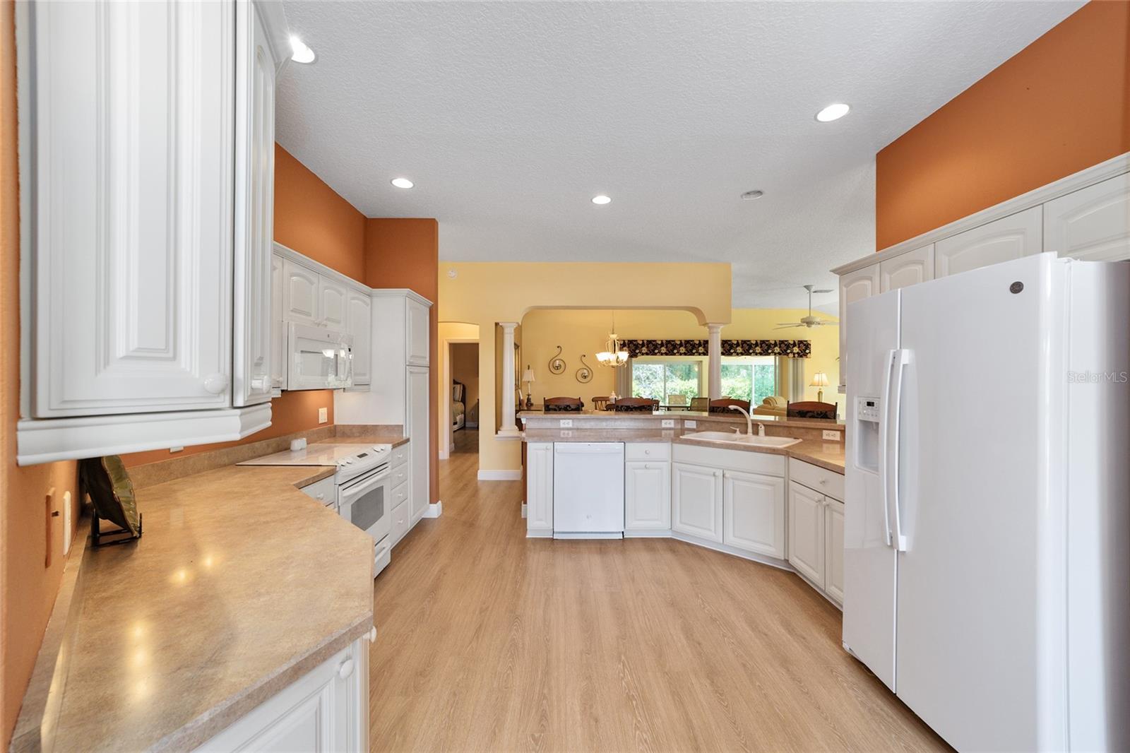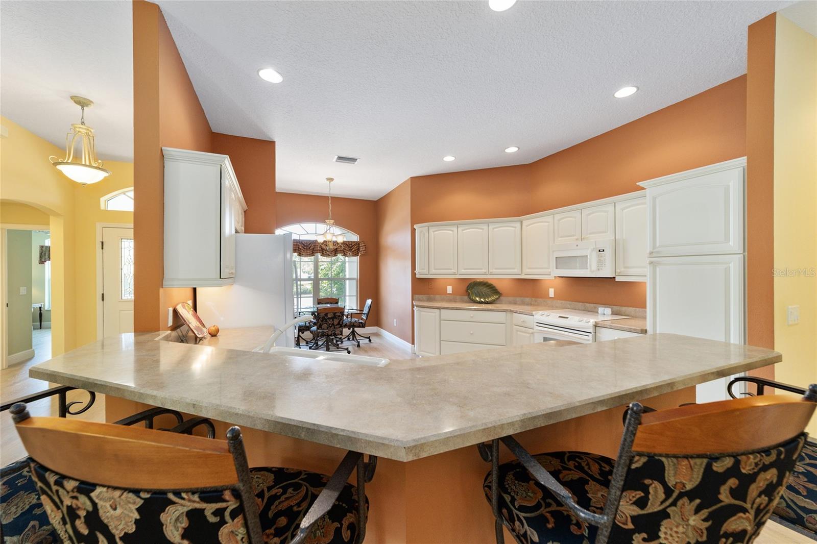 ~ Novo telhado de abril de 2025 ~ ~ Nenhuma casa por trás de ~ ~ lote premium ~ ~ Lanai encerrado de vidro ~ ~ ~ perto do lago Sumter Landing ~ sem vínculo ~ Esta Gardenia de 3/2 na vila de Caroline está aninhada em um beco sem saída tranquilo, com vistas serenas de preservação que fornecem a privacidade total e o ambiente pacífico. Agradecendo você é uma garagem de pavimentadora de tijolos e um paisagismo maduro e atencioso. Ao entrar na casa, você é recebido com pisos de tábuas de vinil de luxo em todas as áreas de estar, complementadas pelo linóleo de ponta nos dois banhos. As salas de estar e de jantar possuem tetos altos abobadados, com um ventilador de teto na sala de estar para maior conforto. A cozinha possui uma área de comer, armários de madeira maciça atualizada com iluminação sub-cabinete e um conjunto completo de eletrodomésticos. O espaçoso quarto primário inclui 2 armários, tetos altos e abobadados e um banho de banheiro com um chuveiro de ladrilhos, bancadas altas, pias duplas e um armário de linho. Os quartos de hóspedes têm armários embutidos e ventiladores de teto, com um banho para acomodar seus convidados com uma combinação de azulejos/banheiras, armários de madeira, armário de linho e um tubo solar para luz natural adicional. A lavanderia interna fornece uma banheira de lavanderia, armários e um tubo solar. Aproveite o ar livre durante todo o ano na varanda fechada de vidro com controles deslizantes telescópicos, transições planas, piso de azulejos de cerâmica, 2 ventiladores de teto e um sistema de mini-split dedicado para conforto. Por fim, a garagem de 2 carros mais garagem para carrinho de golfe com o piso pintado contém armários, uma bancada de trabalho e escadas no sótão. O HVAC é 2016 e o aquecedor de água quente é de 2006. O pacote de móveis está disponível e o carrinho de golfe de Curtis Cab Cab 2012 é negociável. Esta casa fica ao lado do Lake Sumter Landing, onde você encontrará muitas compras, restaurantes e escritórios médicos. Você também está perto do Mallory Hill Country Club e do Caroline Neighbourhood Rec Center & Pool.
