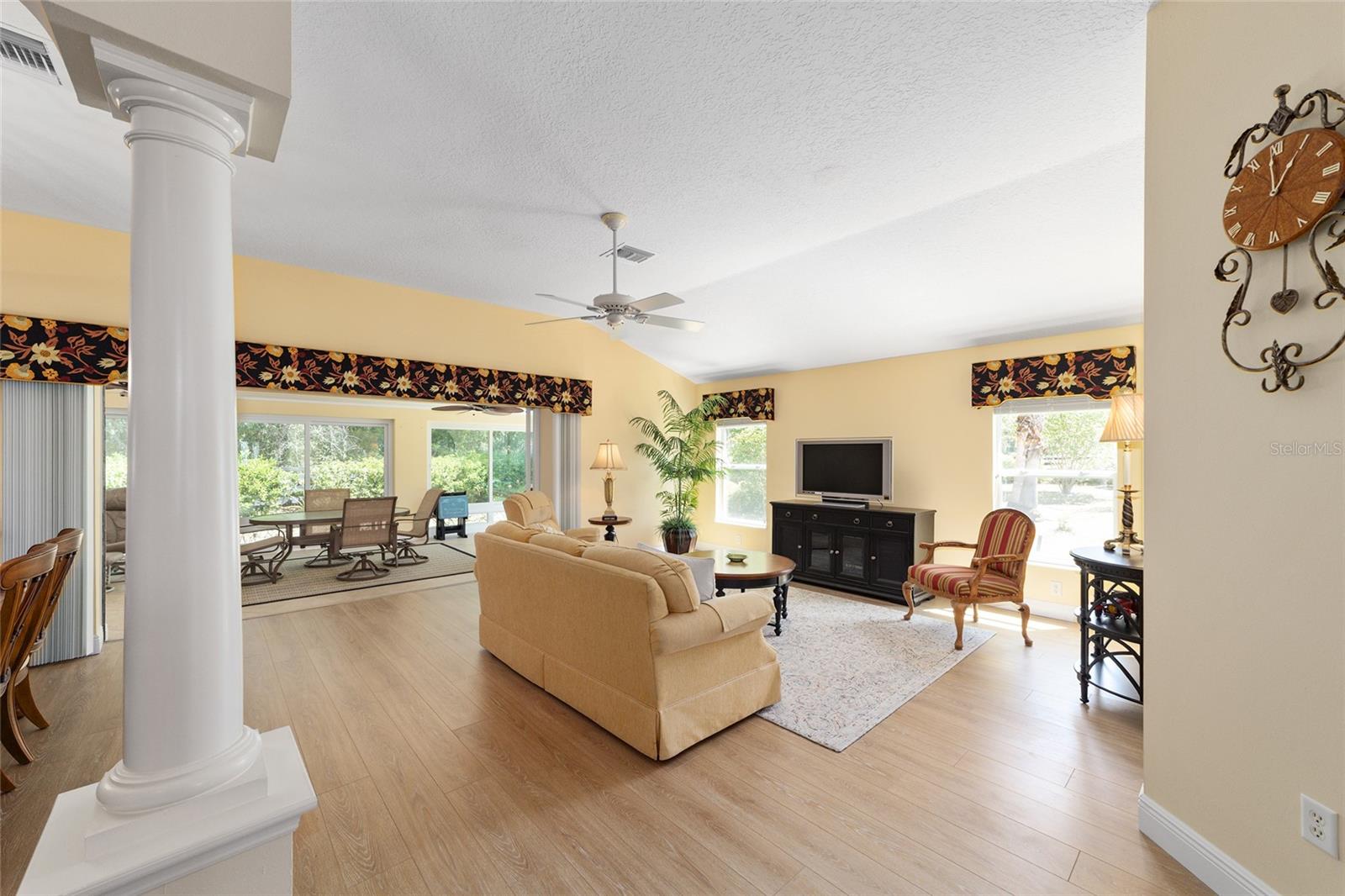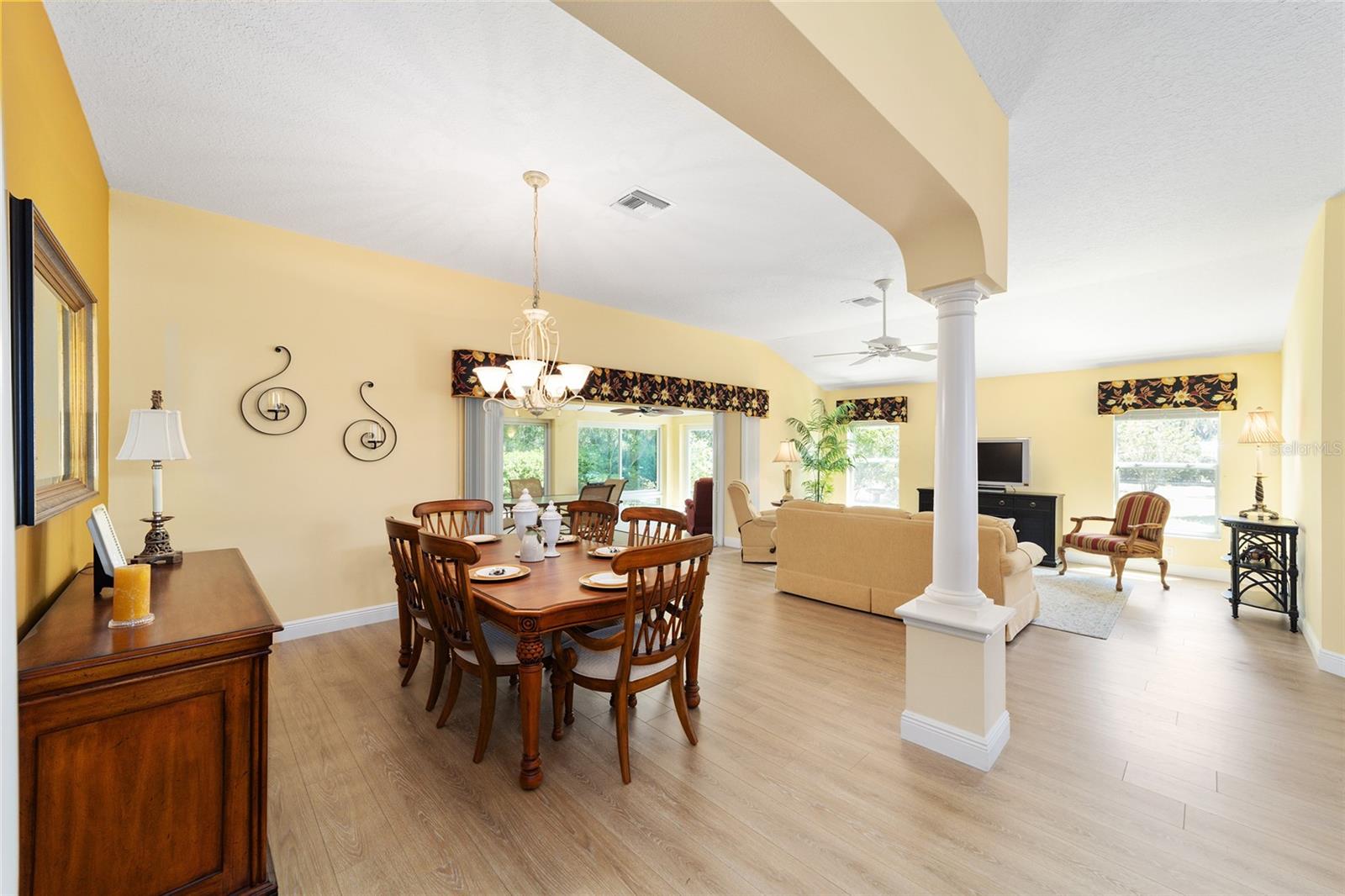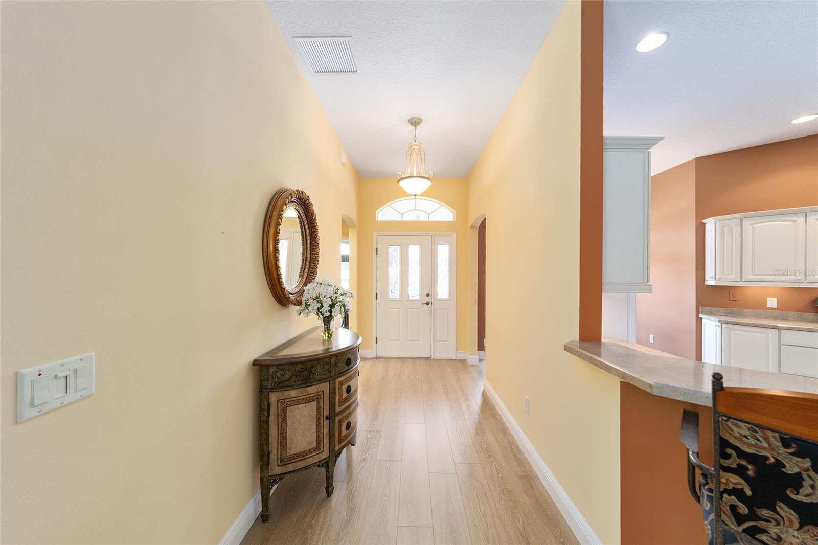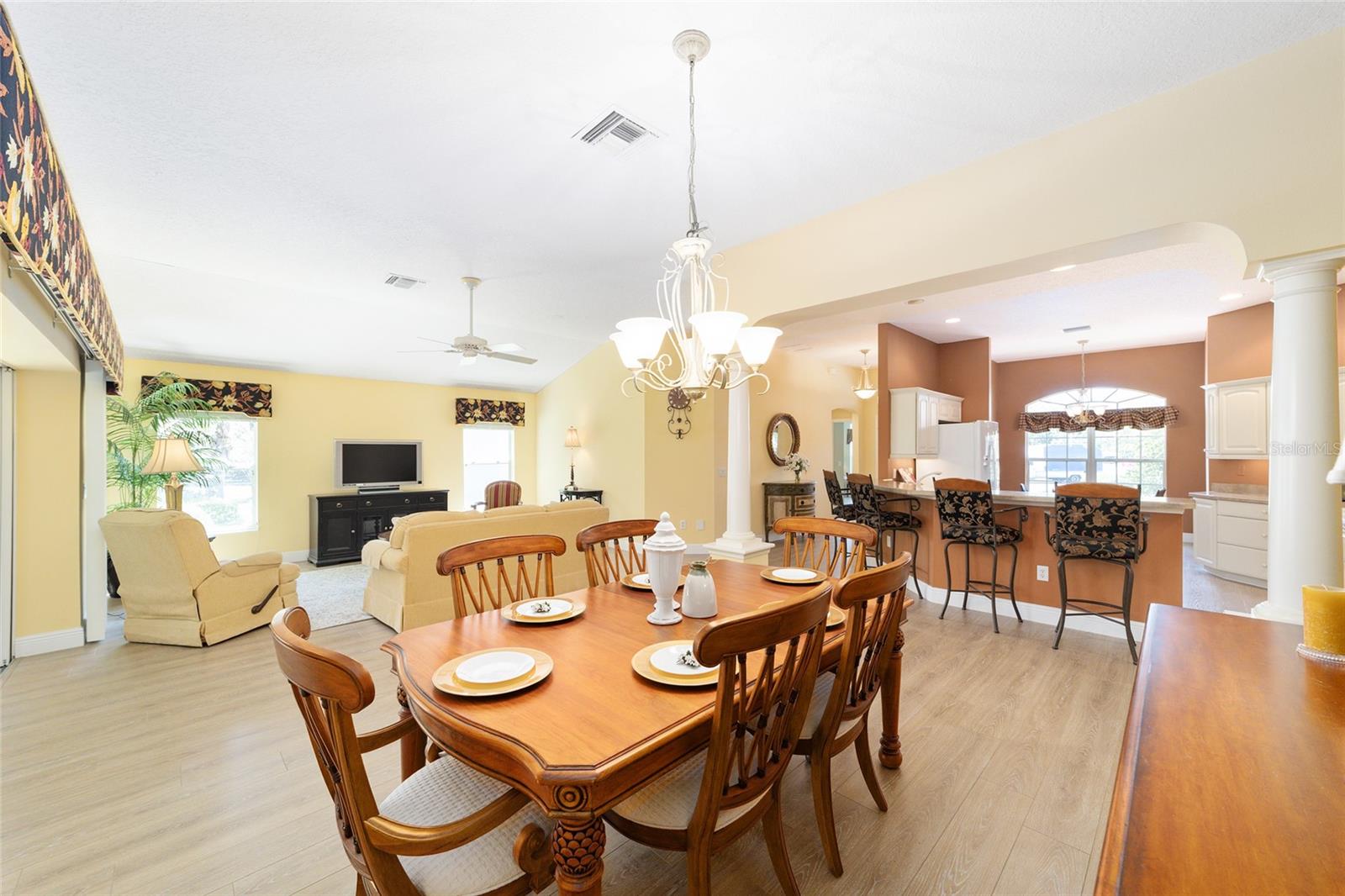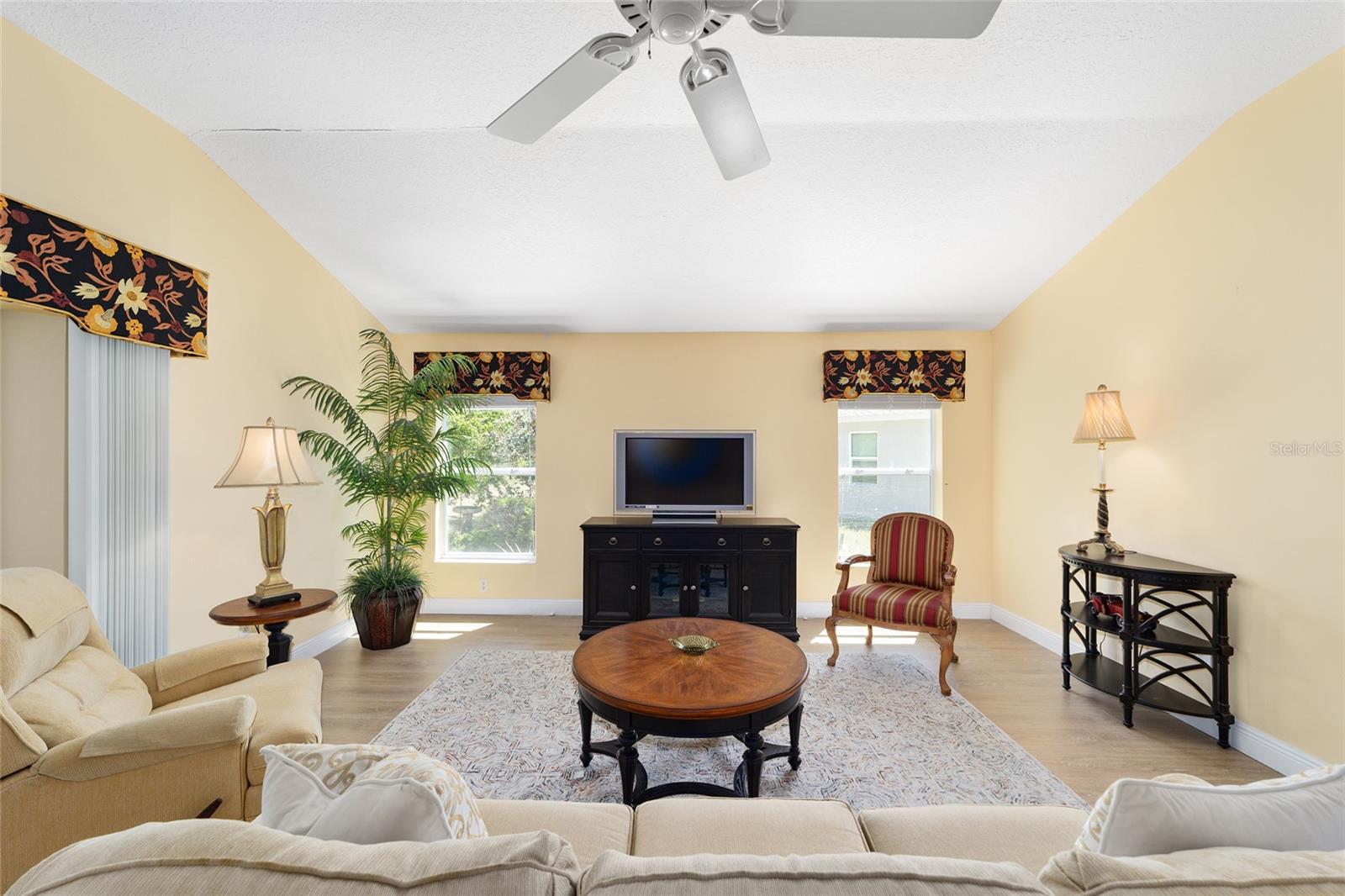 ~ Novo telhado de abril de 2025 ~ ~ Nenhuma casa por trás de ~ ~ lote premium ~ ~ Lanai encerrado de vidro ~ ~ ~ perto do lago Sumter Landing ~ sem vínculo ~ Esta Gardenia de 3/2 na vila de Caroline está aninhada em um beco sem saída tranquilo, com vistas serenas de preservação que fornecem a privacidade total e o ambiente pacífico. Agradecendo você é uma garagem de pavimentadora de tijolos e um paisagismo maduro e atencioso. Ao entrar na casa, você é recebido com pisos de tábuas de vinil de luxo em todas as áreas de estar, complementadas pelo linóleo de ponta nos dois banhos. As salas de estar e de jantar possuem tetos altos abobadados, com um ventilador de teto na sala de estar para maior conforto. A cozinha possui uma área de comer, armários de madeira maciça atualizada com iluminação sub-cabinete e um conjunto completo de eletrodomésticos. O espaçoso quarto primário inclui 2 armários, tetos altos e abobadados e um banho de banheiro com um chuveiro de ladrilhos, bancadas altas, pias duplas e um armário de linho. Os quartos de hóspedes têm armários embutidos e ventiladores de teto, com um banho para acomodar seus convidados com uma combinação de azulejos/banheiras, armários de madeira, armário de linho e um tubo solar para luz natural adicional. A lavanderia interna fornece uma banheira de lavanderia, armários e um tubo solar. Aproveite o ar livre durante todo o ano na varanda fechada de vidro com controles deslizantes telescópicos, transições planas, piso de azulejos de cerâmica, 2 ventiladores de teto e um sistema de mini-split dedicado para conforto. Por fim, a garagem de 2 carros mais garagem para carrinho de golfe com o piso pintado contém armários, uma bancada de trabalho e escadas no sótão. O HVAC é 2016 e o aquecedor de água quente é de 2006. O pacote de móveis está disponível e o carrinho de golfe de Curtis Cab Cab 2012 é negociável. Esta casa fica ao lado do Lake Sumter Landing, onde você encontrará muitas compras, restaurantes e escritórios médicos. Você também está perto do Mallory Hill Country Club e do Caroline Neighbourhood Rec Center & Pool.