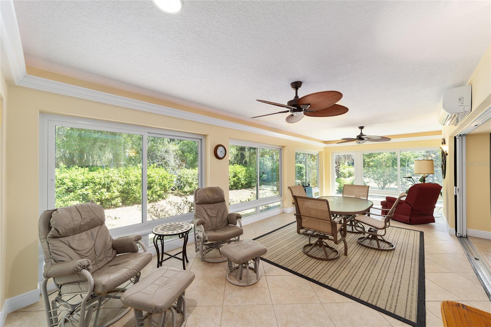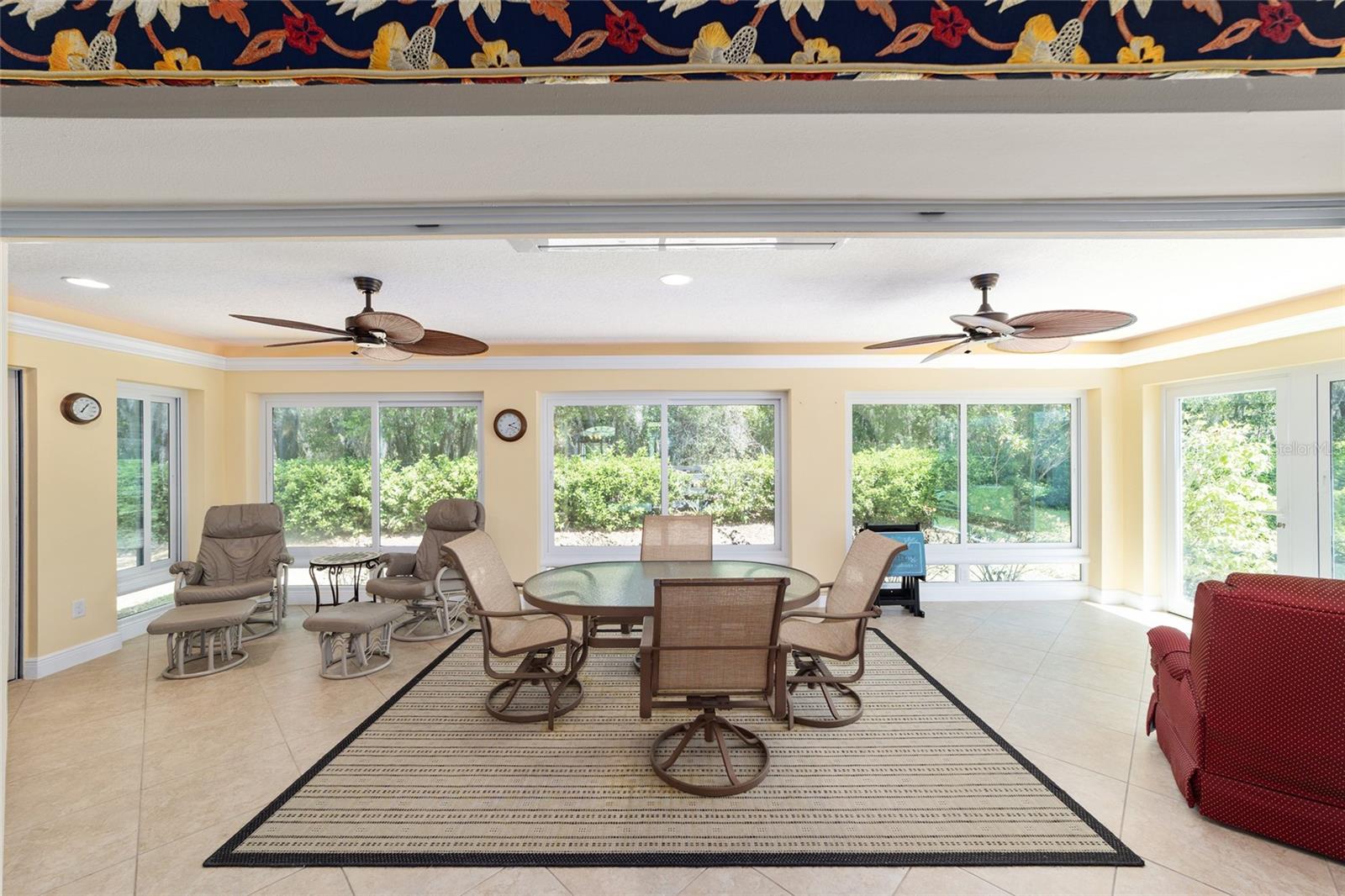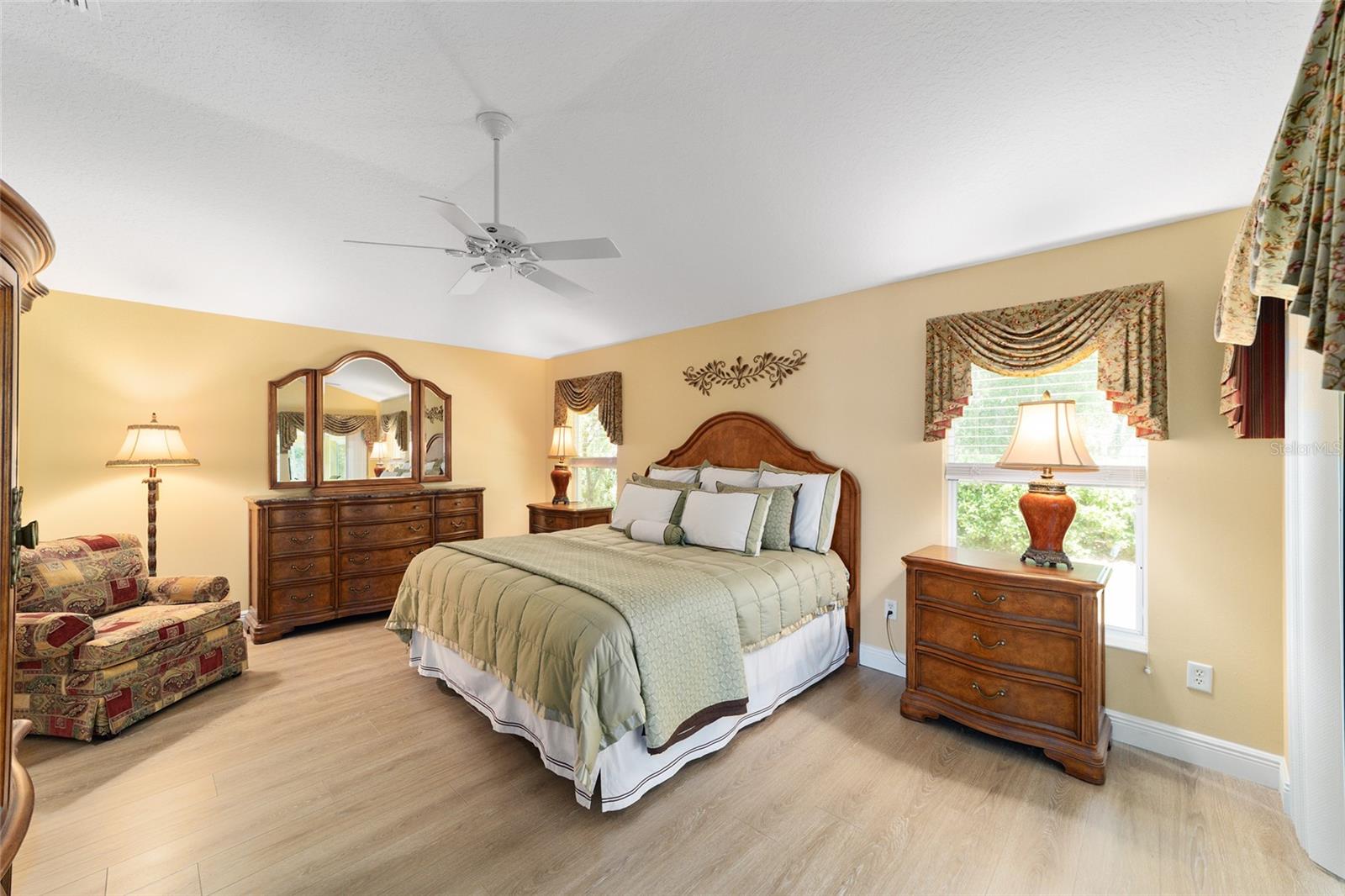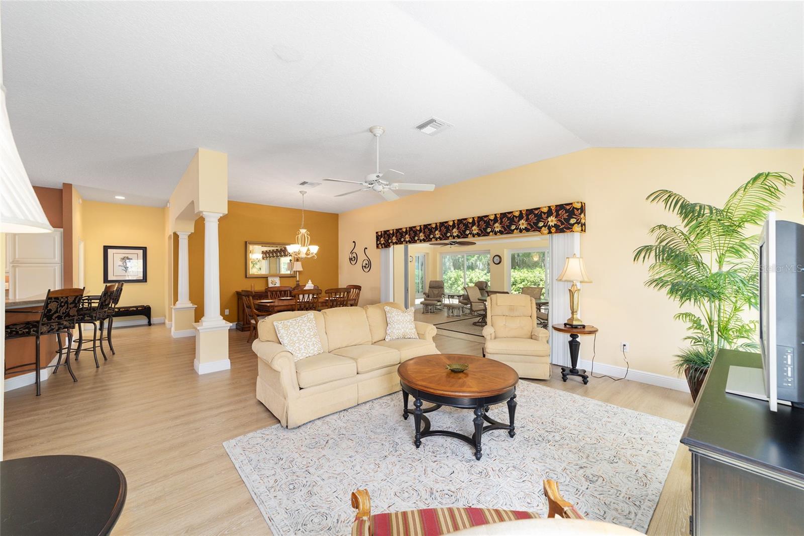 ~ Novo telhado de abril de 2025 ~ ~ Nenhuma casa por trás de ~ ~ lote premium ~ ~ Lanai encerrado de vidro ~ ~ ~ perto do lago Sumter Landing ~ sem vínculo ~ Esta Gardenia de 3/2 na vila de Caroline está aninhada em um beco sem saída tranquilo, com vistas serenas de preservação que fornecem a privacidade total e o ambiente pacífico. Agradecendo você é uma garagem de pavimentadora de tijolos e um paisagismo maduro e atencioso. Ao entrar na casa, você é recebido com pisos de tábuas de vinil de luxo em todas as áreas de estar, complementadas pelo linóleo de ponta nos dois banhos. As salas de estar e de jantar possuem tetos altos abobadados, com um ventilador de teto na sala de estar para maior conforto. A cozinha possui uma área de comer, armários de madeira maciça atualizada com iluminação sub-cabinete e um conjunto completo de eletrodomésticos. O espaçoso quarto primário inclui 2 armários, tetos altos e abobadados e um banho de banheiro com um chuveiro de ladrilhos, bancadas altas, pias duplas e um armário de linho. Os quartos de hóspedes têm armários embutidos e ventiladores de teto, com um banho para acomodar seus convidados com uma combinação de azulejos/banheiras, armários de madeira, armário de linho e um tubo solar para luz natural adicional. A lavanderia interna fornece uma banheira de lavanderia, armários e um tubo solar. Aproveite o ar livre durante todo o ano na varanda fechada de vidro com controles deslizantes telescópicos, transições planas, piso de azulejos de cerâmica, 2 ventiladores de teto e um sistema de mini-split dedicado para conforto. Por fim, a garagem de 2 carros mais garagem para carrinho de golfe com o piso pintado contém armários, uma bancada de trabalho e escadas no sótão. O HVAC é 2016 e o aquecedor de água quente é de 2006. O pacote de móveis está disponível e o carrinho de golfe de Curtis Cab Cab 2012 é negociável. Esta casa fica ao lado do Lake Sumter Landing, onde você encontrará muitas compras, restaurantes e escritórios médicos. Você também está perto do Mallory Hill Country Club e do Caroline Neighbourhood Rec Center & Pool.