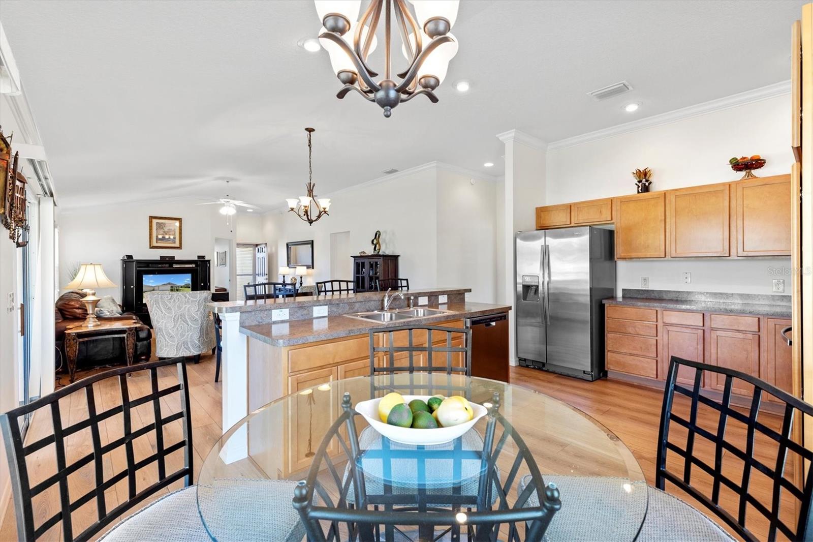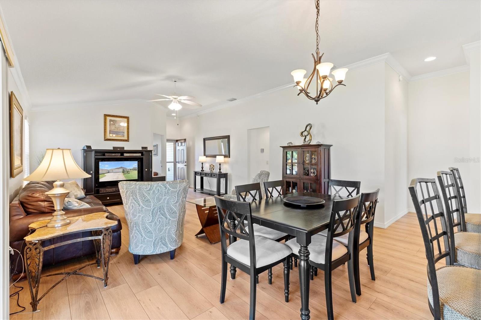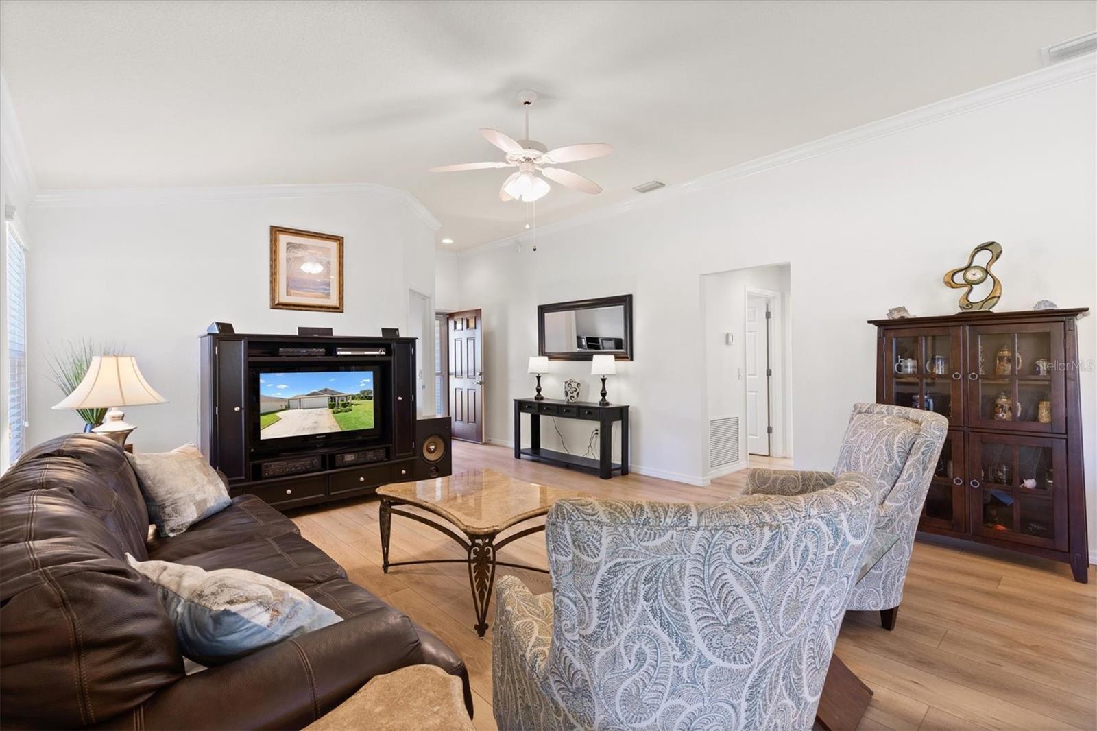 Curta curta passeio de golfe até a Brownwood Town Square. Aninhado na vila de Hillsborough, descobre sua casa de sonho nesta impressionante cama de 3 camas, 2 banheiros na casa do Model Model. Esta propriedade de canto oferece espaço para uma piscina, perfeita para quem gosta de lazer ao ar livre. Entre para encontrar um luxuoso piso de tábua de vinil que flui perfeitamente por todo o layout de conceito aberto, acentuado por elegantes tetos de moldagem por coroa e knockdown. Os tetos abobadados criam uma sensação arejada, enquanto as janelas cuidadosamente projetadas, adornadas com persianas e cornijas, permitem que a luz natural inundasse o espaço. Aproveite o conforto dos ventiladores de teto com kits leves em todos os quartos. O design do plano dividido oferece privacidade e funcionalidade. A cozinha cuidadosamente projetada apresenta uma ilha espaçosa com uma barra de café da manhã, prateleiras e utensílios de aço inoxidável, tornando-a delícia de um chef. Aproveite o seu café da manhã no acolhedor recanto do café da manhã ou a apenas um passo pelas portas deslizantes até o lanai exibido. A suíte master apresenta um banho privativo de banheiro completo, completo com vaidades duplas, um armário de água separado com chuveiro e um closet personalizado. Destaques adicionais incluem uma garagem de grandes dimensões com um espaço dedicado ao carrinho de golfe, um sistema de filtragem de água Nova e um kit de escada do sótão para facilitar o acesso ao armazenamento. Os móveis em casa são opcionais. Minutos para Evans Prairie Country Club, Campo de Golfe Executivo da Egret e Centro de Recreação de Manatee e Piscina. Localizado entre Sumter Landing e Brownwood para refeições, entretenimento e compras. Esta casa tem tudo. Faça sua consulta hoje para que você possa começar a viver As aldeias sonham.
