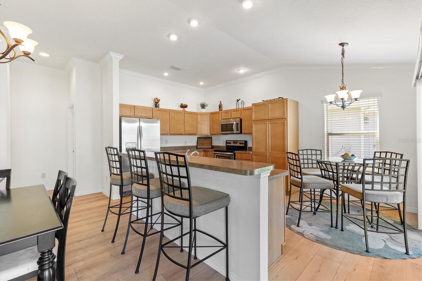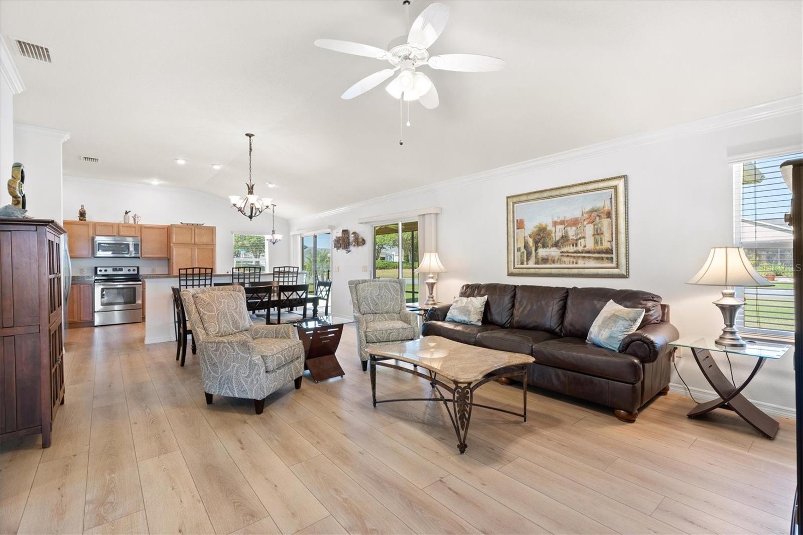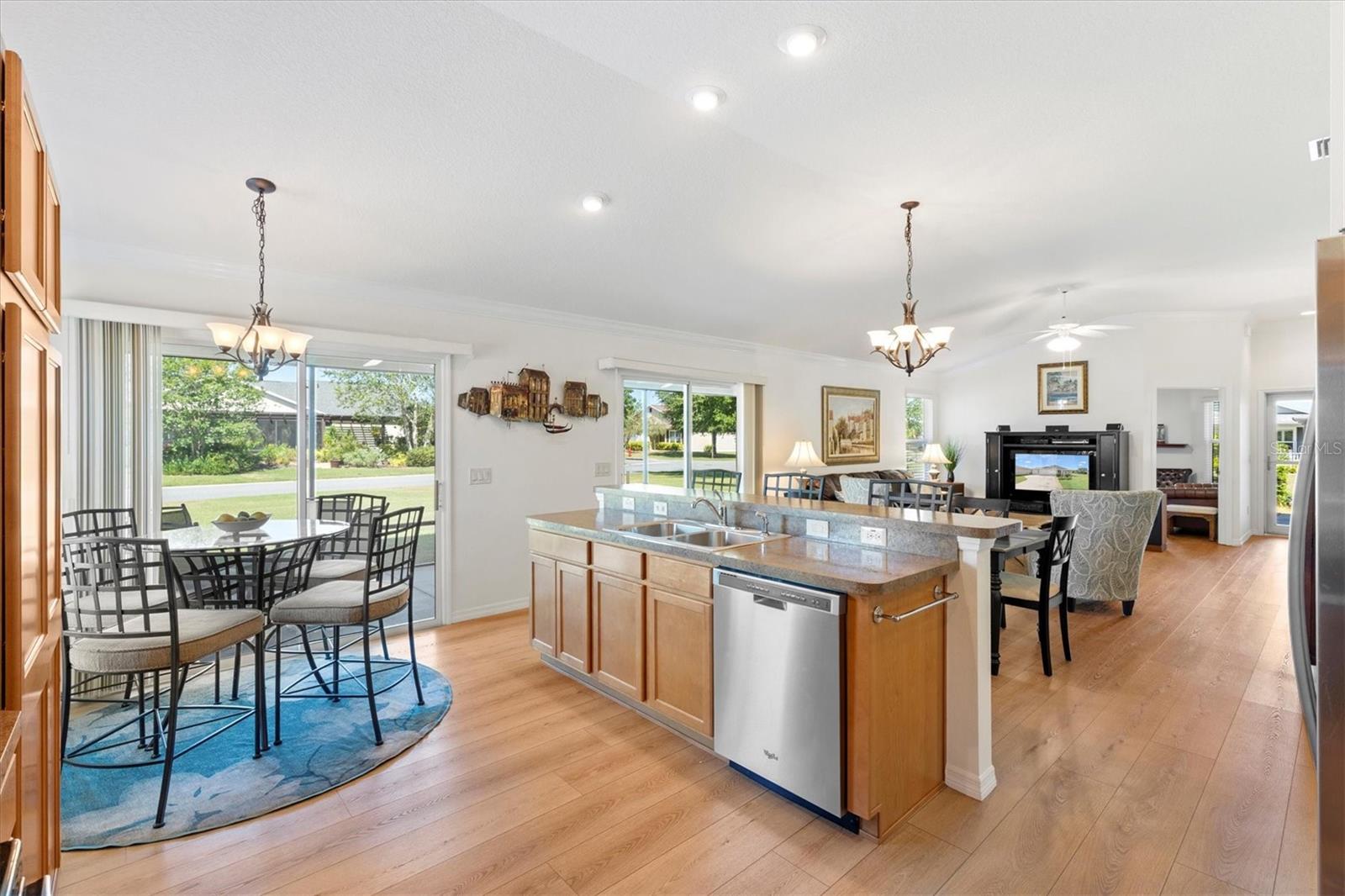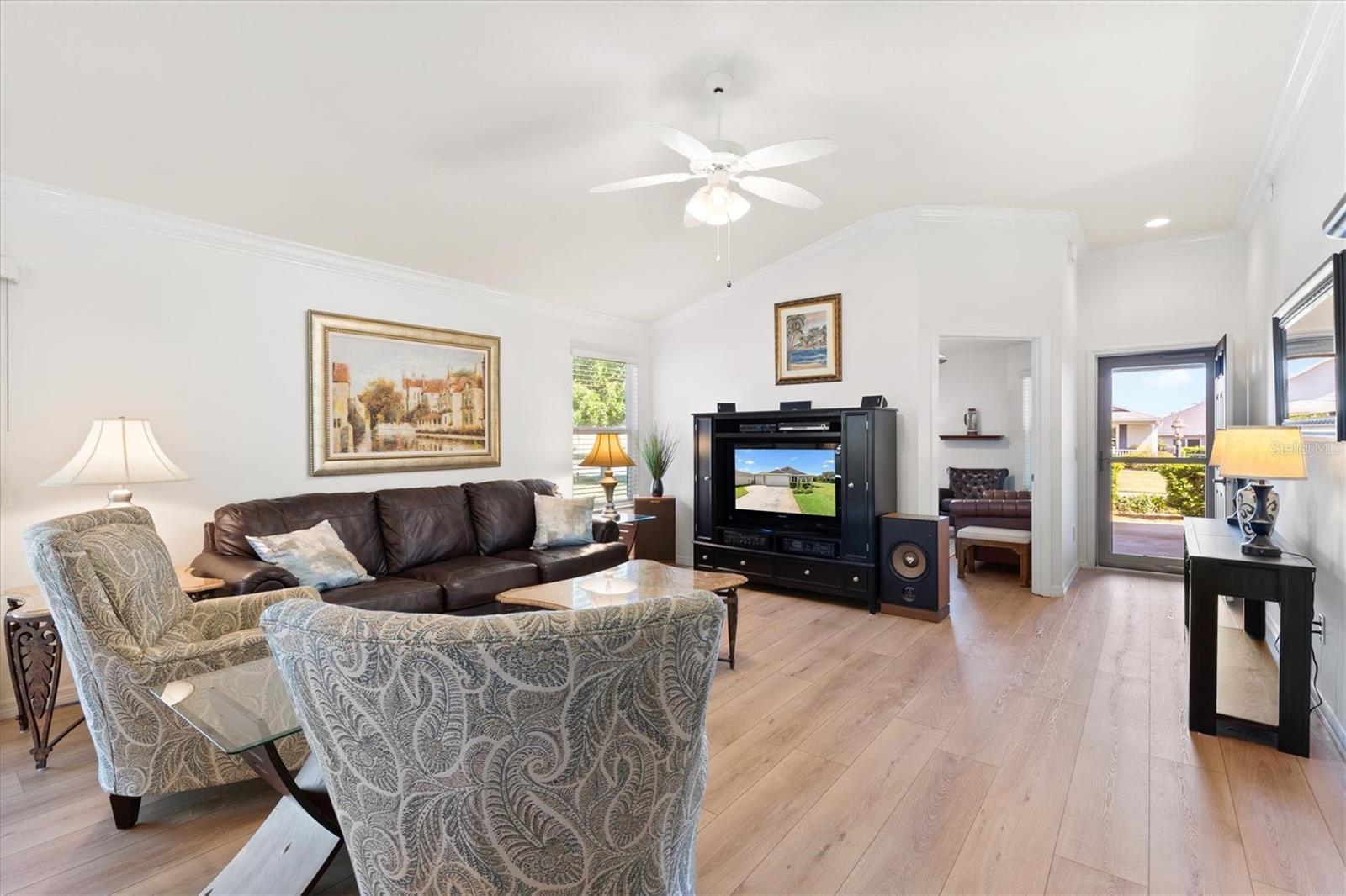 Curta curta passeio de golfe até a Brownwood Town Square. Aninhado na vila de Hillsborough, descobre sua casa de sonho nesta impressionante cama de 3 camas, 2 banheiros na casa do Model Model. Esta propriedade de canto oferece espaço para uma piscina, perfeita para quem gosta de lazer ao ar livre. Entre para encontrar um luxuoso piso de tábua de vinil que flui perfeitamente por todo o layout de conceito aberto, acentuado por elegantes tetos de moldagem por coroa e knockdown. Os tetos abobadados criam uma sensação arejada, enquanto as janelas cuidadosamente projetadas, adornadas com persianas e cornijas, permitem que a luz natural inundasse o espaço. Aproveite o conforto dos ventiladores de teto com kits leves em todos os quartos. O design do plano dividido oferece privacidade e funcionalidade. A cozinha cuidadosamente projetada apresenta uma ilha espaçosa com uma barra de café da manhã, prateleiras e utensílios de aço inoxidável, tornando-a delícia de um chef. Aproveite o seu café da manhã no acolhedor recanto do café da manhã ou a apenas um passo pelas portas deslizantes até o lanai exibido. A suíte master apresenta um banho privativo de banheiro completo, completo com vaidades duplas, um armário de água separado com chuveiro e um closet personalizado. Destaques adicionais incluem uma garagem de grandes dimensões com um espaço dedicado ao carrinho de golfe, um sistema de filtragem de água Nova e um kit de escada do sótão para facilitar o acesso ao armazenamento. Os móveis em casa são opcionais. Minutos para Evans Prairie Country Club, Campo de Golfe Executivo da Egret e Centro de Recreação de Manatee e Piscina. Localizado entre Sumter Landing e Brownwood para refeições, entretenimento e compras. Esta casa tem tudo. Faça sua consulta hoje para que você possa começar a viver As aldeias sonham.