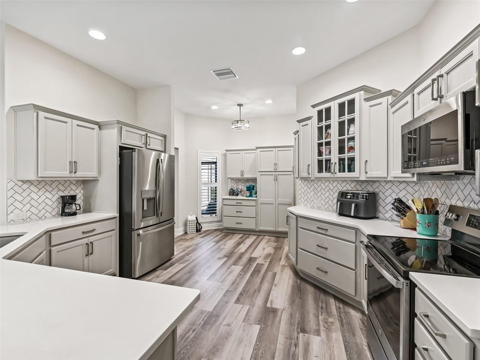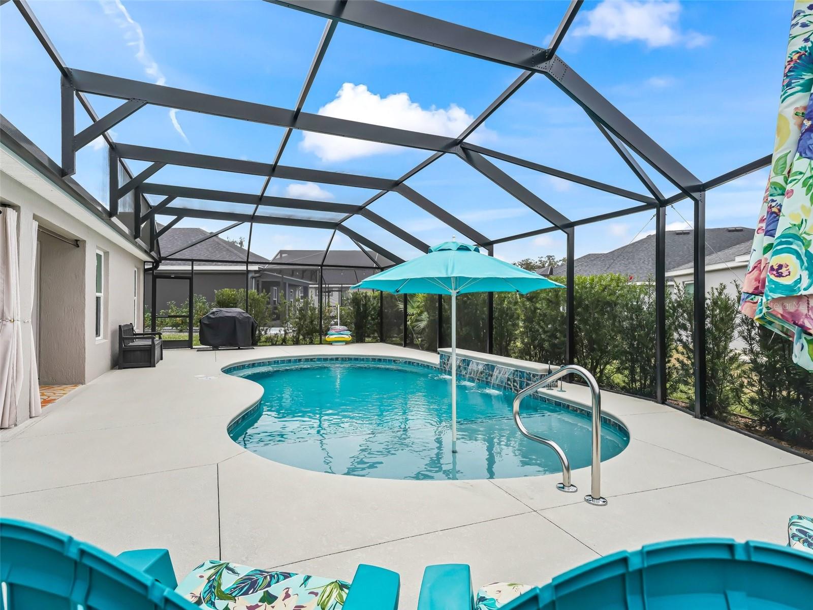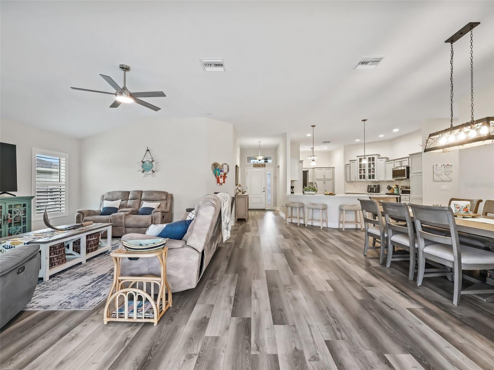 Bem-vindo a esta casa com piscina expandida de begônia, lindamente projetada, com 3 quartos e 2 banheiros, localizada na desejável vila de Richmond. Com mais de 2.000 pés quadrados de espaço luxuoso e apenas 2 anos de idade, esta casa com piscina cuidadosamente projetada oferece elegância e funcionalidade. Ao se aproximar da propriedade, você notará o paisagismo profissional e a entrada com tela personalizada. Entre para encontrar luxuosos pisos de pranchas de vinil e venezianas adornando todas as janelas. A planta aberta apresenta tetos altos, criando uma atmosfera luminosa e espaçosa. O coração da casa é a cozinha do chef, com armários extras, bancadas de quartzo, pia e eletrodomésticos de aço inoxidável e um layout aberto com vista para o espaço de jantar e de estar, tornando-o ideal para entretenimento. A suíte principal é um verdadeiro retiro, completa com closets duplos, controles deslizantes que levam à varanda e um banheiro tipo spa com bancadas de quartzo, pias duplas, vaso sanitário separado e chuveiro romano. Os hóspedes poderão desfrutar da privacidade da sua própria ala, separada por uma porta de correr, proporcionando um espaço sereno e confortável. O quarto da frente é realçado por encantadoras janelas salientes, perfeitas para uma área de estar ou luz natural adicional. Os controles deslizantes que desaparecem da área de estar levam a um oásis privativo ao ar livre com uma varanda medindo 30x8 e um pátio expandido com uma piscina de água salgada aquecida a gás, e estar sob uma gaiola o torna perfeito para relaxar ou organizar reuniões. Uma garagem ampliada para 2 carros (por 4 pés com porta de garagem de 18 pés) com garagem para carrinho de golfe é revestida com epóxi e oferece amplo armazenamento para veículos e hobbies. Esta casa incorpora verdadeiramente o luxo e o estilo de vida de The Villages - não perca a oportunidade de torná-la sua! Perto da Brownwood Paddock Square, 3 centros recreativos, lojas, restaurantes, golfe/esportes e fácil acesso dentro e fora das aldeias.