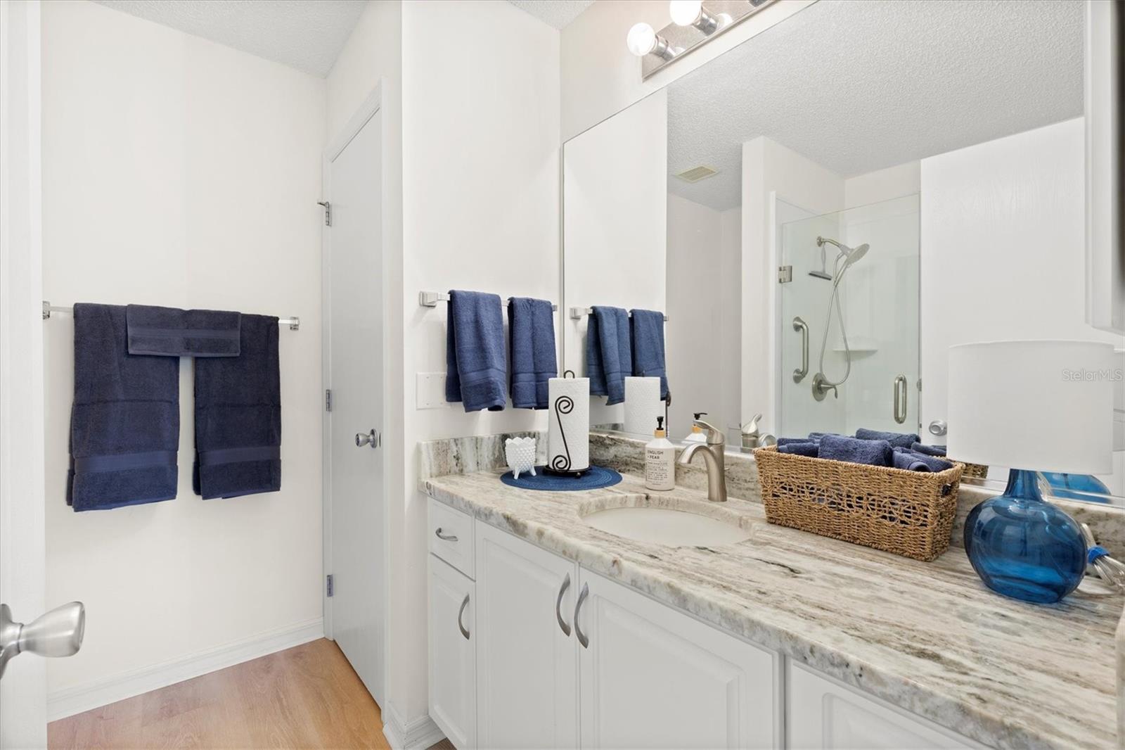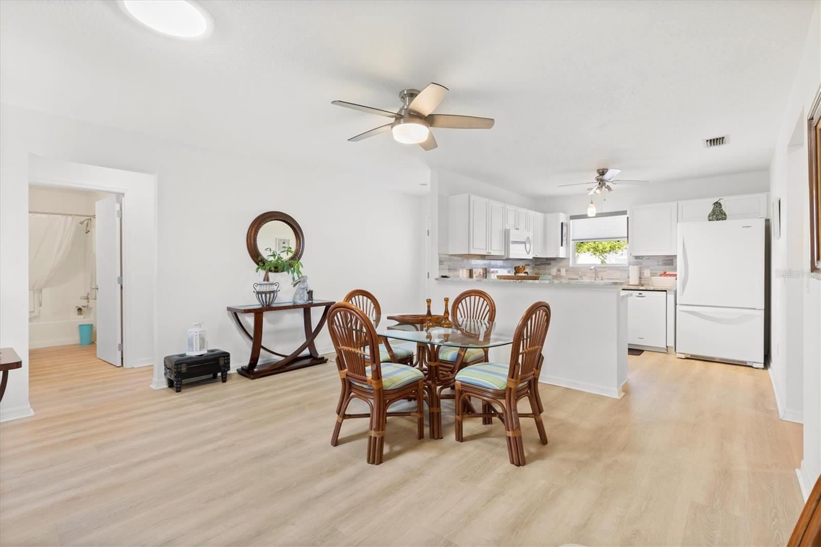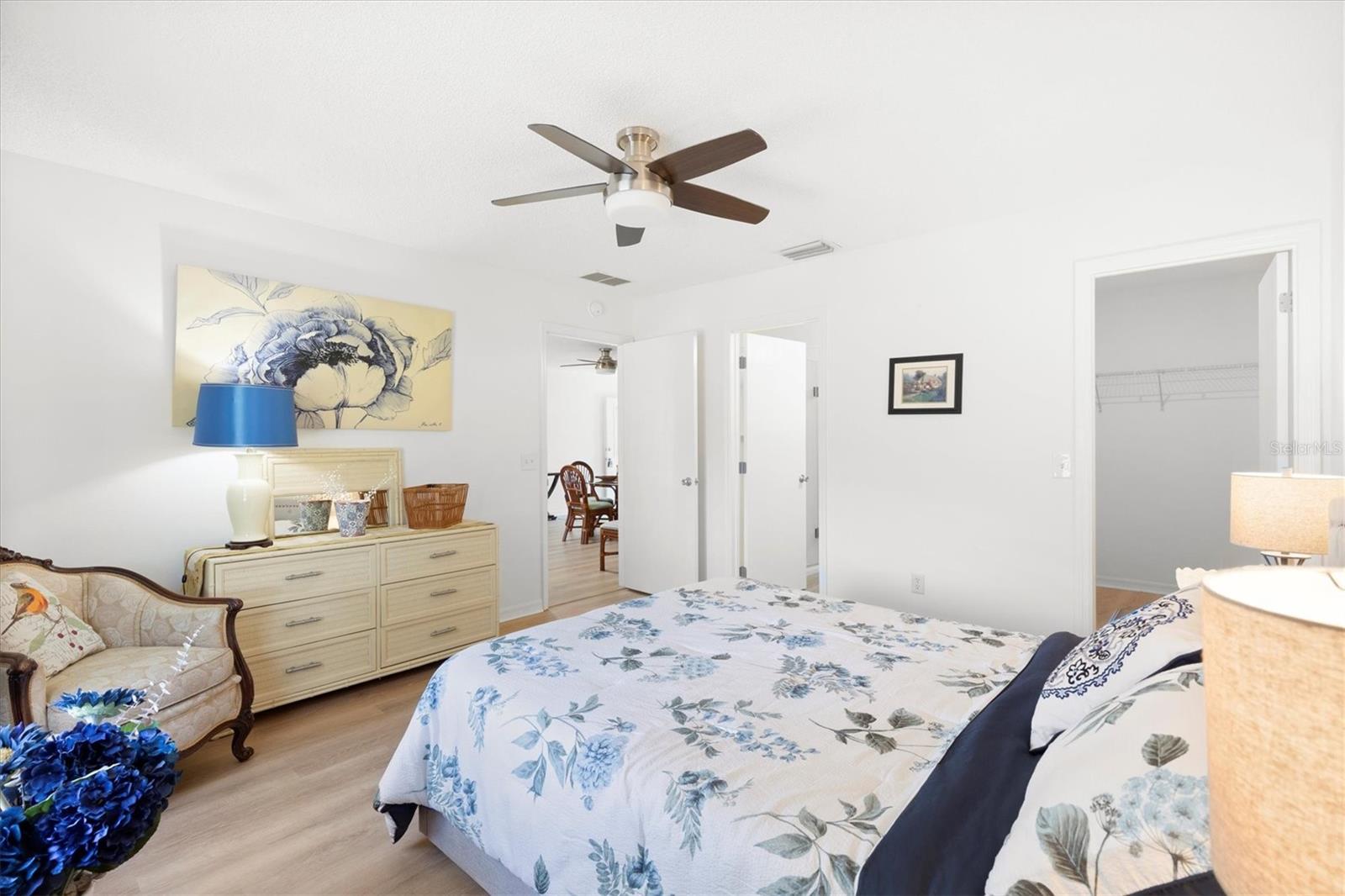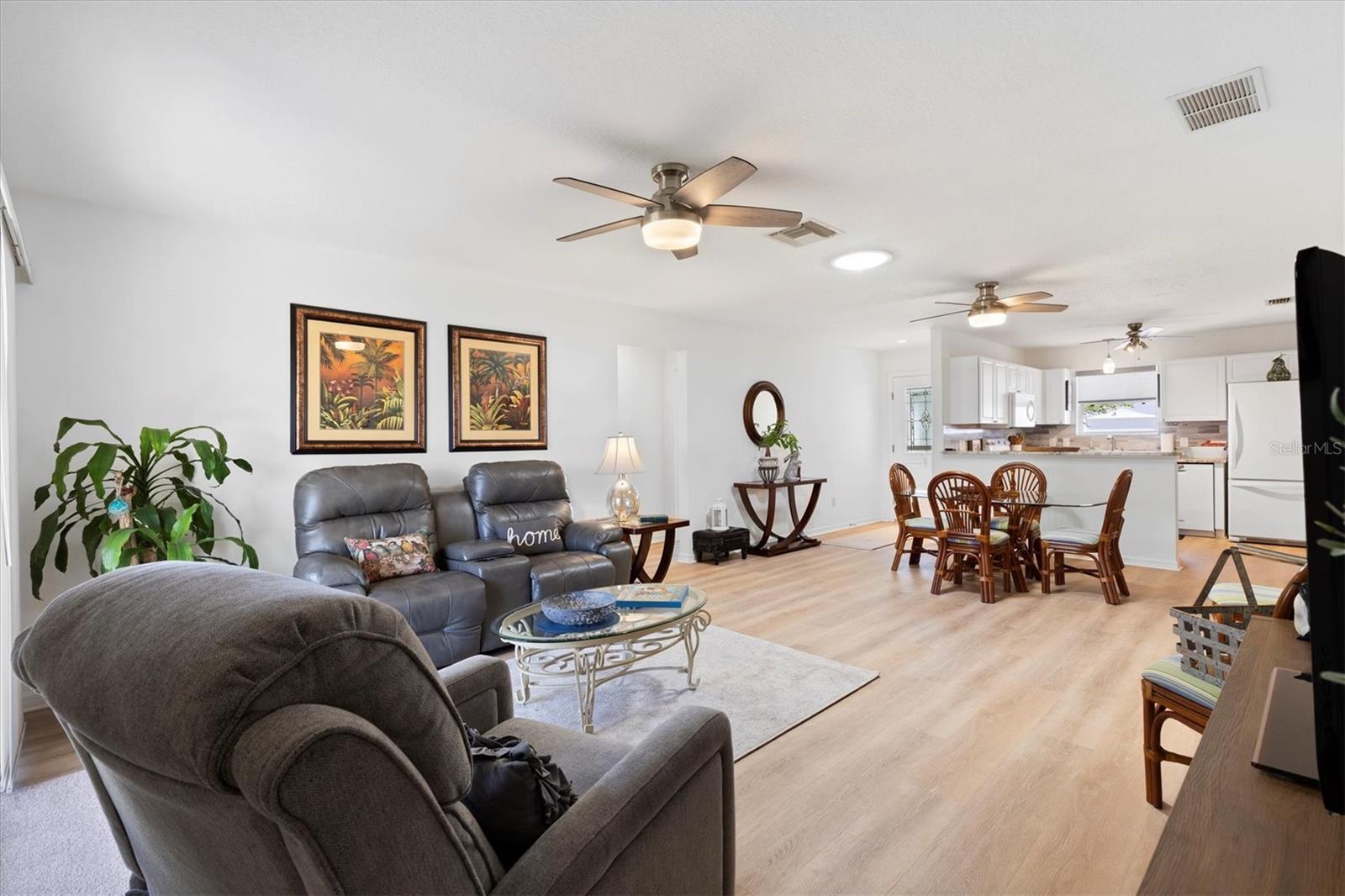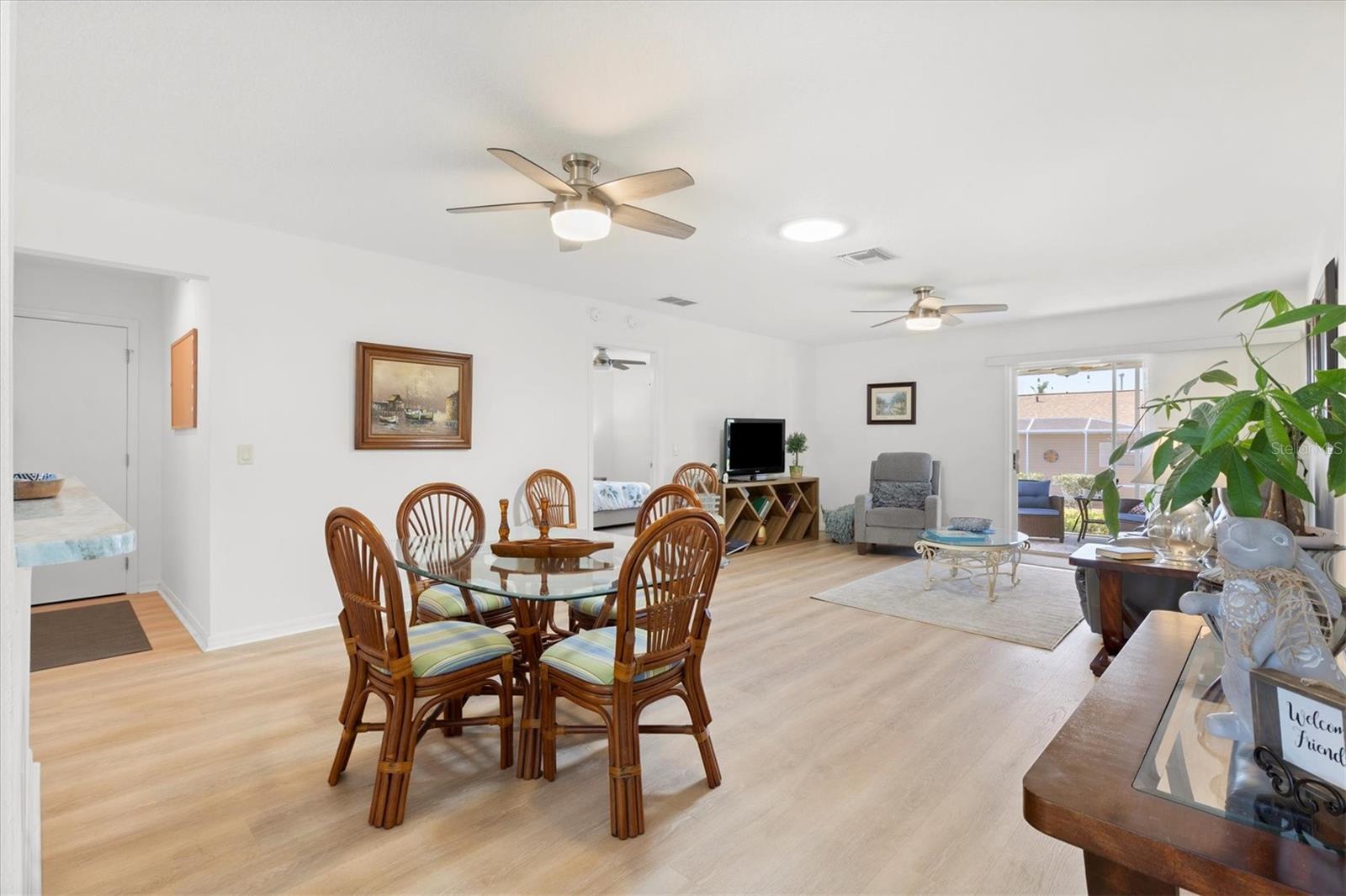 Casa modelo de corpus Christi, com 3 quartos, com 3 quartos, na vila de Woodbury, com belos pisos laminados com aparência de madeira que fluem perfeitamente por toda parte, criando uma atmosfera quente e convidativa. A planta de piso aberta e dividida é perfeita para a vida divertida e cotidiana. A cozinha está equipada com bancadas elegantes de granito, muito armazenamento e prateleiras convenientes, complementadas por uma barra de café da manhã que incentiva refeições casuais. O quarto principal é um verdadeiro retiro, completo com um banheiro privativo, com um chuveiro atualizado com um banco e um generoso closet. Dois quartos de hóspedes compartilham um banheiro bem equipado com uma combinação de chuveiro, um dos quartos não tem um armário. O telhado tem 7 anos de idade, a garagem possui uma porta rastreada que permite a privacidade com a porta da garagem aberta. Aprecie o ar livre sereno com portas deslizantes, levando a um lanai selecionado e, a um passo de um pátio de grelhados, perfeito para churrascos de fim de semana. Destaques adicionais incluem ventiladores de teto com kits leves para maior conforto, tons de todas as janelas para privacidade, um tubo solar adicionando brilho à área de estar e uma garagem de um carro com espaço para um carrinho de golfe, juntamente com instalações de lavanderia convenientemente localizadas na garagem. Os móveis são opcionais, permitindo que você personalize seu novo espaço para o seu gosto. Perto do Springdale Recreation Center and Pool, do Mulberry Regional Rec Center e dos campos de golfe. Mulberry Grove Plaza Shopping Center para atividades, restaurantes e compras estão a poucos minutos. Ligue hoje para agendar sua exibição particular e começar a viver o sonho das aldeias.