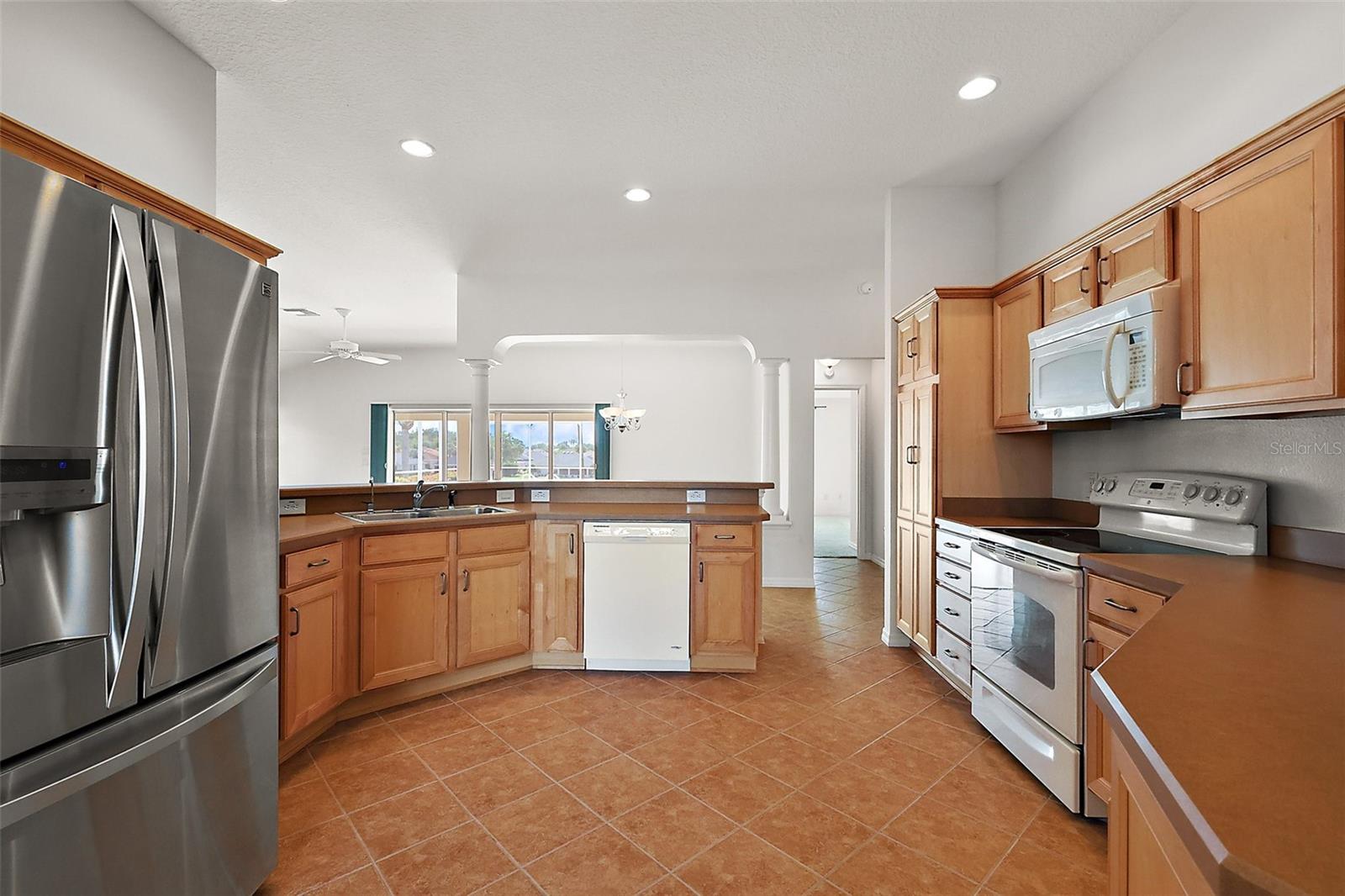 -> Uau! Melhoria de preço de US $ 26k !! Esta impressionante casa de estilista da Gardenia fica em um lote de grandes dimensões, ao lado de um beco sem saída, com 3 quartos (todos com armários), 2 banheiros, uma garagem de 2 carros, além de garagem para carrinho de golfe e uma piscina de 14 'x 30' com uma piscina coberta de uma série de cascata. Entre e fique impressionado com vistas panarâmicas através de portas deslizantes que se abrem para sua linda piscina. A planta baixa oferece espaço e privacidade, com uma generosa suíte primária com um teto de bandeja, armários duplos, um banho banheiro privativo, chuveiro romano e vaidade dupla. A cozinha brilha com armários leves de bordo, puxões, um armário de despensa, recanto do café da manhã, assentos de bar e um sistema de água potável de Kinetico inteira. A principal área de estar e jantar apresenta pisos ricos em madeira de engenharia, e os dois quartos foram pintados na hora. As atualizações adicionais incluem belas persianas de plantação de madeira, tons celulares Hunter Douglas e um deck de piscina recém -pintado. Além disso, a bomba e o regulador da piscina foram substituídos recentemente! Uma garantia doméstica de serviço de fábrica de um ano também está incluída para a paz de espírito do comprador. Novo telhado a caminho! ** Esta casa especial está sendo vendida para beneficiar duas organizações sem fins lucrativos locais: a Sociedade Humane do Condado de Sumter e o Santuário de Resgate de Animais Ameaçados. Não perca esta rara oportunidade de possuir uma casa verdadeiramente única, com vistas inesquecíveis, uma vida ao ar livre incrível e com um propósito emocionante! Esta casa está localizada entre Lake Sumter Landing e Brownwood Paddock Square, perto das conveniências do CR466A, da Colony Plaza com suas compras e restaurantes, o sempre popular Havana Country Club e os muitos campos de golfe e atividades de aldeões nas proximidades. Marque uma consulta hoje!