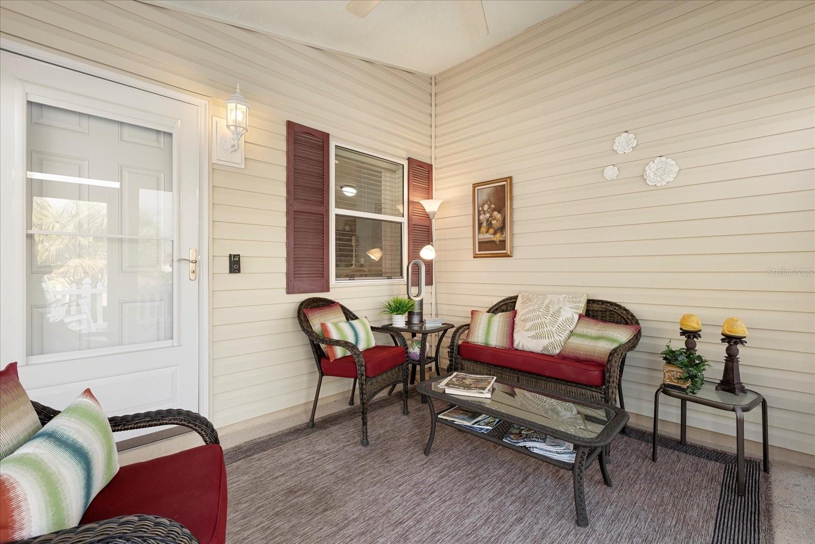 Localização, localização, localização! Pacote parcial da chave na mão disponível !!! Você já ouviu isso antes, mas esta villa do Patio Cabot Cove prova exatamente o que isso significa! Aninhado em um lote privado premium, sem vizinhos traseiros, este villa de garagem de 2Ba/2ba, de 1,5 carros, oferece reclusão e espaço raros para expandir-adivinhar uma gaiola do lado e criar seu próprio oásis. Clique no link de vídeo para ver um vídeo completo desta propriedade incrível! Entre e seja bem-vindo por um lanai fechado no estilo da Flórida, perfeito para relaxar ou cumprimentar os hóspedes. A planta de conceito aberto apresenta pisos de tábuas de luxo por toda parte, tetos abobadados e toneladas de luz natural que fazem a casa parecer brilhante, arejada e convidativa. A cozinha está aberta para as áreas de estar e jantar, completa com uma conveniente bar de café da manhã com assentos para 2. Todo o espaço facilita o entretenimento. Você vai adorar a lavanderia interna com uma lavadora e secadora de tamanho normal e um espaçoso armário de despensa para todas as suas necessidades de armazenamento. A suíte primária é um verdadeiro retiro, com um grande closet, chuveiro de azulejos, bancadas de pedra e acabamentos atualizados. O quarto de hóspedes oferece flexibilidade - ideal como escritório em casa, espaço de artesanato ou local confortável para visitantes noturnos que gostarão de ter seu próprio banho próximo com uma banheira/combo de chuveiro e balcões de pedra. Localizado perto de fazer compras, restaurantes, golfe e todos os melhores das aldeias, esta casa está realmente pronta para a opção de comprar o pacote de móveis de mão alta separadamente-basta trazer sua mala! Ah, e mencionamos o baixo vínculo com uma baixa taxa de juros? Muito desejável versus compra de novo! Não perca a chance de simplesmente se mudar e possuir uma peça privada do paraíso e viver o estilo de vida das aldeias - escaste sua exibição hoje!