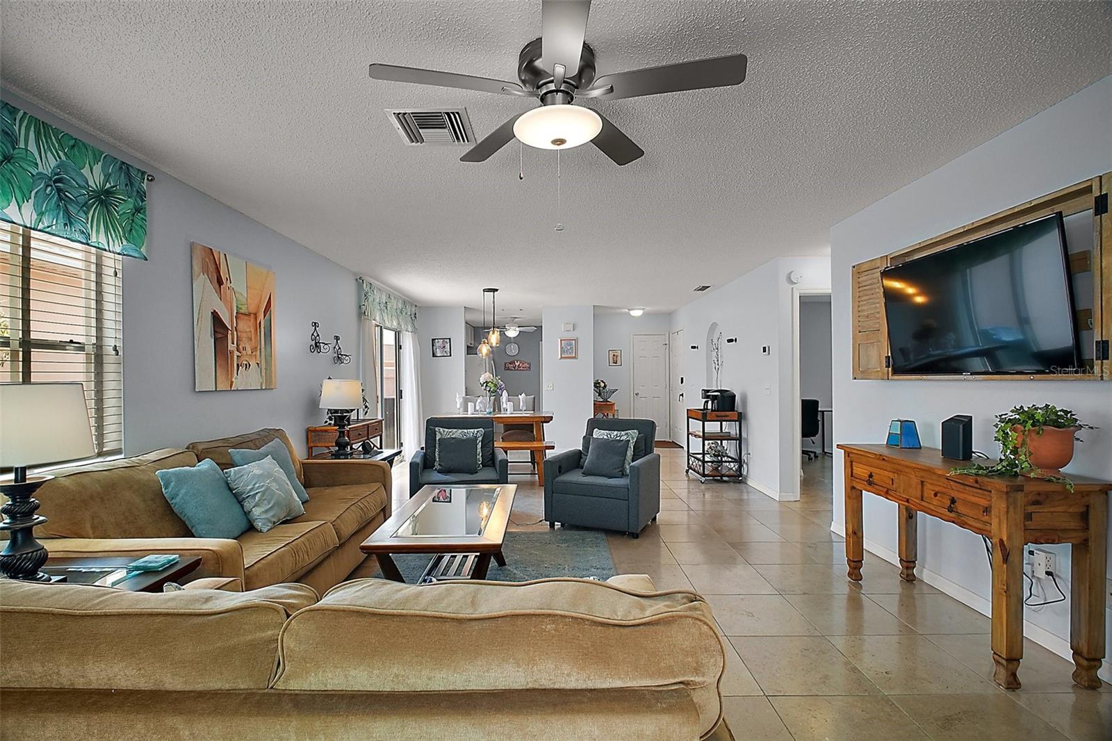 Sem vínculo! Novo telhado e aquecedor de água (2024), novo painel HVAC e elétrico com um carregador para o seu carro elétrico (2025)! Pacote de móveis Opcional e separado! 2 quartos /2 banheiros de baixa manutenção villa em um lote de canto em El Cortez Villas! A uma curta distância ou um passeio de carrinho de golfe muito curto até a Praça da Cidade de Spanish Springs e/ou um passeio de carrinho de golfe de 10 minutos até Lake Sumter Landing. Esteja você procurando um investimento, uma escapada encantadora de meio período ou sua residência em período integral, essa propriedade se encaixa na conta. Cozinha atualizada com balcões de quartzo, novos armários, backsplash elegante, aparelhos mais novos, armário de despensa e fácil acesso à garagem. A planta baixa e brilhante combina as salas de estar/jantar com piso de travertino - estendendo a manutenção fácil e um visual polido elegante em todos os lugares que você vira. O quarto principal se encaixa em uma cama de tamanho king e oferece um banheiro convidativo com chuveiro passo a frente, além de um closet de design personalizado (2025) e fácil acesso através de portas de vidro deslizantes até a varanda fechada. O lanai fechado também pode ser acessado a partir de portas de vidro deslizantes na sala de estar. Confira a área privada e totalmente fechada do pátio com uma nova almofada/design de concreto (2025)- ideal para grelhar com entes queridos, relaxar ao sol, hospedar churrascos de verão ou brincar com seus amigos peludos também. A vila de El Cortez está convenientemente localizada perto de todas as suas necessidades diárias de compras, médicos e bancários. Os moradores também gostam de passar um tempo no Chula Vista Club - um ótimo local para relaxar a beira da piscina - ou jogar bocha, shuffleboard, pickleball e tênis. Os golfistas apreciam a rápida viagem a qualquer um dos dois campos de golfe executivos, o campo de Mira Mesa, apenas para residente, e o vizinho Chula Vista Course.