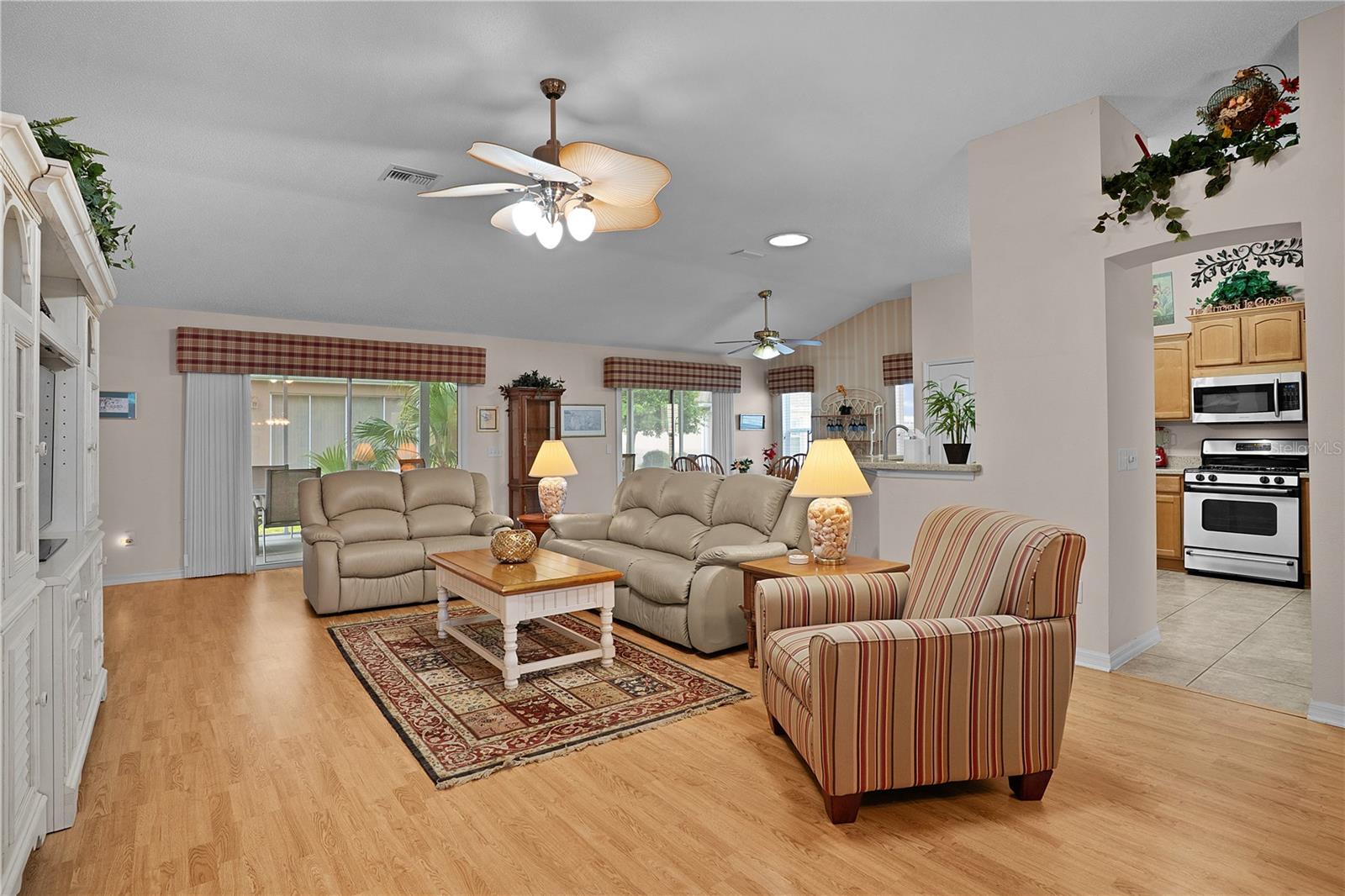 Preço de venda! Mova -se direto e comece a desfrutar do estilo de vida das aldeias imediatamente! Este designer de zimbro de 3/2 bem conservado está sendo vendido! Situado na altamente desejável vila de Bonnybrook, essa beleza totalmente mobiliada é decorada com bom gosto e pronta para um fechamento rápido! Esta popular casa de 3 quartos, 2 banheiros (mesmo layout no Lantana), é apenas um passeio de carrinho de golfe curto até Lake Sumter Landing, várias piscinas, centros de recreação, campos de golfe e grandes áreas comerciais. À medida que você se aproxima, você primeiro notará o atraente apelo do meio -fio ... e, ao entrar, você será recebido nesta planta baixa e brilhante com tetos abobadados e 3 tubos solares que enchem a casa com luz natural. A espaçosa cozinha é uma delícia de chef com bancadas de quartzo, eletrodomésticos inoxidáveis, gama de gás natural, armários de bordo intensificados, despensa de armário, área de lanchonete e uma barra de café da manhã-perfeita para entretenimento. As áreas de estar e jantar de conceito aberto oferecem arranjo de móveis flexíveis, enquanto duas portas deslizantes levam a uma Lanai, voltada para o sul, com telas de privacidade (você pode ver, mas não para) e um pátio ao ar livre privado-ideal para relaxar ou grelhar. A suíte primária oferece um refúgio luxuoso com uma banheira de jato, chuveiro de ladrilhos, pias duplas, vaidade de maquiagem e um closet extra grande. Seus convidados desfrutarão de sua privacidade com dois quartos adicionais - um superdimensionado - junto com um banho de hóspedes completo. Não há necessidade de sacrificar um quarto para um espaço de trabalho - o deles é uma espaçosa lavanderia interna com amplo espaço para um escritório em casa, espaço artesanal ou retiro aconchegante. Recursos interiores adicionais incluem piso laminado nas principais áreas de estar, ladrilhos nas áreas úmidas, carpete nos 3 quartos, 3 tubos solares, persianas, tons e tratamentos de janelas. A garagem de grandes dimensões vem completa com escadas do sótão, bancada e uma geladeira extra. Não se preocupe - o telhado foi substituído em 2019, o HVAC em 2017 e o aquecedor de água é 2013. A linha de impostos reflete apenas os impostos sobre a propriedade. A linha CDD reflete a combinação de títulos anuais, manutenção e distrito de bombeiros. O baixo saldo de títulos é de US $ 4.421,93. Não perca esta oportunidade-feche rápido disponível e se mova pronto! Então, o que você está esperando? Se não agora, quando ??? Este não vai durar!