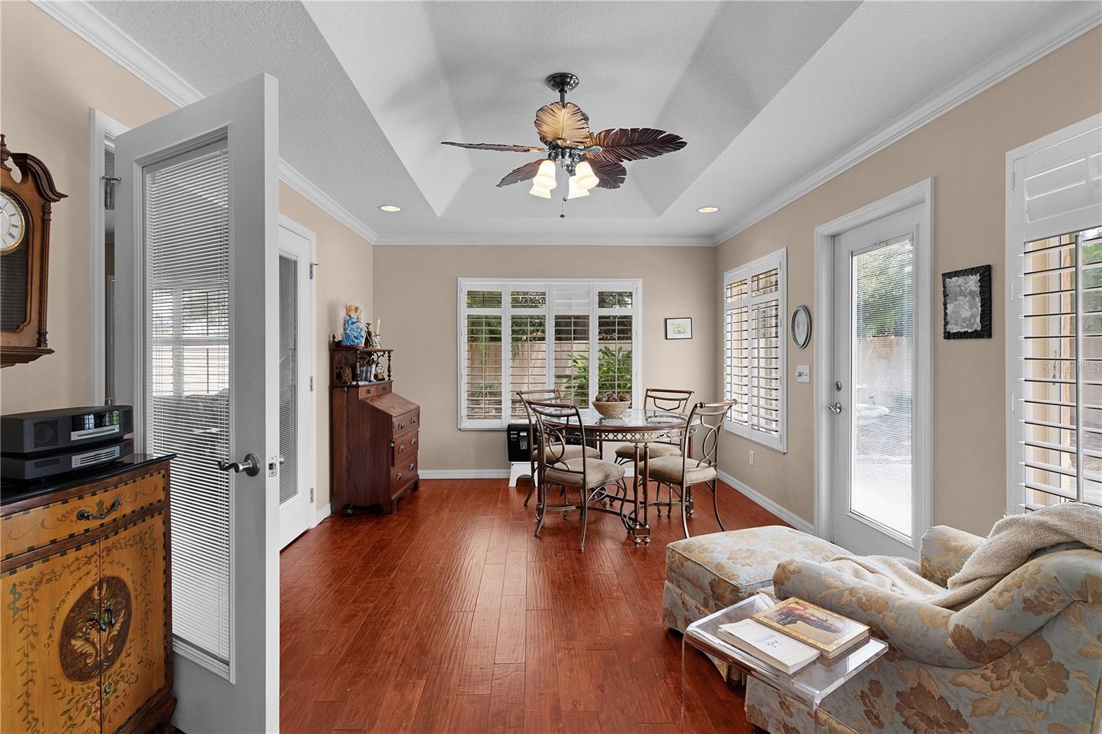 ~ Sem vínculo ~ ~ 2025 aquecedor de água quente ~ ~ persianas de plantação ~ ~ pacote turnkey disponível ~ Este 2/2 expandido El Dorado Courtyard Villa em Spanish Springs, Chula Vista Villas oferece privacidade, estilo e atualizações inteligentes! Esta villa de pátio lindamente mantida está perfeitamente situada com um quintal de murado privado, paisagismo rochoso de baixa manutenção e espaço para a pavimentação ao ar livre (frente e costas) ideal para relaxar ou divertir. Entre para encontrar um armário de casaco e pisos de ladrilhos de cerâmica nas áreas de entrada, jantar e cozinha, com piso de madeira projetada na sala de estar, sala de jantar, sala da Flórida e quarto primário. A espaçosa sala de estar e sala de jantar apresenta persianas, molduras de coroa, ventiladores de teto e tons ricos e quentes, perfeitos para hospedar hóspedes em conforto e estilo. A cozinha possui novas bancadas de Corian, uma despensa de armário, ladrilhos de cerâmica e um ventilador de teto atualizado, criando um espaço brilhante e funcional. Retire para a suíte primária aumentada com um teto iluminado por bandeja dupla, moldagem por coroa, ventilador de teto atualizado, closet de enormes e grandes dimensões com centro de ferro embutido e um banho de banheiro com bancadas de granito, armários atualizados e um chuveiro de vidro em azulejo com portas de vidro. Há também um aquecedor de água quente separado de 2008 dedicado apenas ao banho primário. Seus convidados desfrutam de um quarto quarto confortável com um armário embutido e acesso a um banheiro de hóspedes bem equipado com bancadas em granito, armários atualizados e uma combinação de banheira/chuveiro com portas de vidro. Destaques adicionais incluem uma sala da Flórida com pisos de madeira projetada, teto de bandeja, persianas, molduras de coroa, ventilador de teto atualizado e acesso direto ao ar livre, além de uma garagem de 1-1/2 com armários de armazenamento de grandes dimensões e uma porta de tela elétrica. A área traseira é toda pavimentadora com camas de plantas, incluindo uma fonte de trabalho! Este verifica todas as caixas quanto ao estilo, função e conforto - tudo sem vínculo! 2015 telhado e 2009 hvac. Pacote Turnkey disponível! Há também persianas de furacões disponíveis, localizadas na garagem. Você está perto do Chula Vista Rec Center e da Rio Grande Family Pool, e está a poucos minutos da Praça da Cidade de Spanish Springs com compras, jantar, golfe e muito mais!