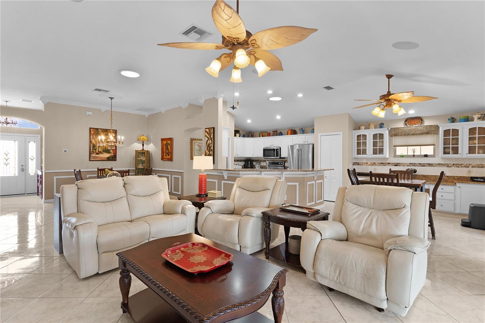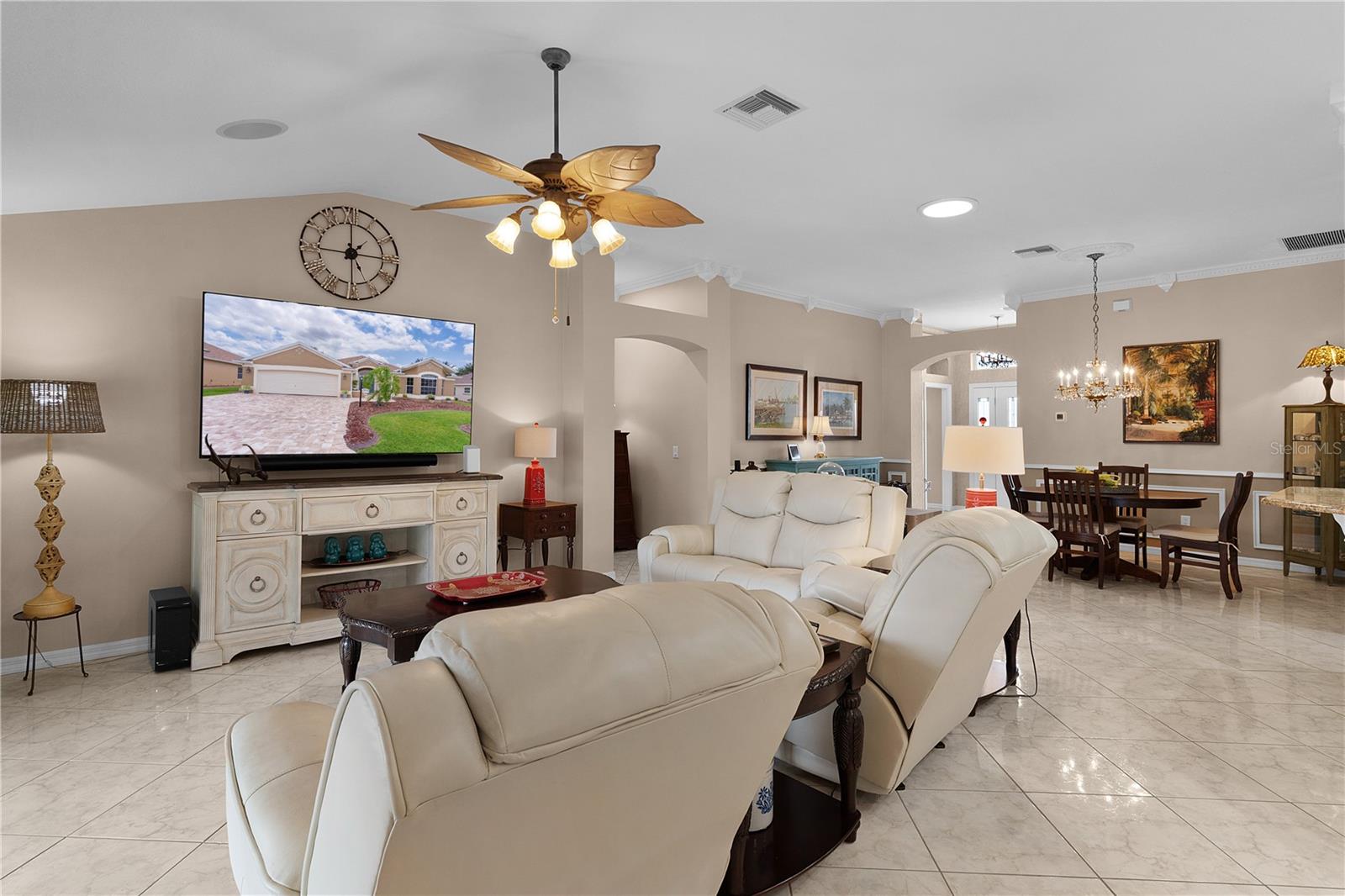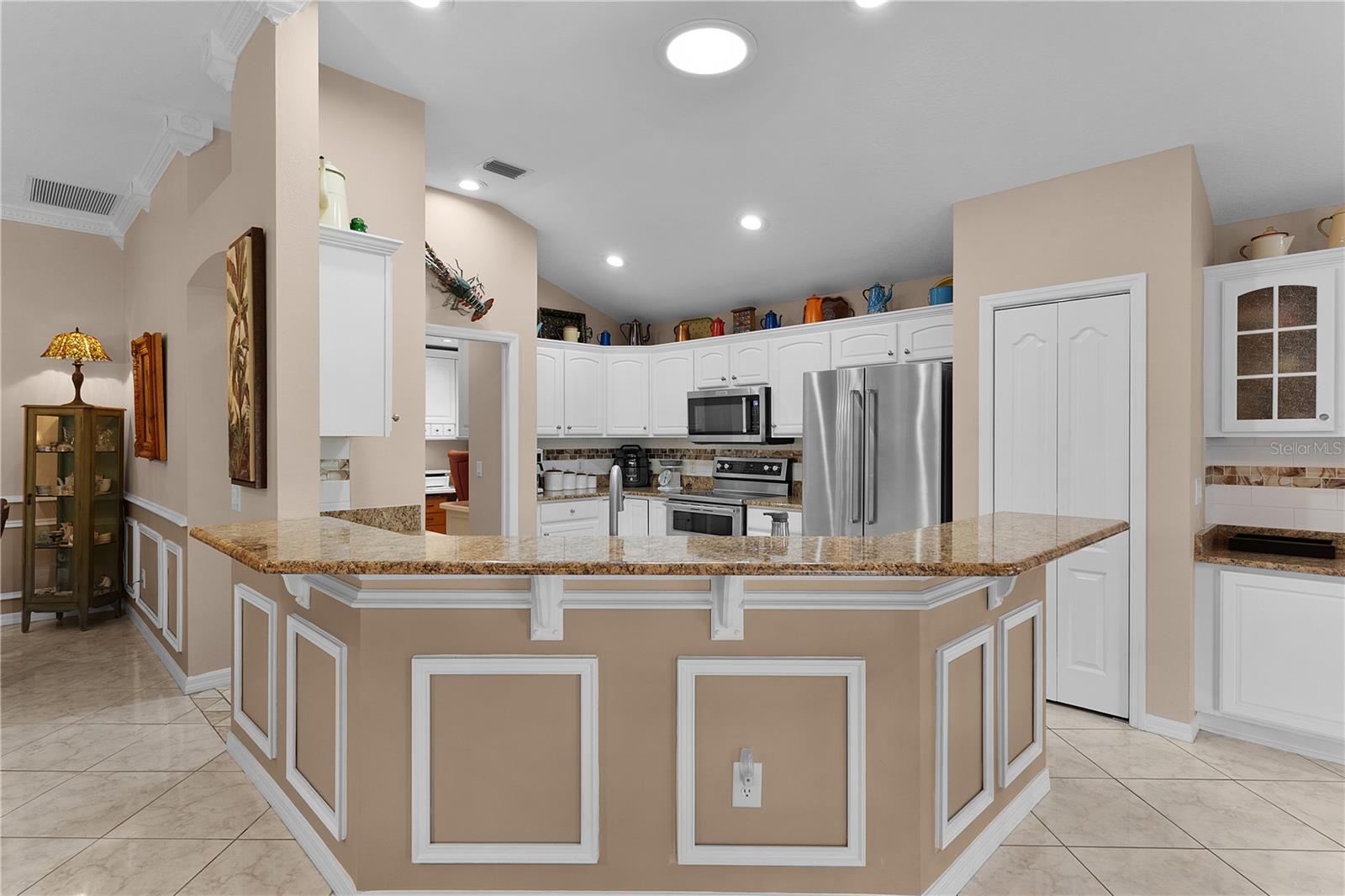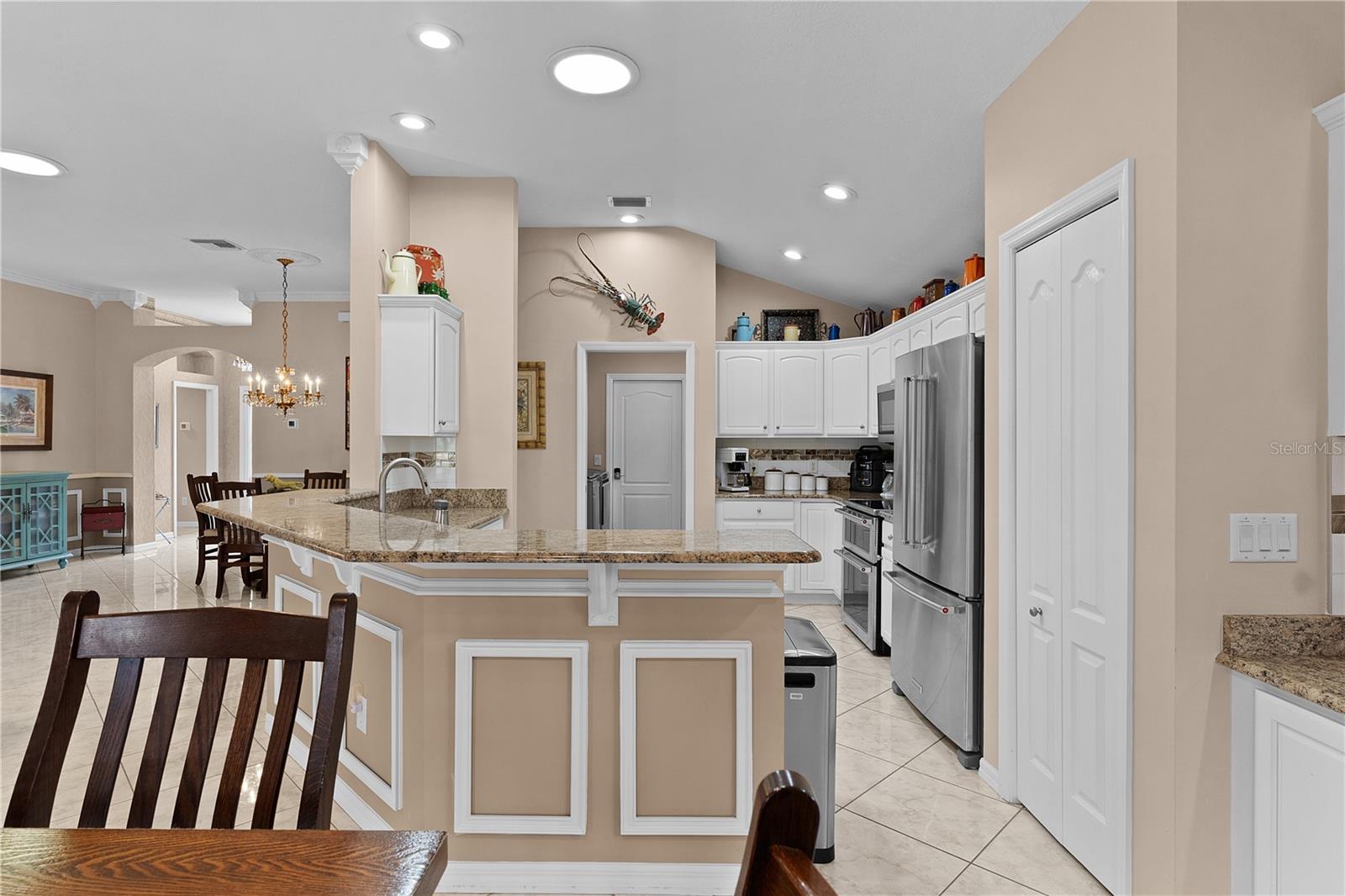 Campo de golfe espetacular com piscina de água salgada e spa em Palo Alto | As aldeias, a maior comunidade do mundo mais de 55! Bem-vindo à sua casa dos sonhos-colocando no 1º buraco do lendário campo de golfe do campeonato Tierra Del Sol, este meticulosamente mantido em 3 quartos e 2 banheiros oferece 2.215 pés quadrados de luxo que vivem por dentro e por fora. Desde o momento em que você chega, a garagem da pavimentadora de tijolos, o pátio da frente e a nova porta da frente com luzes laterais deram o tom para o que está dentro: elegância, atualizações e vistas inesquecíveis. Entre em um hall de entrada com piso de azulejo com embutido personalizado, levando a uma espaçosa grande sala com uma área de jantar formal, e a sala de estar emoldurada por novas valências e uma vista deslumbrante. A cozinha gourmet impressionará até os chefs mais exigentes com bancadas em granito, novos utensílios de aço inoxidável, forno duplo, armários leves, belas backsplash personalizadas e uma cozinha cozida aconchegante com armazenamento adicional é perfeito para refeições casuais. Precisa de um espaço de trabalho? O escritório embutido da cozinha é funcional e elegante e também funciona como uma lavanderia interna. Sua espaçosa suíte primária é um verdadeiro retiro com piso de madeira rico, moldagem ornamentada da coroa, um closet com organizadores personalizados e uma luxuosa suíte com um chuveiro fechado de vidro com nova cabeça de chuveiro, armário de água privado e muito mais. Dois quartos espaçosos de hóspedes e um banho de hóspedes completo com combinação de banheira/chuveiro e uma nova cabeça de chuveiro para garantir o conforto para os visitantes. As atualizações continuam com um piso de garagem com acabamento epóxi, armários de garagem embutidos, pia da bacia, três novos termostatos programáveis, alto-falantes de som surround por dentro e por fora e novos ventiladores de teto por toda parte. Desfrute da Flórida que vive o seu melhor em sua ampla Lanai e gaiola, com vista para uma piscina e spa de água salgada brilhante - o lugar perfeito para relaxar, entreter ou simplesmente mergulhar na vista. Outros recursos de destaque incluem interior e exterior recém-pintados, tetos de pipoca removidos, janelas re-talhas e grama fresca. Perto de Tierra del Sol Country Club, Spanish Springs e Lake Sumter Landing, você estará no local privilegiado com acesso ao carrinho de golfe a tudo o que precisa! Esta casa é imaculada, elegante e pronta para serem prontas-muito imperdível! Sem vínculo !! Novo aquecedor de água quente, o telhado é 2020, a/c é 2017