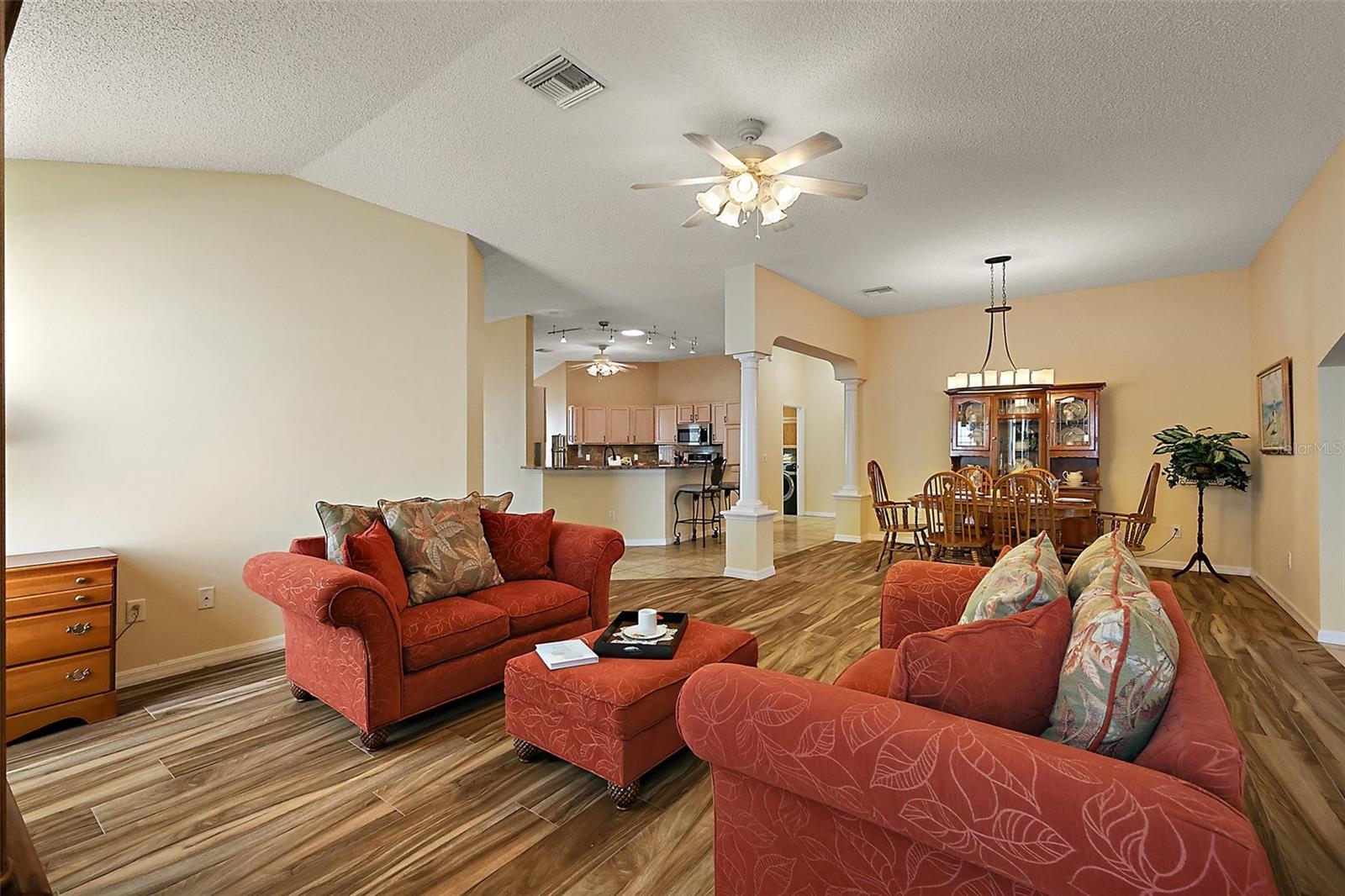 Bem -vindo a esta encantadora Camellia expandida 3/2 no coração da vila de Bonnybrook. Com pouco mais de 2.200 pés quadrados, esta casa possui uma sala de 20x17 da Flórida, sem carpete, bancadas de granito, painéis solares para economia mensal de energia e muito, muito mais! Novo telhado (2021)! A poucos minutos de pontos populares como Lake Sumter Landings, Spanish Springs Town Square e Brownwood Paddock Square, esta casa o coloca no coração de tudo. Ao chegar à casa, você é recebido por uma garagem de pavimentação, camas de paisagismo empilhadas cheias de plantas exuberantes da Flórida e uma porta da frente com uma inserção de vidro personalizada e uma luz lateral, criando um apelo quente e acolhedor. Ao entrar na casa, observe os tetos altos, acabamentos personalizados e piso plano aberto. As salas de estar e jantar oferecem o espaço perfeito para entretenimento, com fácil acesso à sala da Flórida. A cozinha possui um recanto de café da manhã aconchegante e inclui uma barra de café da manhã, bancadas de granito personalizadas e backsplash, utensílios de aço inoxidável, alcance de gás, despensa, prateleiras de retirada, iluminação de gabinete e um tubo solar para a luz natural adicional. Entre na espaçosa sala de 20x17 da Flórida, com uma entrada em arco, ventiladores de teto duplo, uma mesa embutida com bancadas em granito, uma porta que leva ao quintal e uma porta de vidro deslizante que se abre para o pátio. A suíte primária oferece dois armários, tetos com pico e um banho privativo em suíte. Um arco elegante leva ao suíte EN, que inclui vaidades divididas com bancadas de granito estendidas, um chuveiro com porta de vidro de 3/8 ", piso de rocha do rio, banco de canto, paredes de azulejos e pulverizadores de chuveiro atualizados. Rellower de um banheiro e a banheira é ideal para um gabinete em casa. Tornando-o com os visitantes. Bonnybrook, perto de várias comodidades locais, incluindo a piscina de Bonnybrook, a piscina de Ashland, as quadras de tênis da Churchill Street e os centros de recreação, a piscina de Lynnhaven, o Pimlico Recreation Center, o Winifred Rec Area e o Summets Pool de Summets. (5,5 milhas) e Brownwood Paddock Square (6,8 milhas), tornando -o um local super central e conveniente.