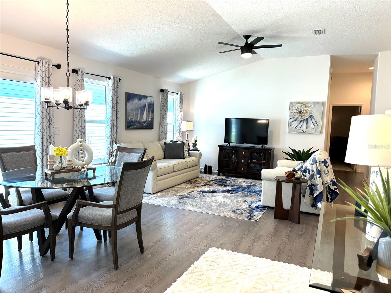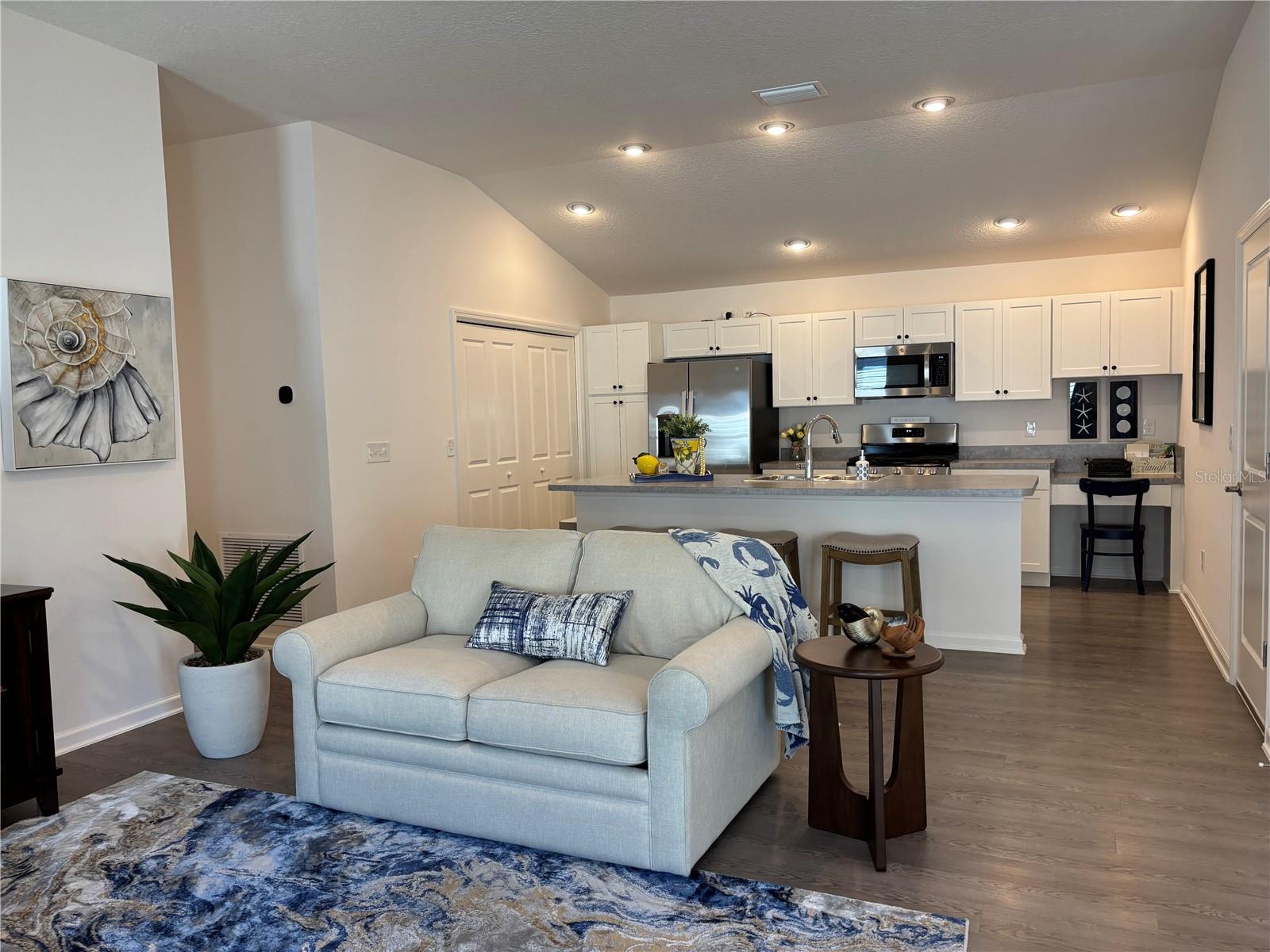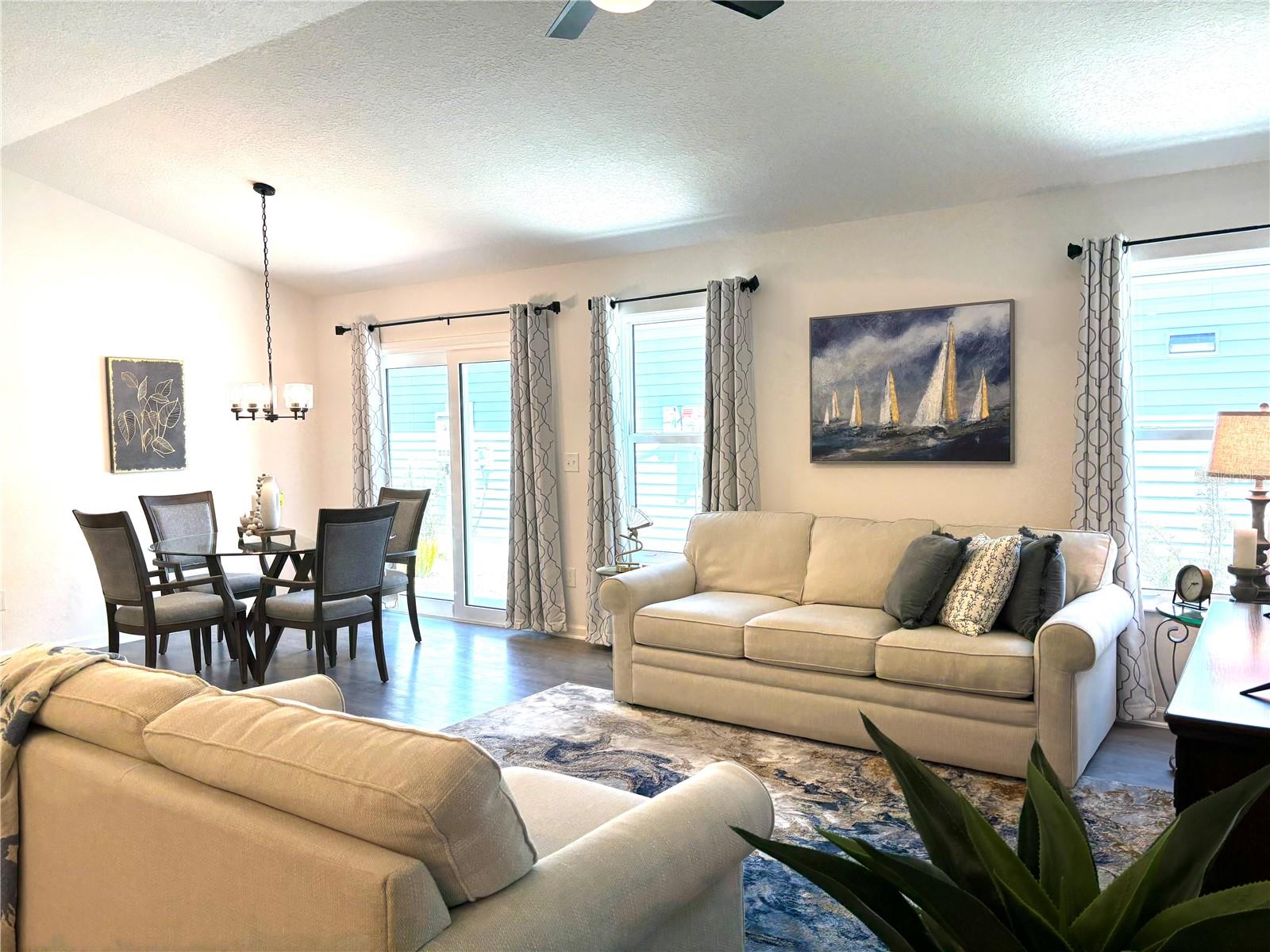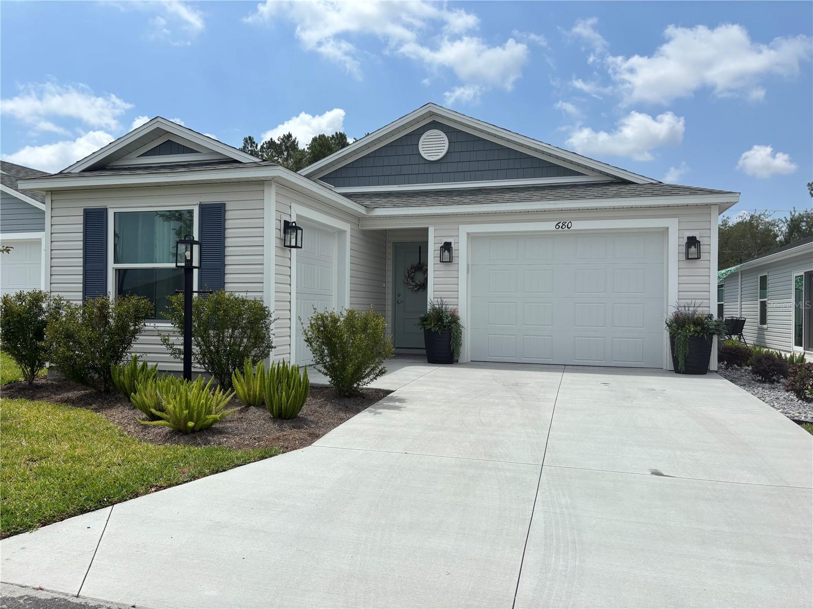 Esta bela vila do pátio fica na vila popular de Dabney, nas aldeias e a uma curta distância da piscina comunitária. A casa foi construída em 2024 e é o modelo de esmeralda. Você vai adorar a casa decorada com bom gosto com tetos de volume, ventiladores de teto, iluminação embutida, piso de prancha e planta baixa aberta. A cozinha branca oferece aparelhos GE, incluindo geladeira lado a lado com fabricante de gelo, fogão a gás/forno, microondas e lava-louças. Há muitos armários, área de despensa, mesa embutida e ilha grande com pia dupla em aço inoxidável. O armário de lavanderia inclui uma nova lavadora e secadora de Whirlpool. A suíte primária oferece uma cama de tamanho king e um suíte com vaidades duplas, chuveiro grande e armário espaçoso. Há mais dois quartos com novas camas queen -size. O terceiro quarto é perfeito para hóspedes extras ou um escritório em casa. Esta vila do pátio é uma das maiores sob o ar com 1.453 pés quadrados. A garagem acabada do carrinho de golfe (10'2 "x9'8") oferece uma pia de utilidade e abridor de porta de garagem com entrada remota. A garagem de um carro (13'5 "x20'1") está concluída, tem abridor de porta de garagem com entrada remota. Além disso, a área de estar ao ar livre é o lugar perfeito para uma grelha e entretenimento ao ar livre. Esta casa totalmente mobiliada está pronta para você ligar para casa e shows como um modelo. Você não ficará desapontado com essa beleza.