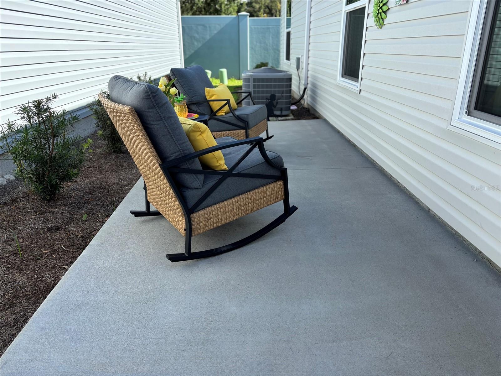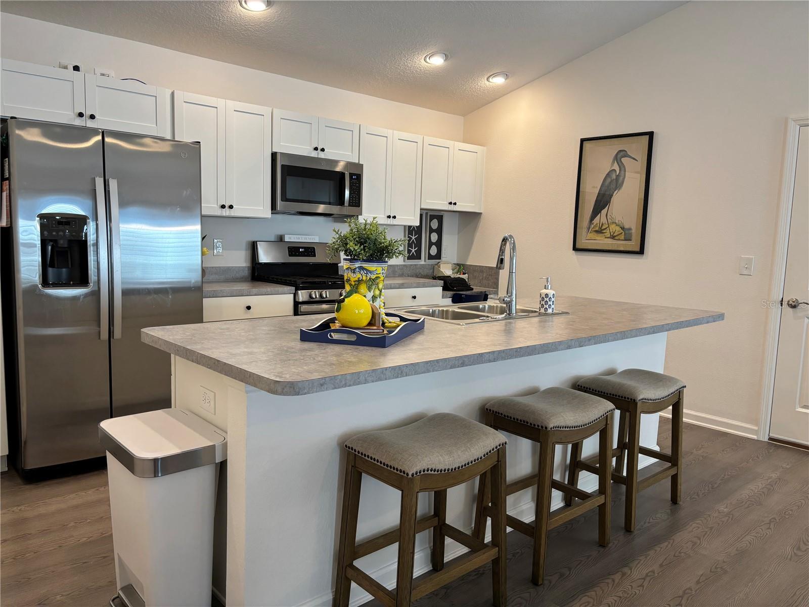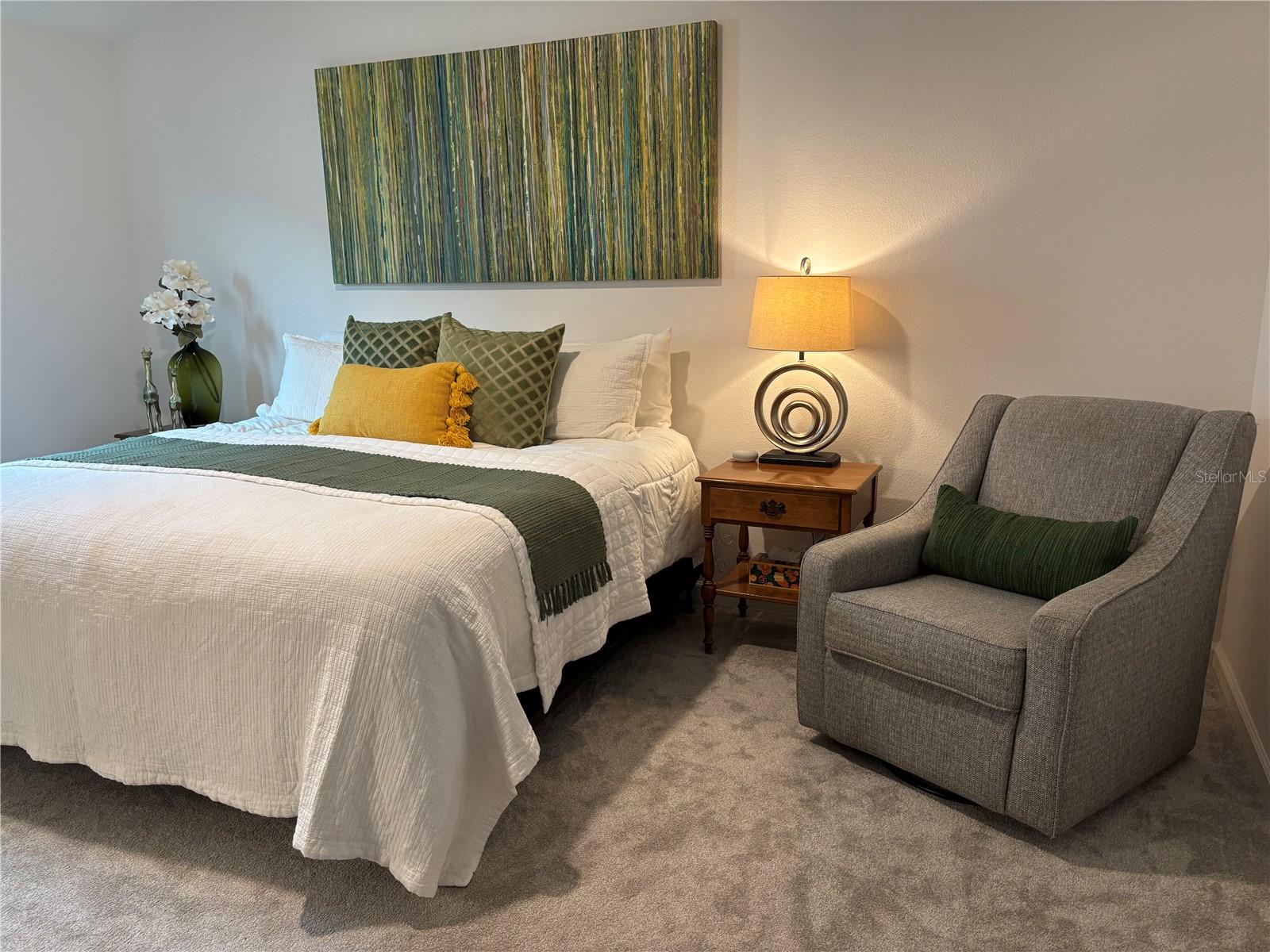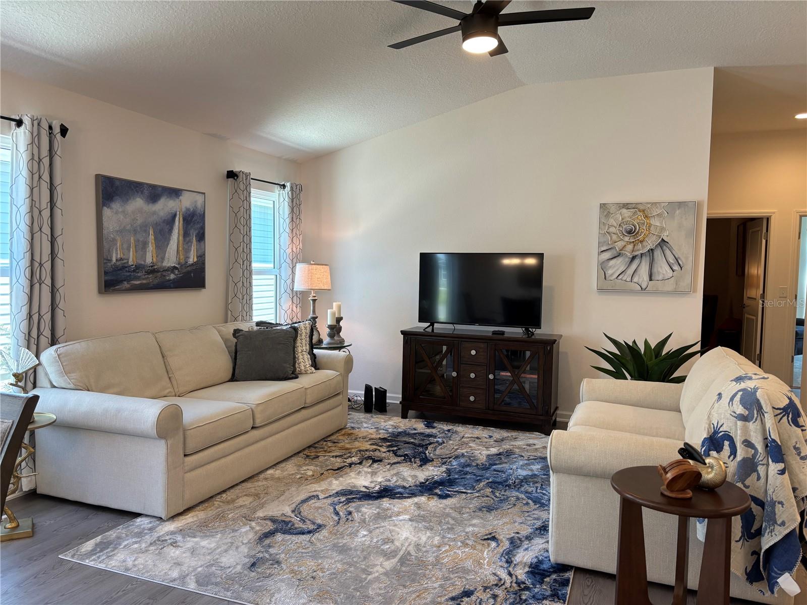 Esta bela vila do pátio fica na vila popular de Dabney, nas aldeias e a uma curta distância da piscina comunitária. A casa foi construída em 2024 e é o modelo de esmeralda. Você vai adorar a casa decorada com bom gosto com tetos de volume, ventiladores de teto, iluminação embutida, piso de prancha e planta baixa aberta. A cozinha branca oferece aparelhos GE, incluindo geladeira lado a lado com fabricante de gelo, fogão a gás/forno, microondas e lava-louças. Há muitos armários, área de despensa, mesa embutida e ilha grande com pia dupla em aço inoxidável. O armário de lavanderia inclui uma nova lavadora e secadora de Whirlpool. A suíte primária oferece uma cama de tamanho king e um suíte com vaidades duplas, chuveiro grande e armário espaçoso. Há mais dois quartos com novas camas queen -size. O terceiro quarto é perfeito para hóspedes extras ou um escritório em casa. Esta vila do pátio é uma das maiores sob o ar com 1.453 pés quadrados. A garagem acabada do carrinho de golfe (10'2 "x9'8") oferece uma pia de utilidade e abridor de porta de garagem com entrada remota. A garagem de um carro (13'5 "x20'1") está concluída, tem abridor de porta de garagem com entrada remota. Além disso, a área de estar ao ar livre é o lugar perfeito para uma grelha e entretenimento ao ar livre. Esta casa totalmente mobiliada está pronta para você ligar para casa e shows como um modelo. Você não ficará desapontado com essa beleza.