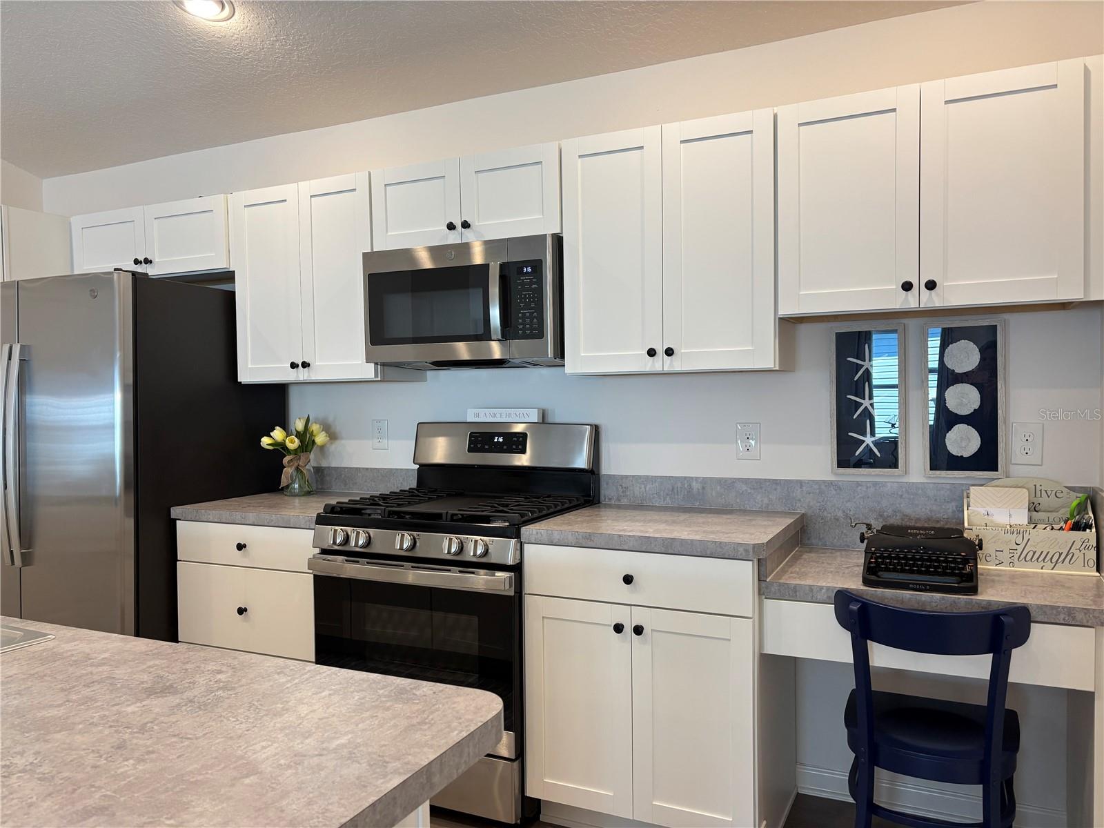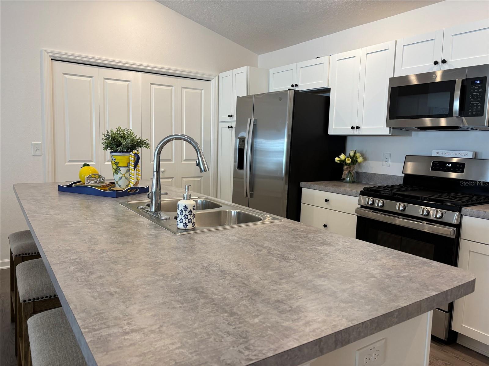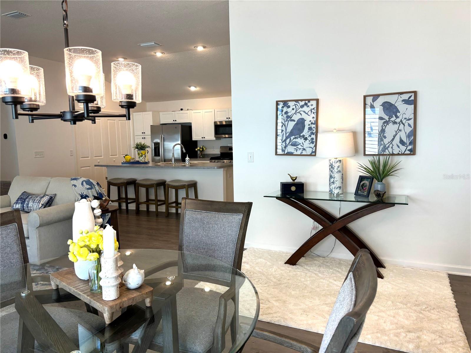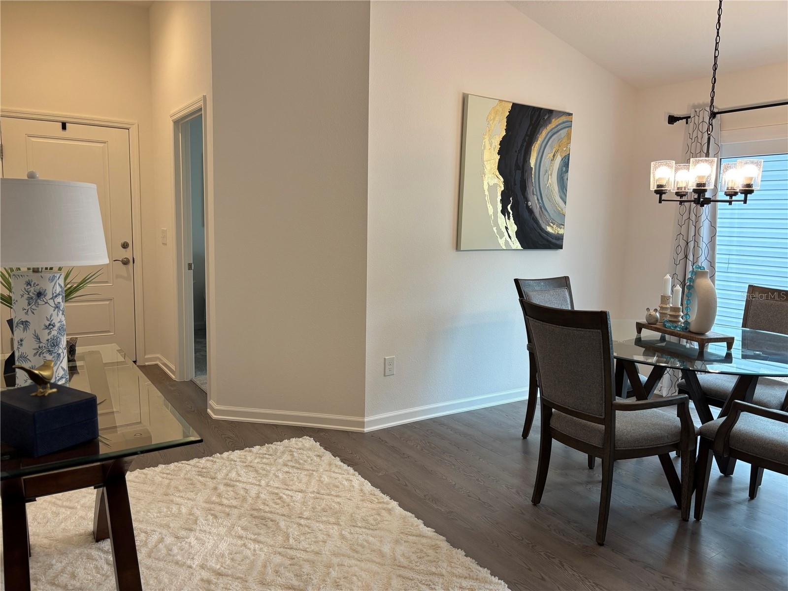 Esta bela vila do pátio fica na vila popular de Dabney, nas aldeias e a uma curta distância da piscina comunitária. A casa foi construída em 2024 e é o modelo de esmeralda. Você vai adorar a casa decorada com bom gosto com tetos de volume, ventiladores de teto, iluminação embutida, piso de prancha e planta baixa aberta. A cozinha branca oferece aparelhos GE, incluindo geladeira lado a lado com fabricante de gelo, fogão a gás/forno, microondas e lava-louças. Há muitos armários, área de despensa, mesa embutida e ilha grande com pia dupla em aço inoxidável. O armário de lavanderia inclui uma nova lavadora e secadora de Whirlpool. A suíte primária oferece uma cama de tamanho king e um suíte com vaidades duplas, chuveiro grande e armário espaçoso. Há mais dois quartos com novas camas queen -size. O terceiro quarto é perfeito para hóspedes extras ou um escritório em casa. Esta vila do pátio é uma das maiores sob o ar com 1.453 pés quadrados. A garagem acabada do carrinho de golfe (10'2 "x9'8") oferece uma pia de utilidade e abridor de porta de garagem com entrada remota. A garagem de um carro (13'5 "x20'1") está concluída, tem abridor de porta de garagem com entrada remota. Além disso, a área de estar ao ar livre é o lugar perfeito para uma grelha e entretenimento ao ar livre. Esta casa totalmente mobiliada está pronta para você ligar para casa e shows como um modelo. Você não ficará desapontado com essa beleza.