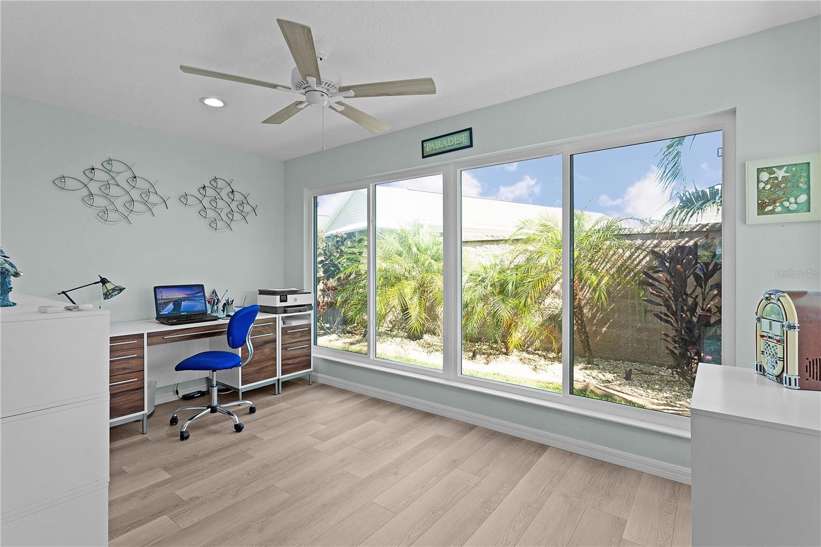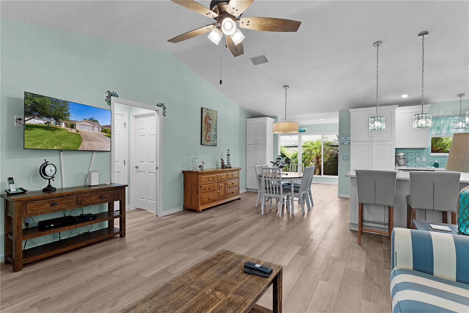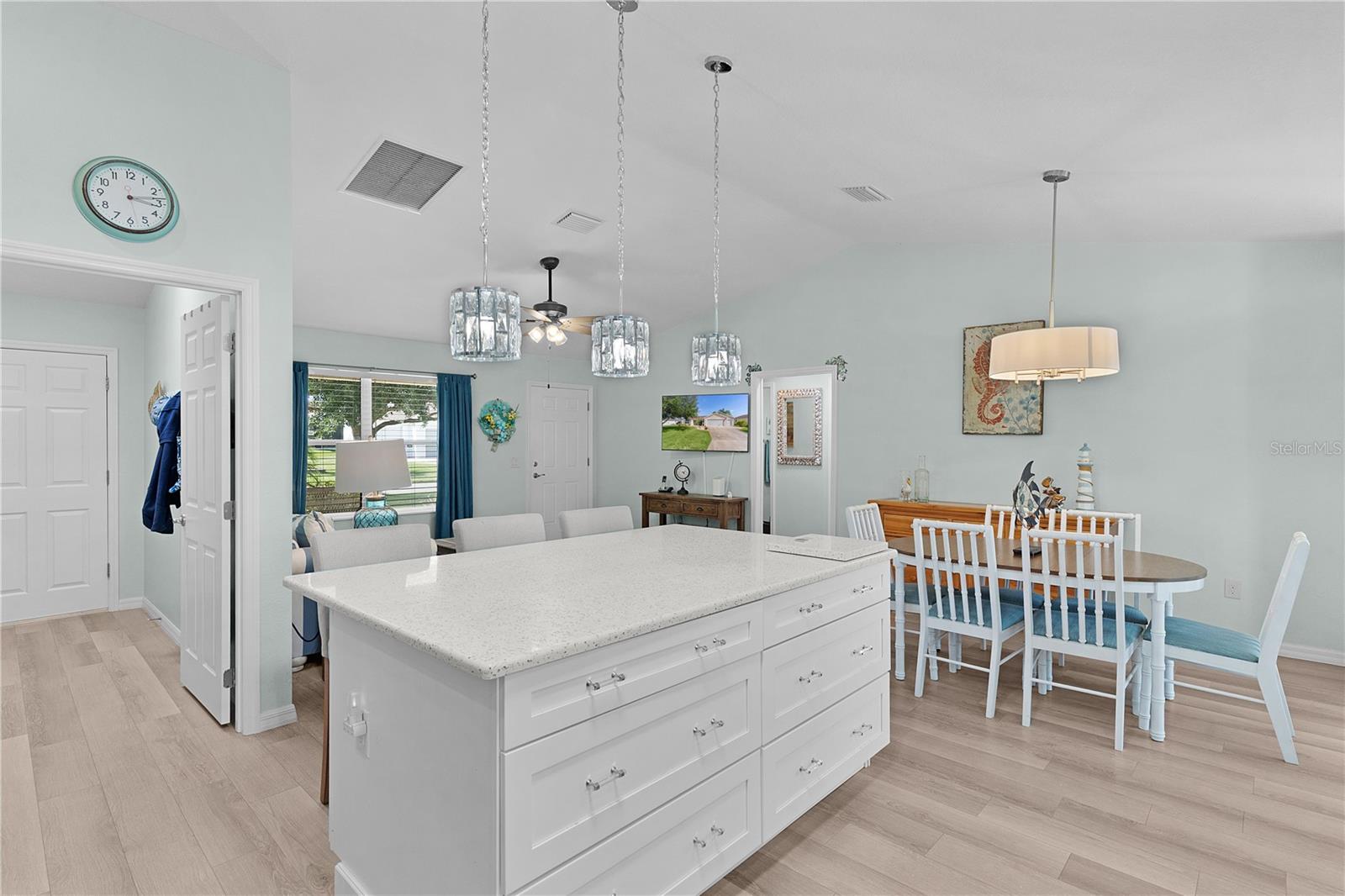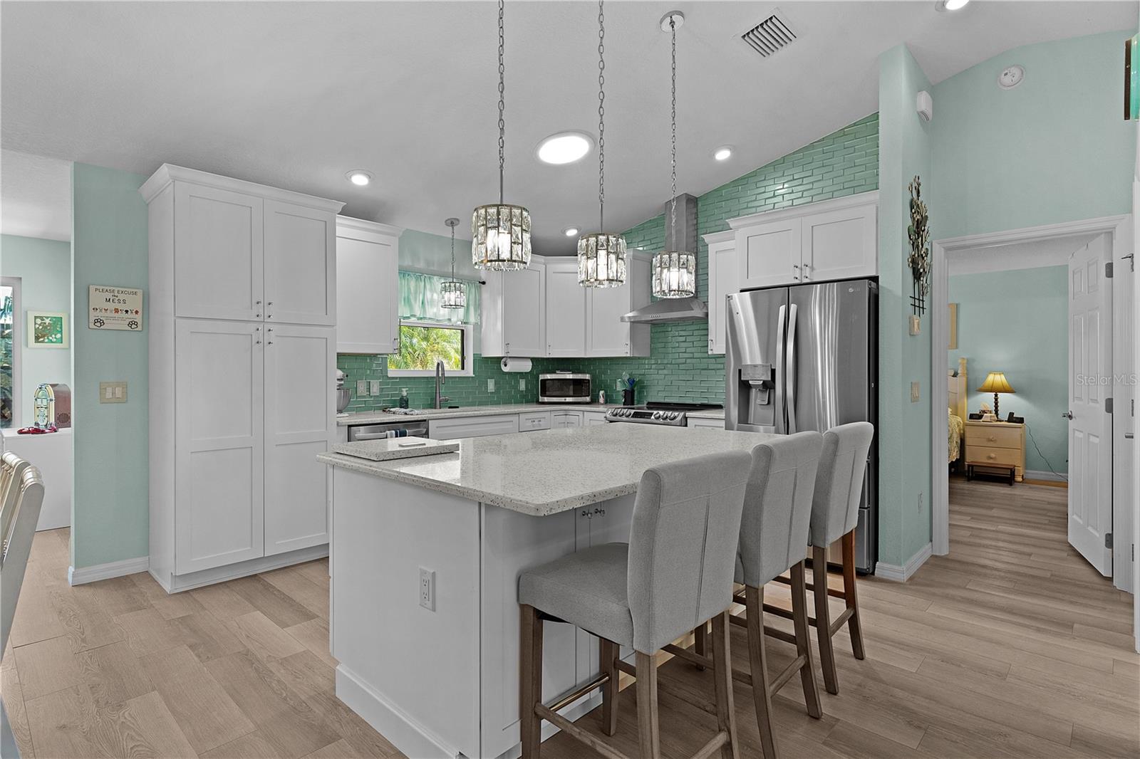 ~ 2023 Aquecedor de água de telhado-HVAC-HOT ~ ~ Bancadas de quartzo ~ ~ Garagem para carrinho de golfe ~ ~ 2 armários personalizados ~ Este modelo beijado de sol 3/2 lindamente atualizado na desejável vila de Sanibel oferece recursos excepcionais e acabamentos modernos por toda parte. Entre na prancha de vinil de luxo que flui perfeitamente, complementada por tetos altos e abobadados e luz natural abundante, incluindo tubos solares na cozinha, corredor de hóspedes e lavanderia. A sala possui um ventilador de teto atualizado e a porta dos quartos foi estendida para caber em uma TV naquela parede. A área de jantar mostra iluminação atualizada e armazenamento interno extra. A cozinha gourmet possui armários atualizados com lançamentos, utensílios de aço inoxidável LG, backsplash de ladrilhos deslumbrantes, bancadas de quartzo, uma grande ilha com iluminação pendente e um tubo solar para brilho natural. A suíte primária inclui um closet personalizado e um banho de banheiro privativo com um chuveiro moderno de ladrilhos (portas de vidro e um banco), armário de linho, pias duplas, armários atualizados e bancadas de coria elevadas. Os dois quartos de hóspedes apresentam armários embutidos e ventiladores de teto-um com um armário personalizado de 7'x9, 7'x9, para armazenamento extra ou um sonho de um artesão, pois está cheio de gavetas e prateleiras. O banho de hóspedes inclui outro chuveiro moderno de ladrilhos, armário de linho profundo e bancadas elevadas de Corian com armários atualizados. A lavanderia interna impressiona com bancadas em granito, armários e prateleiras, uma banheira de lavanderia e uma área de suspensão conveniente de roupas. Relaxe o ano todo na sala da Flórida com persianas externas motorizadas, ventilador de teto e iluminação atualizada. A varanda coberta oferece conforto e sombra adicionais para entreter e apreciar o paisagismo. Desfrute de uma espaçosa garagem para carrinho de golfe de 2 carros, armários de armazenamento, escadas do sótão, isolamento do sótão e uma tela elétrica. Perto do Captiva Pool e Centro de Recreios/Tennis/quadras de tênis/pickleball e o Bonifay Country Club. A minutos do Colony Plaza, onde você encontrará compras e restaurantes, além de um mercado de bairro do Walmart no CR 466A.
