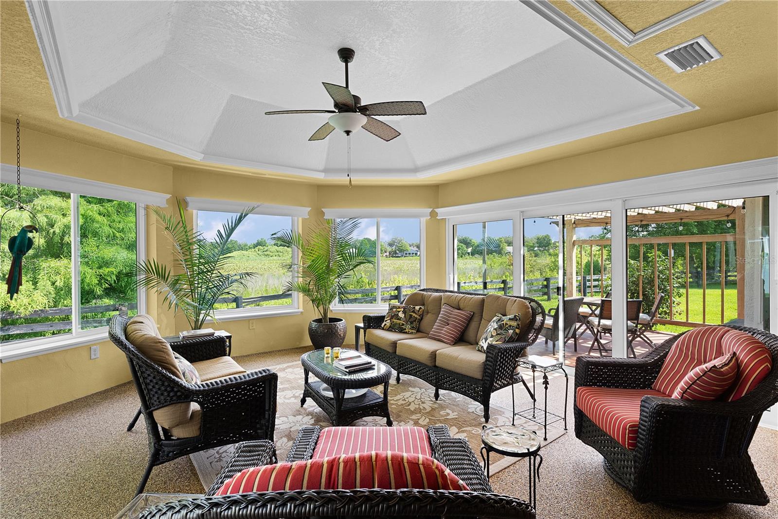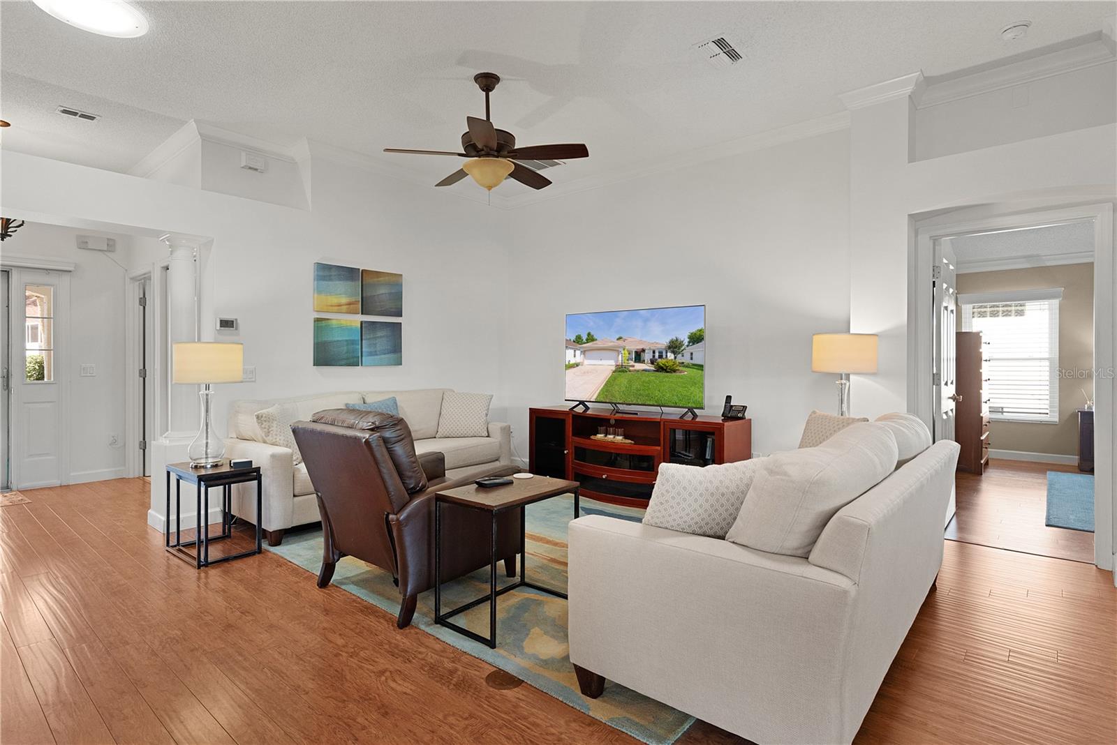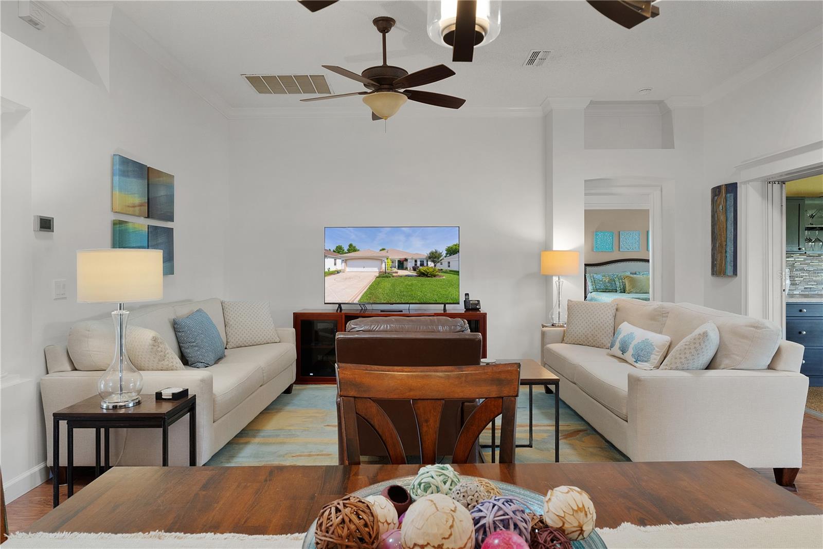 Esta casa vai acabar com suas meias! Sendo oferecido CHAVE NA MÃO, e o BOND é PAGO, este LINDO 3/2 Block & Stucco SIERRA Designer é decorado com bom gosto com móveis de qualidade e está situado em um terreno fabuloso com vista para a GRASS POND PRESERVE repleta de muitas variedades de pássaros e outros animais selvagens. TUDO SOBRE A LOCALIZAÇÃO, esta bela casa está situada em De La Vista West, a poucos minutos de carrinho de golfe das praças da cidade de Spanish Springs e Lake Sumter, golfe, piscinas, centros recreativos, principais lojas e serviços médicos! O belo paisagismo e o canteiro elevado com iluminação preparam o cenário quando você se aproxima da aconchegante varanda coberta com exposição sulista - um local maravilhoso para desfrutar do seu café da manhã. Ao entrar, seus olhos percorrerão a área de estar principal até a ESPETACULAR VISTA PANORÂMICA da PRESERVA e um vislumbre do Campo de Golfe Campeonato Tierra del Sol. O Stunning Florida Room aproveita esta vista incrível e convida você ao ar livre para o pátio voltado para o norte com uma pérgula iluminada para desfrutar do belo cenário à sua frente! A cozinha certamente agradará com ARMÁRIOS ATUALIZADOS, prateleiras extraíveis, eletrodomésticos de aço inoxidável com forno duplo, balcões de granito, iluminação personalizada… e uma copa maravilhosamente aconchegante com janela saliente e portas de correr para a Sala Flórida. Se você gosta de cozinhar com ervas caseiras, o canteiro elevado nos fundos é o lugar perfeito para cultivar seu próprio jardim de ervas! Isso maravilhoso casa (2.143 pés quadrados sob ar) tem uma planta dividida, com 2 quartos e um espaçoso banheiro de hóspedes escondido em um lado da casa, e a suíte principal do outro lado - proporcionando privacidade para você e seus convidados! O hall de entrada recebe você com colunas arquitetônicas que proporcionam uma separação visual conforme você se aproxima da área principal de estar e jantar, que flui perfeitamente para o incrível QUARTO ENSOLARADO DA FLÓRIDA de 429 pés quadrados completo com um BAR INTEGRADO e piso Chattahoochee River Rock - sem dúvida, este será o seu cômodo favorito da casa! A suíte principal é um retiro por si só, com banheira de hidromassagem, chuveiro de azulejos separado com gabinete sem moldura, balcões de granito, penteadeira, pias duplas, tubo solar... e 2 closets. Além disso, o banheiro da suíte oferece uma porta que proporciona privacidade do resto da suíte principal! A lavanderia interna inclui lavadora e secadora (ambas em pedestais), banheira e tubo solar. Você vai apreciar o sistema de filtragem de água em toda a casa, geladeira extra, bancada e escada do sótão na garagem para 2 carros, com acesso direto pela lavanderia. Esta é uma casa IMPERDÍVEL para apreciar tudo o que ela tem a oferecer - muitos extras incluem todas as janelas com painéis duplos, pisos laminados e de cerâmica (SEM TAPETE), 4 tubos solares, calhas, persianas, armário no corredor e uma grelha separada na sala Flórida. Além disso, o TELHADO e o HVAC foram substituídos em 2020, e o AQUECEDOR DE ÁGUA foi substituído em 2025. A linha fiscal reflete a combinação de manutenção anual e distrito de bombeiros. A OBRIGAÇÃO ESTÁ PAGA. Oportunidades como essa não surgem todos os dias, principalmente por esse preço... então, o que você está esperando? Se não agora, quando??